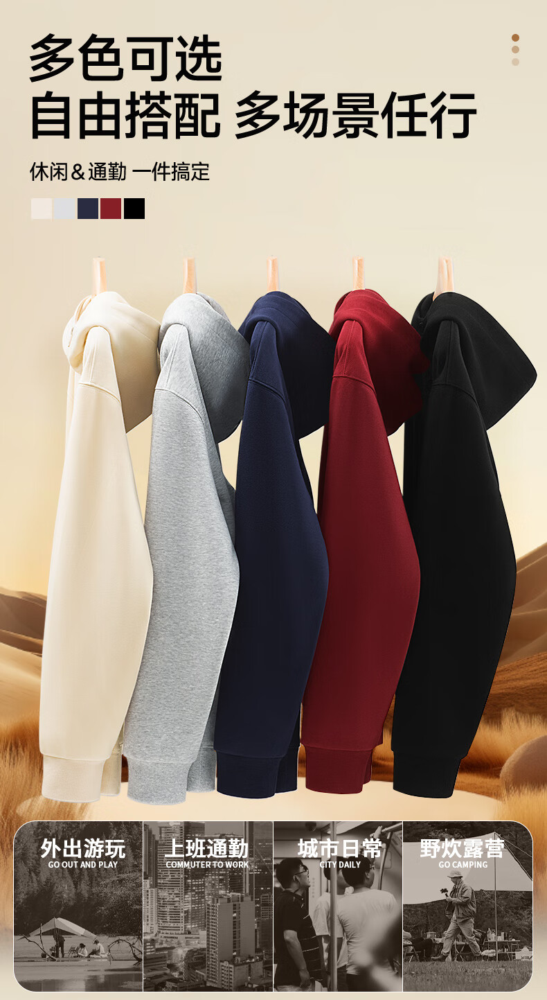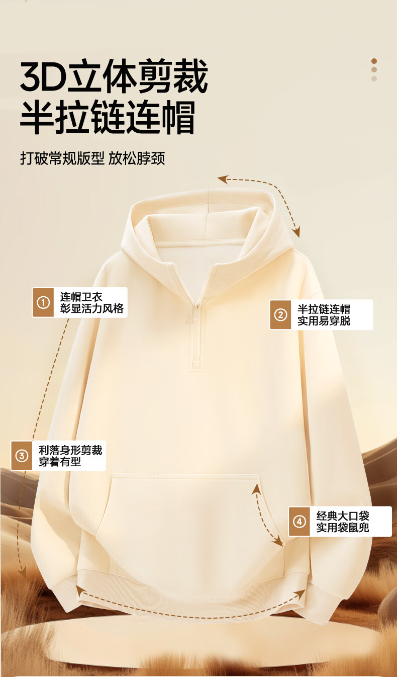Vancl Eslite (VANCL) hooded sweatshirt for men spring and autumn new loose and versatile long-sleeved men's Chinese cotton half-zip hoodie burgundy XL