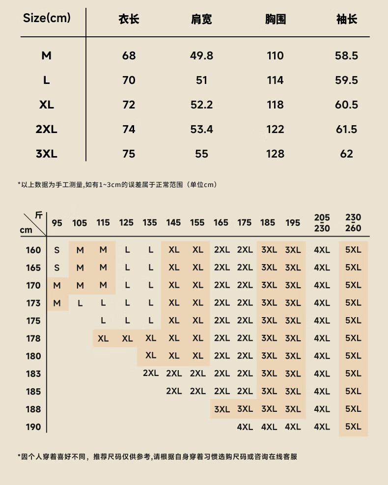 China (cm) 160-165/84-86 165-170 / 88-90 167-172 / 92-96 168-173 / 98-102 170-176 / 106-110