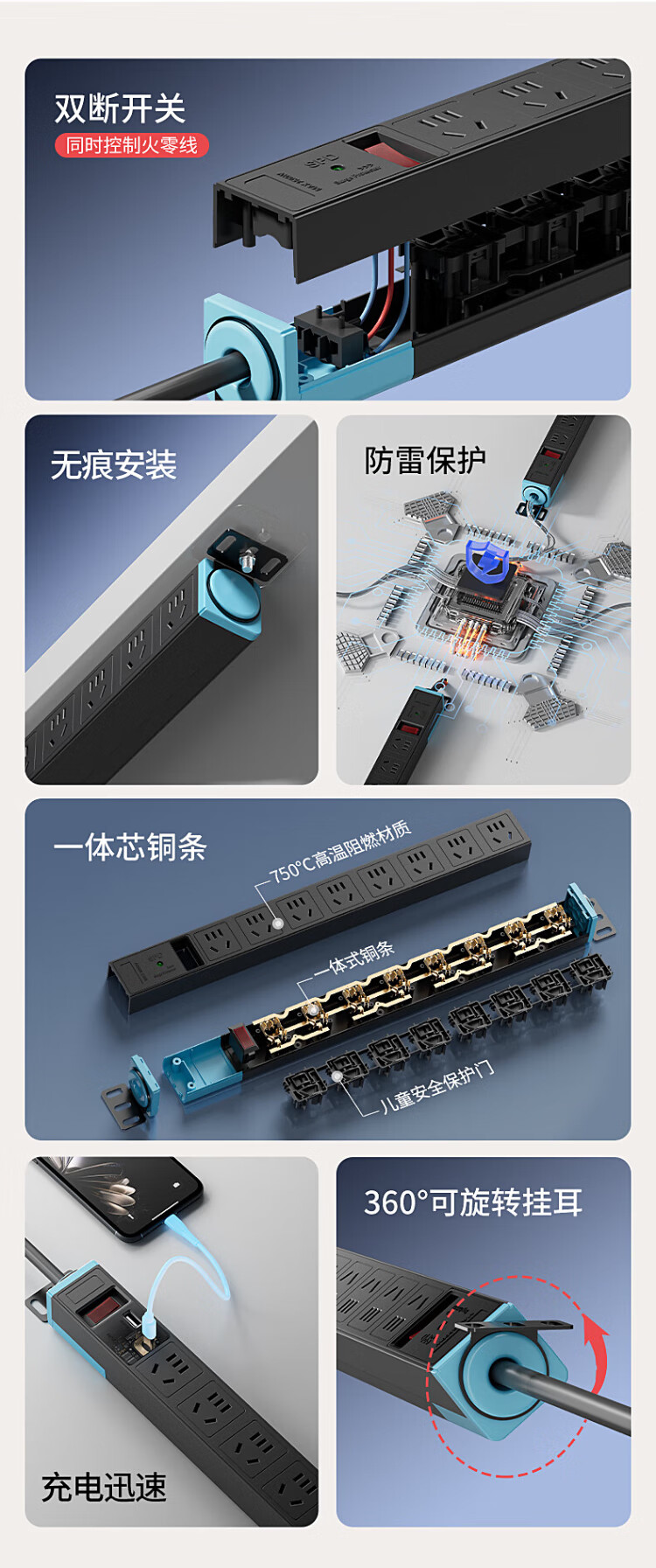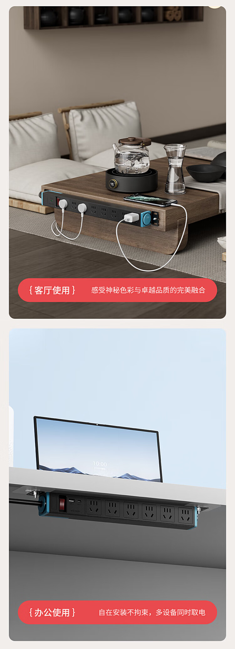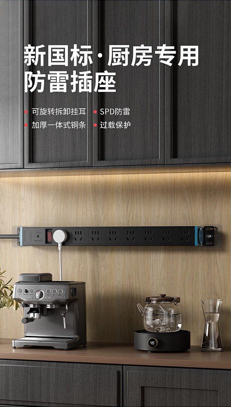 International Electrician PDU Power Strip Cabinet Desktop Gaming Power Strip Under the Desk with Corded Plug Board/Socket/Plug Board/Terminal Board/Pull Line Board 6-digit Wireless One-Click Power Off Black