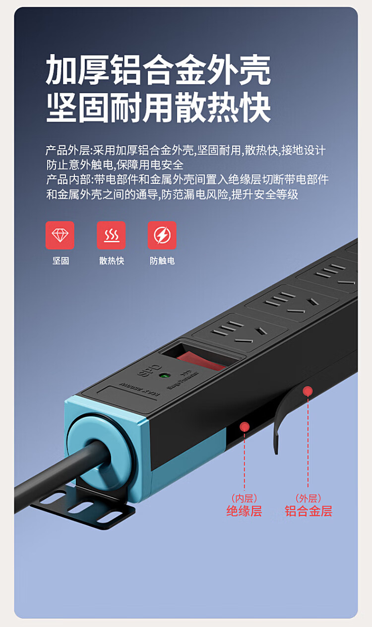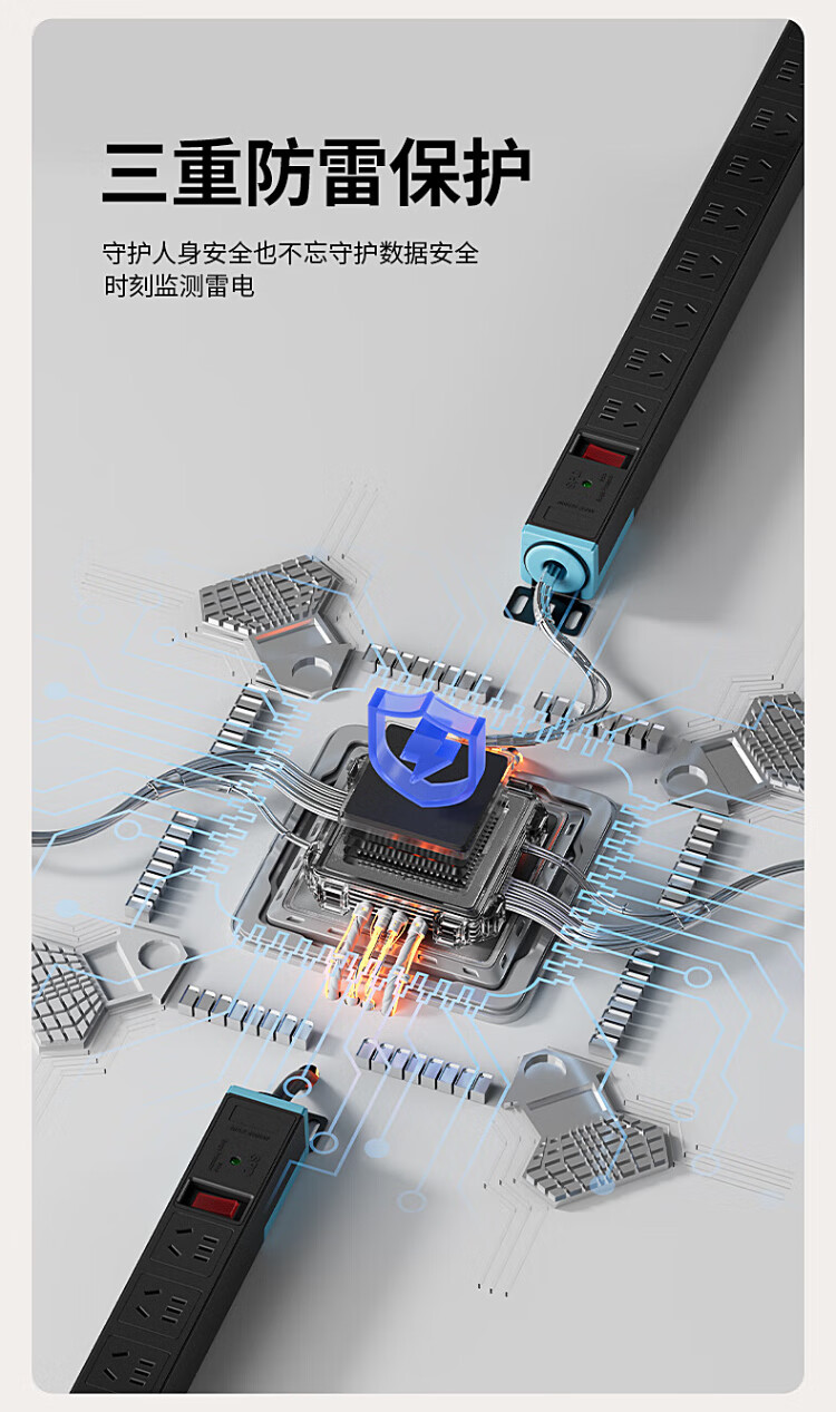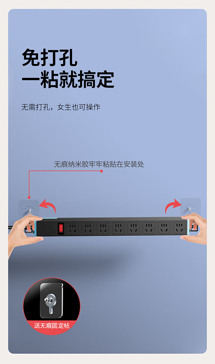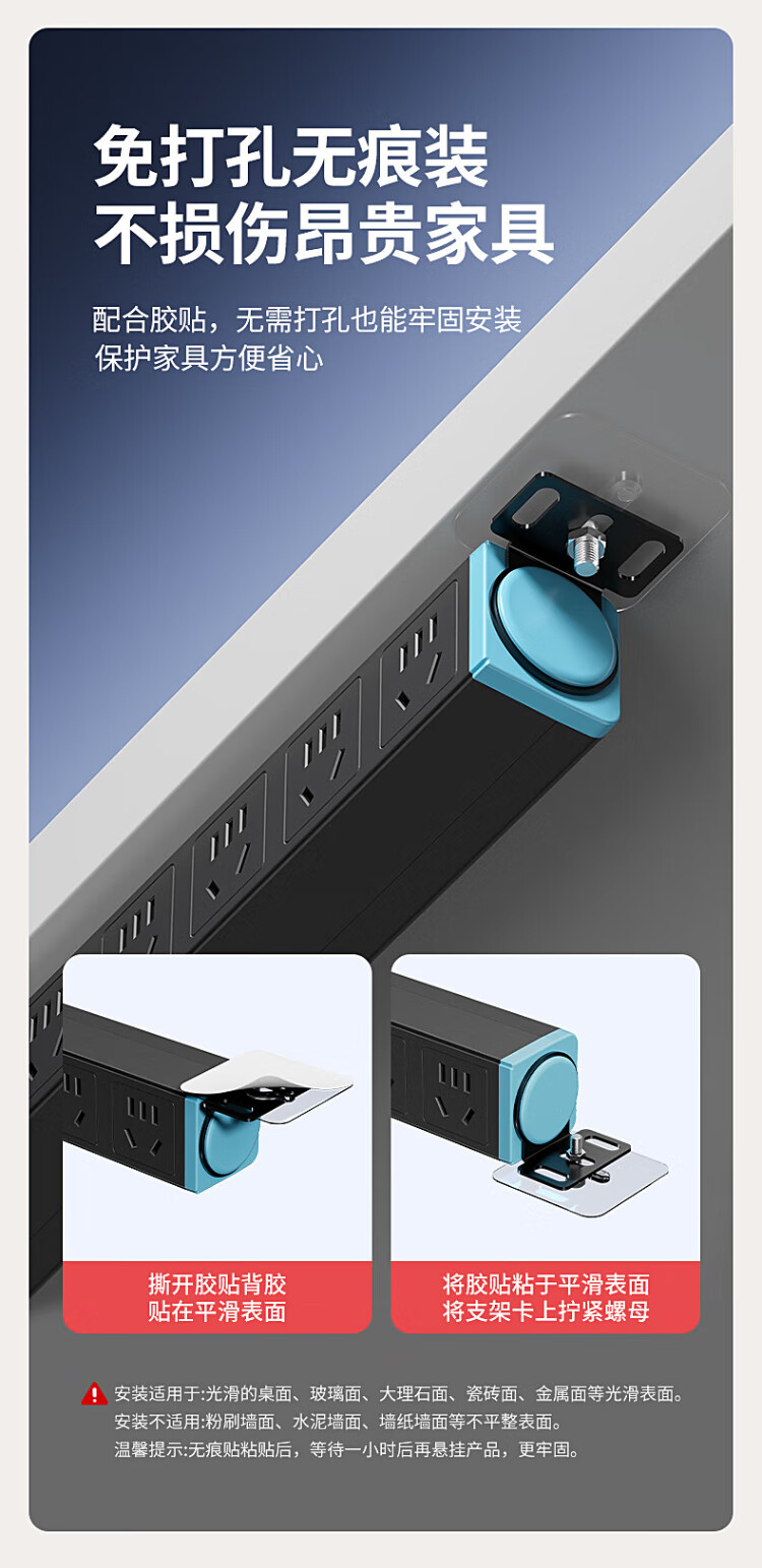 International Electrician PDU Power Strip Cabinet Desktop Gaming Power Strip Under the Desk with Corded Plug Board/Socket/Plug Board/Terminal Board/Pull Line Board 6-digit Wireless One-Click Power Off Black