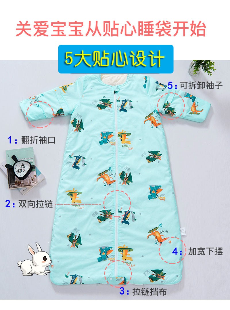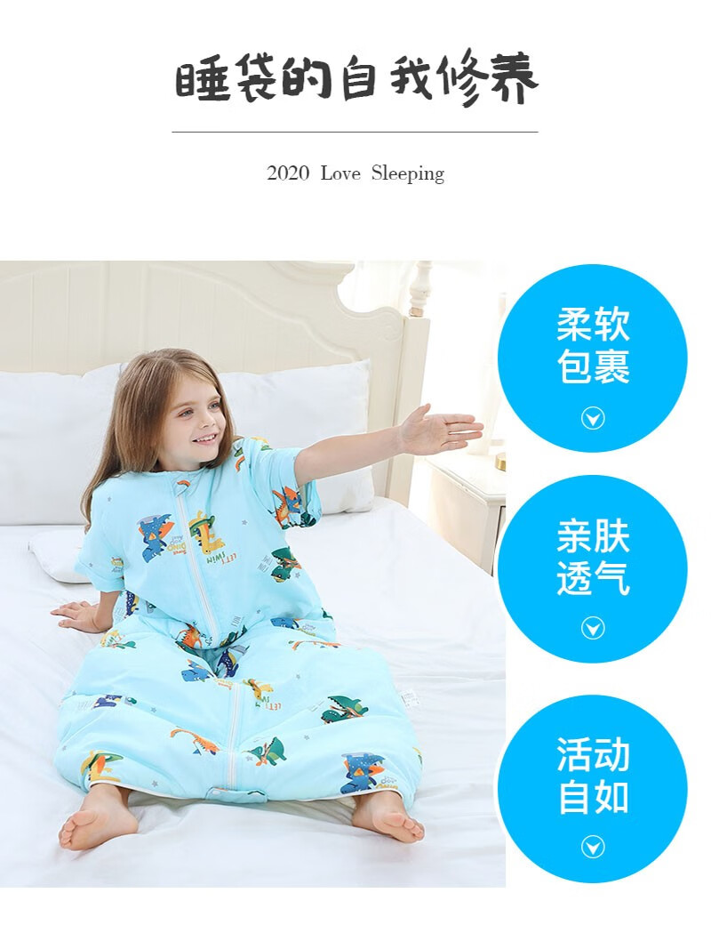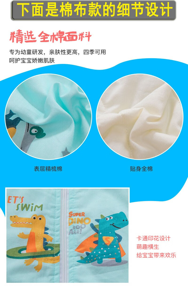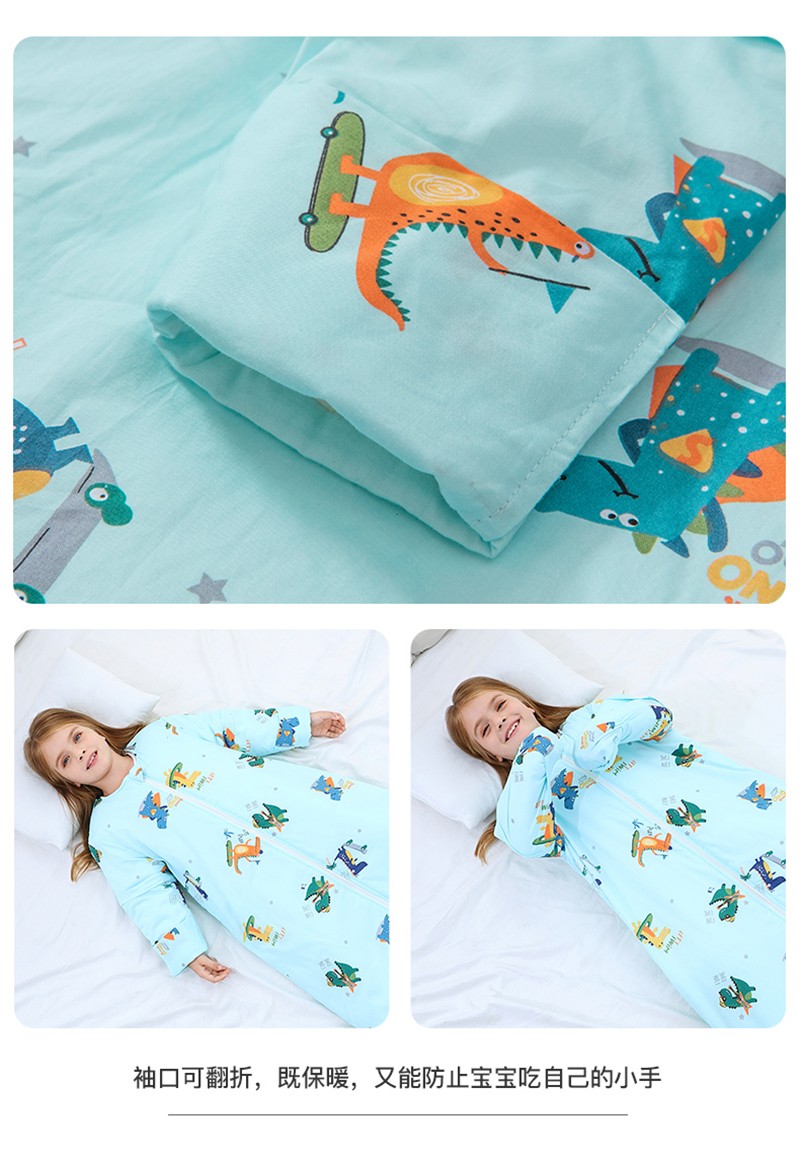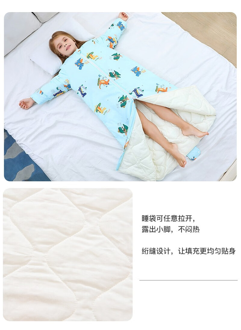 Heshengzhong big children's sleeping bag children's pure cotton spring, summer, autumn and winter four-season baby anti-kicking quilt for primary school students 3-6 years old 6-12 years old cotton model blue dinosaur 145cm autumn and winter thickened room temperature 5~15 degrees