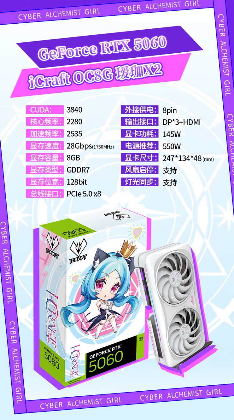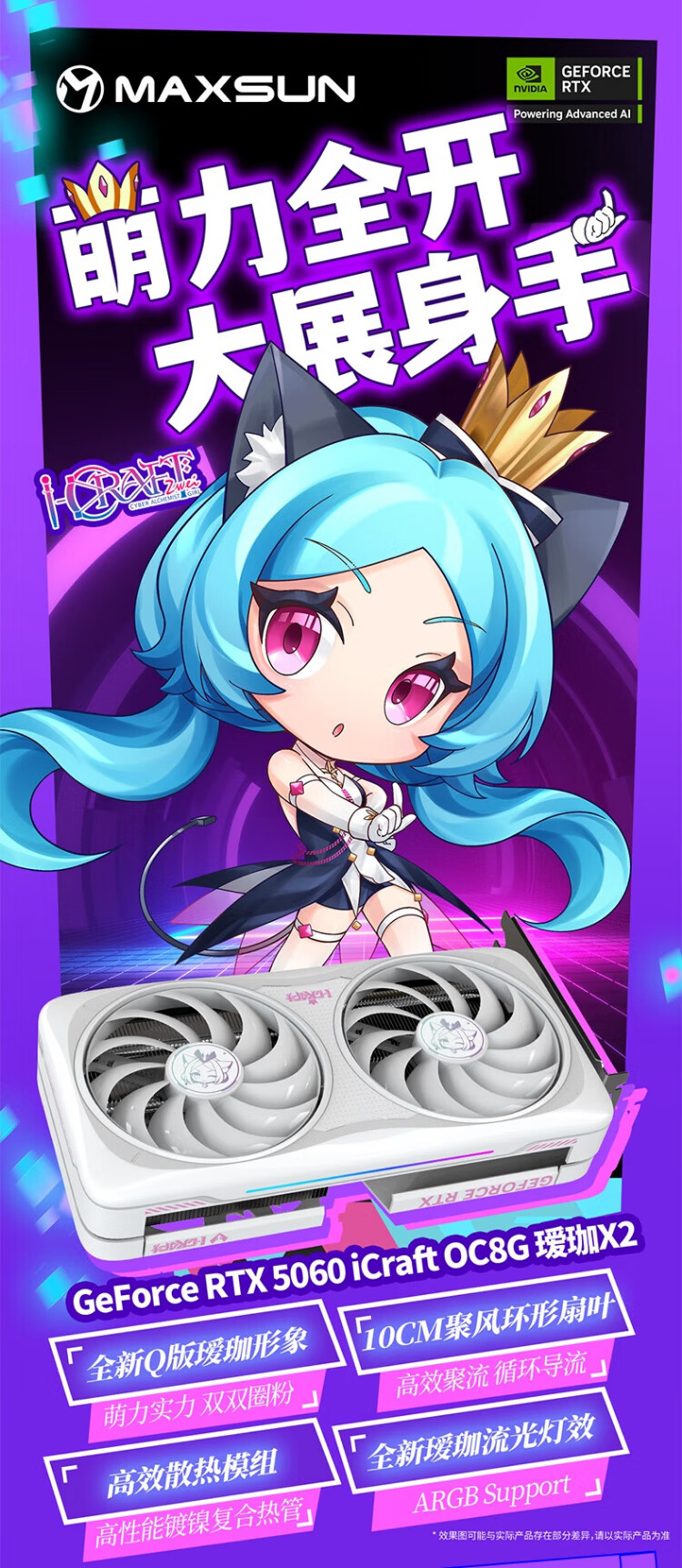 MAXSUN Geforce RTX5060 iCraft OC8G AIGAX2 AIGAX2 DLSS 4 e-sports light chasing game AI design computer graphics card