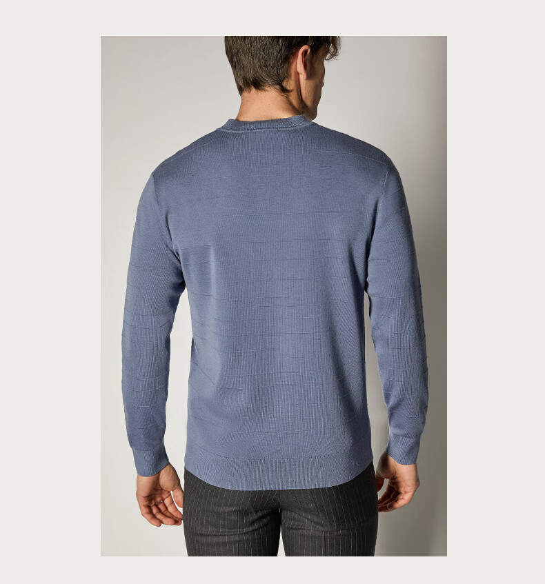 Brloote cárdigan de rayas horizontales para hombre, suéter cálido y cómodo con cuello redondo acanalado, otoño e invierno, azul oscuro 165/88A