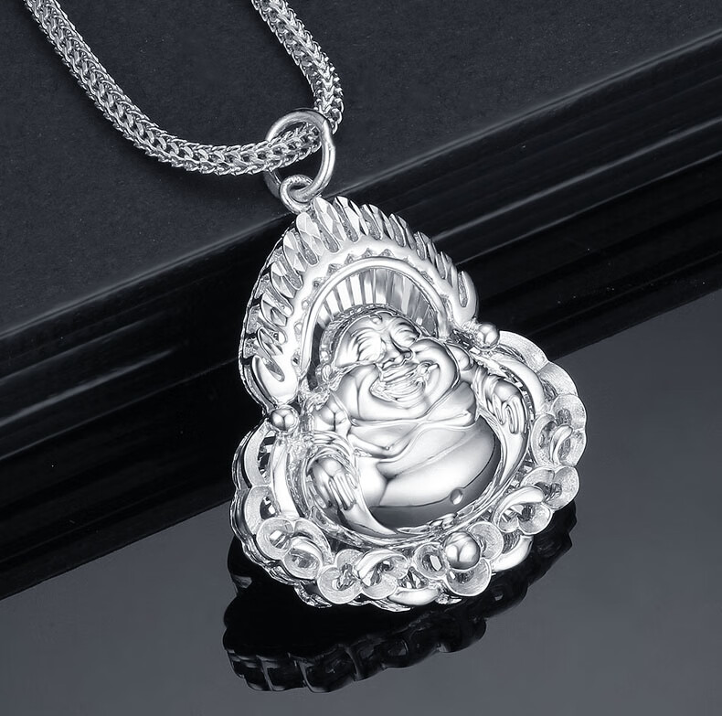 Flowers and grass covered with flowers, PT950 platinum pendant for men and women, pt999 platinum Buddha pendant, platinum smooth Buddha, smiling Buddha, platinum pt950 Buddha Convention 22g