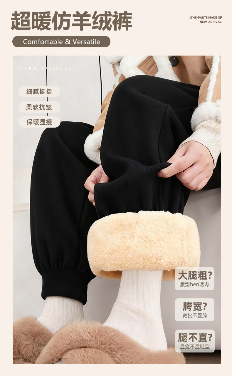 Baleno super thick warm sherpa pants for women plus velvet thickened winter 2025 new autumn and winter outer wear casual versatile cotton pants