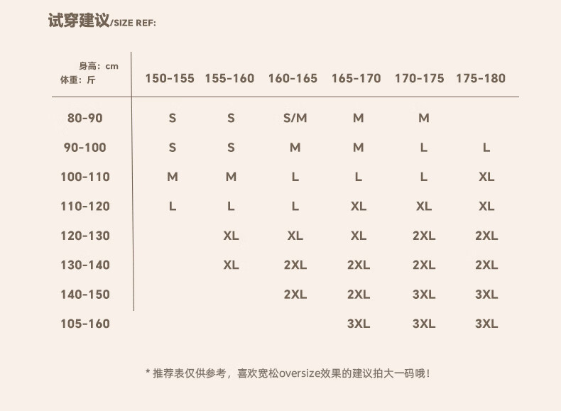China (cm) 160-165/84-86 165-170 / 88-90 167-172 / 92-96 168-173 / 98-102 170-176 / 106-110