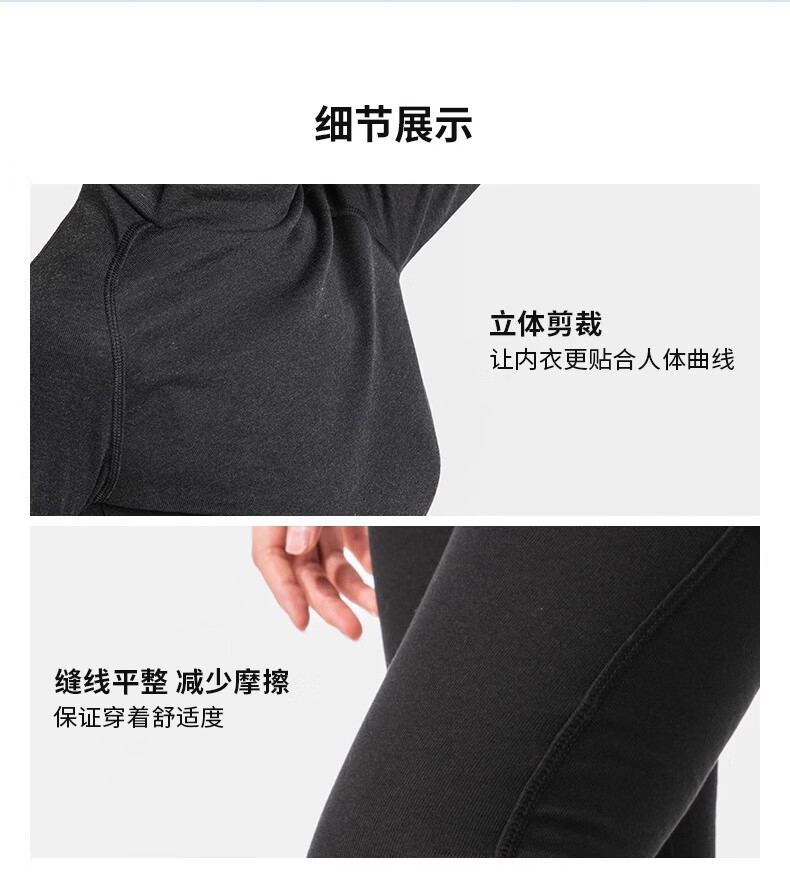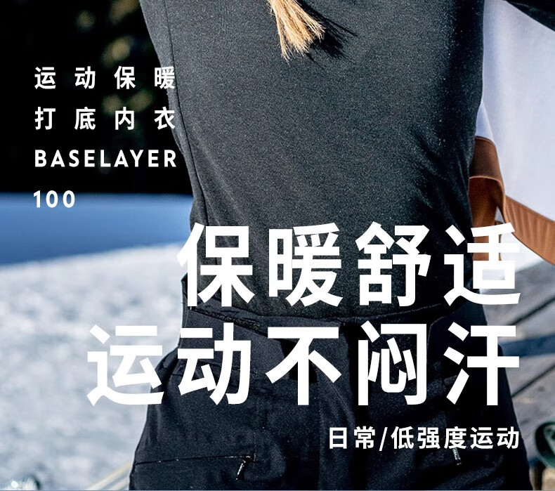 Decathlon Women's Ski Thermal Underwear Sports Velvet Thickened OVW1 Black Top M-2456173