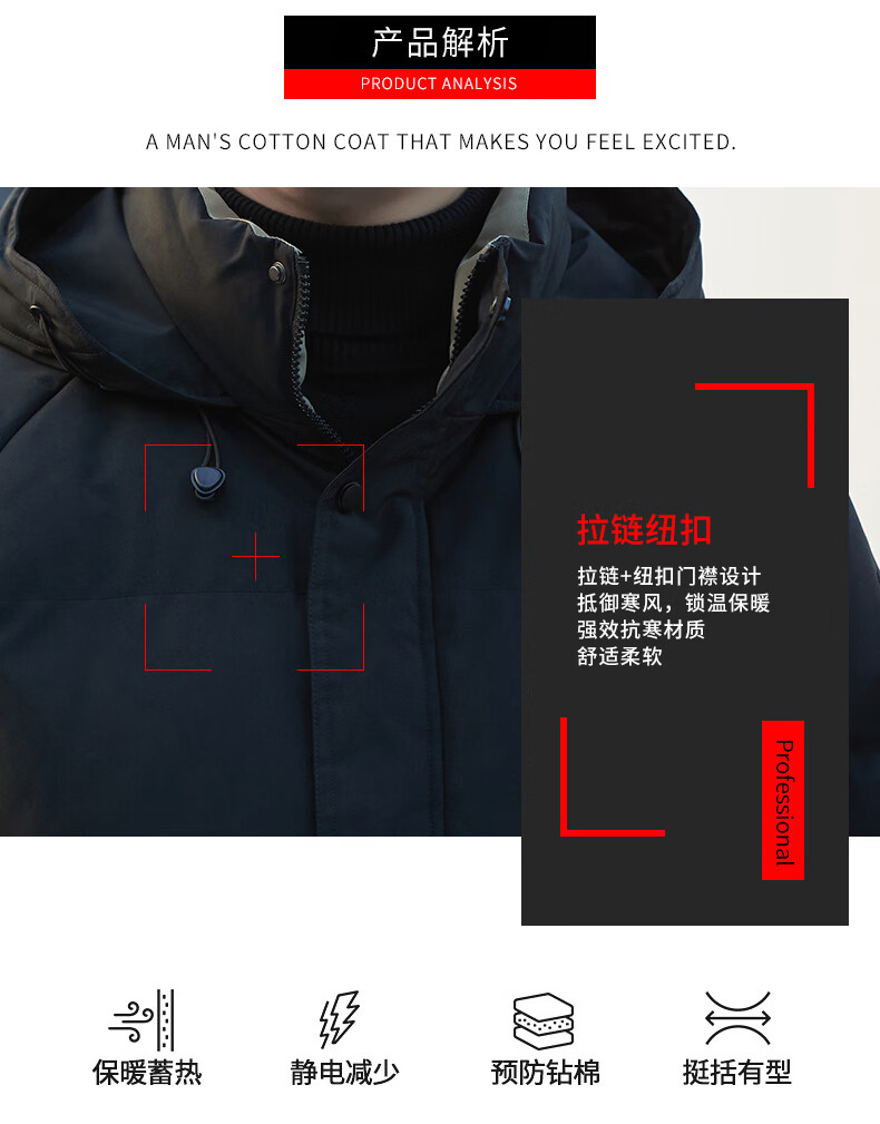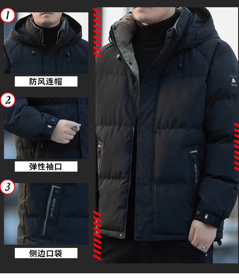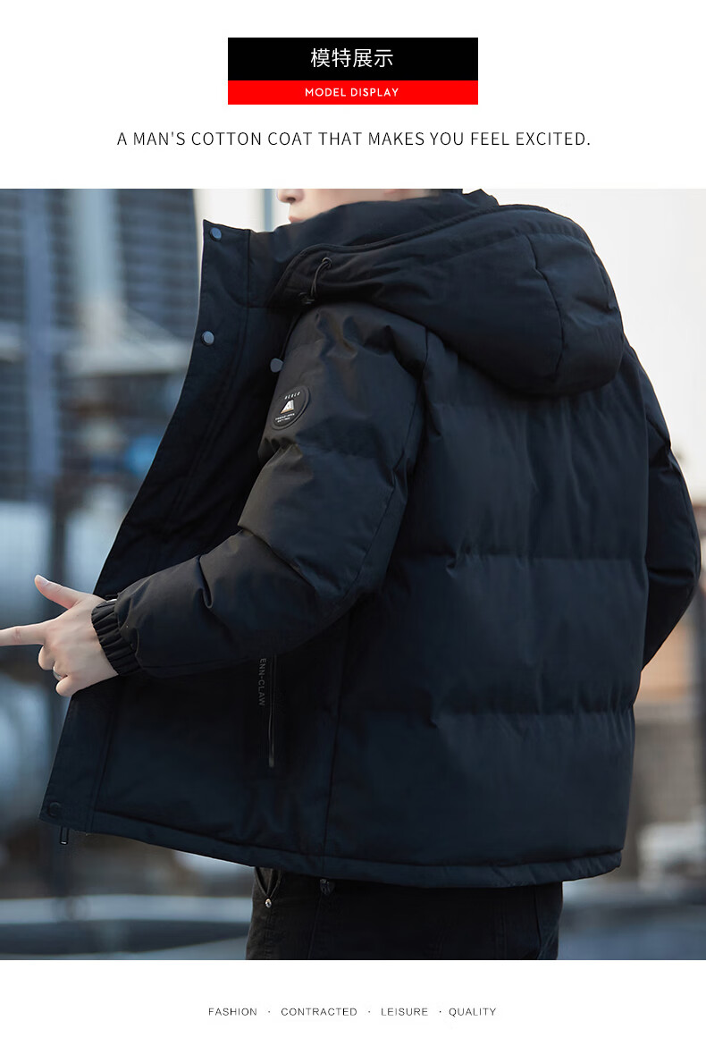 ROMON cotton jacket men's winter trendy casual and comfortable outdoor warm cotton jacket cotton jacket men's 8891 black 2XL