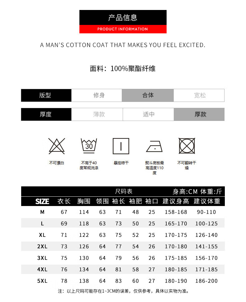 China (cm) 160-165/84-86 165-170 / 88-90 167-172 / 92-96 168-173 / 98-102 170-176 / 106-110