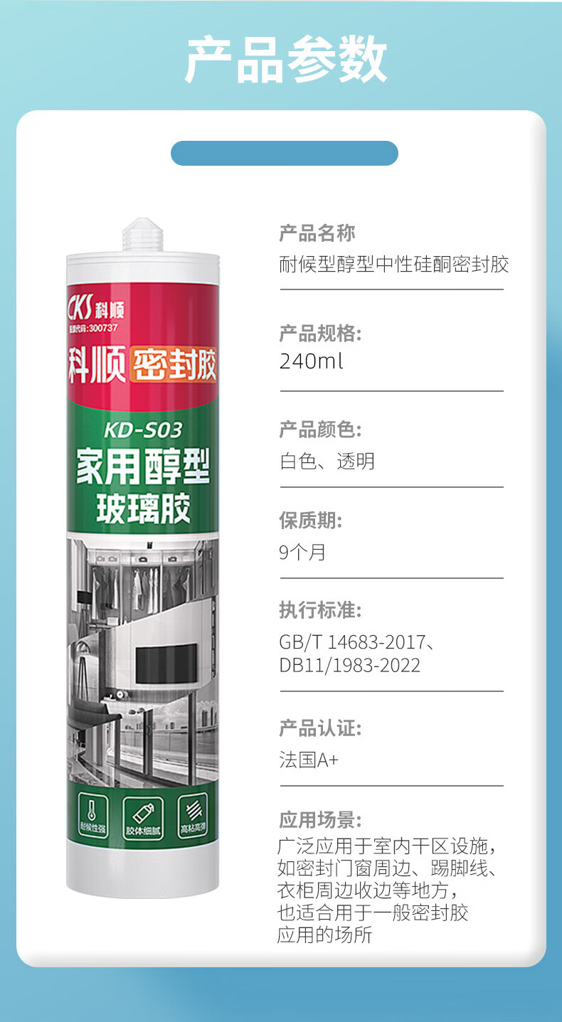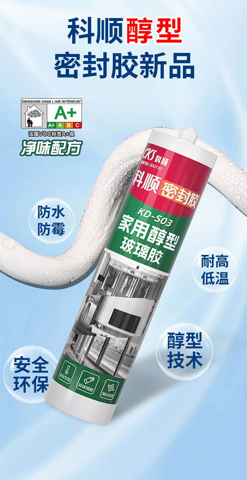 Keshun glass glue mildew-proof waterproof sealant kitchen and bathroom strong edge sealing beauty glue seat household commercial alcohol-type silicone - white 240ml