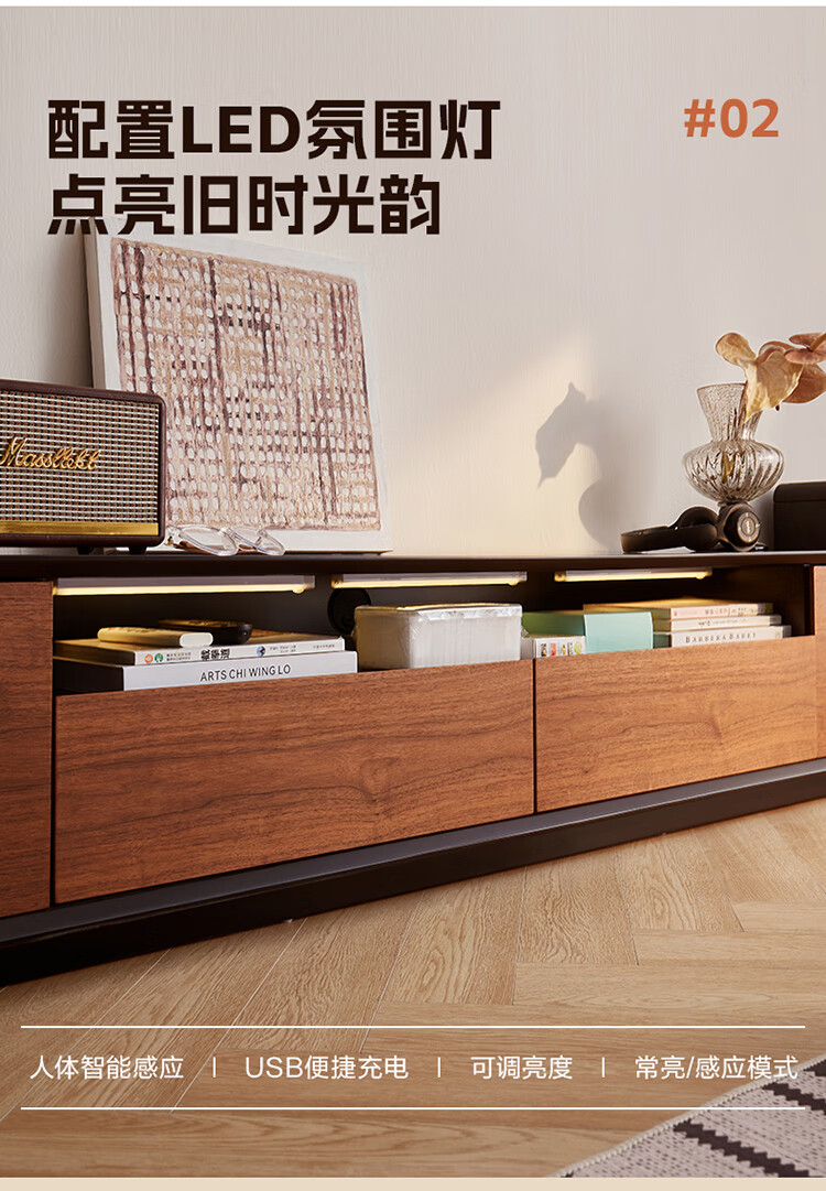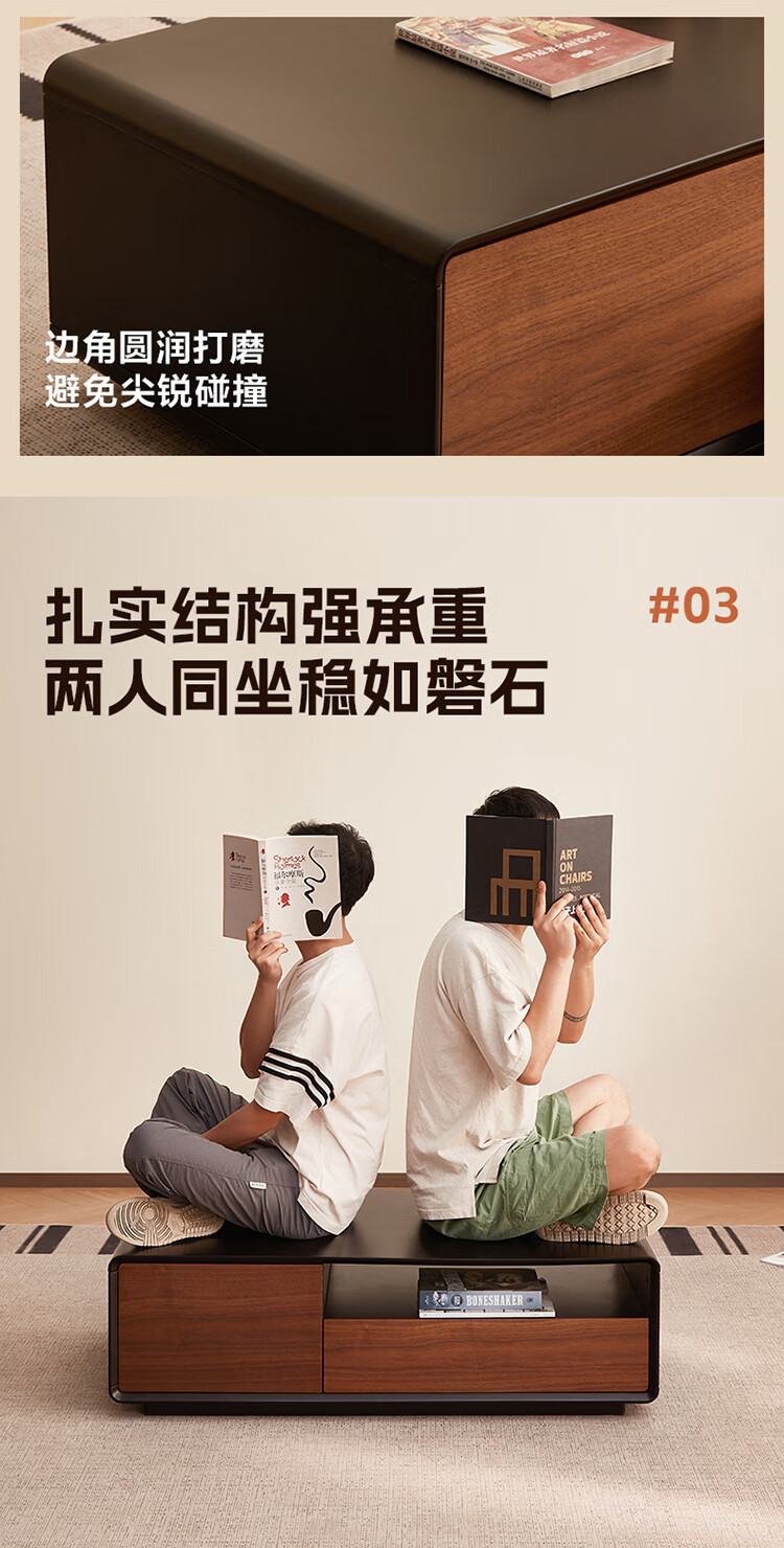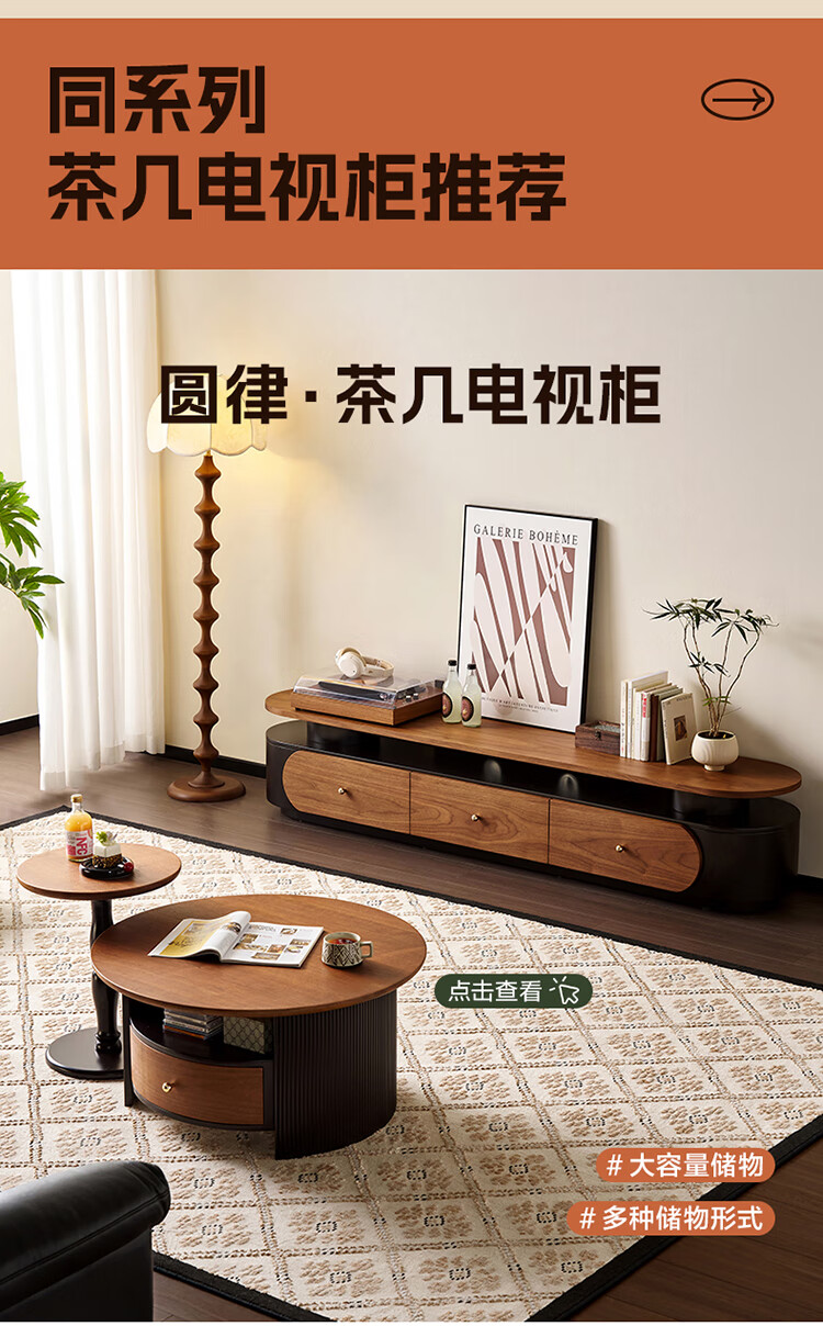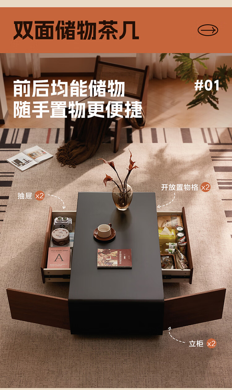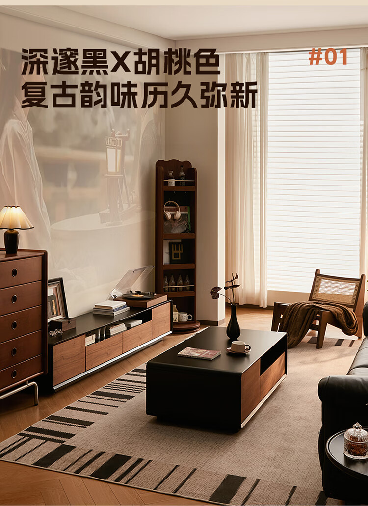 Quanyou Home Medieval style coffee table living room storage cabinet small apartment floor-standing drawer coffee table new furniture
