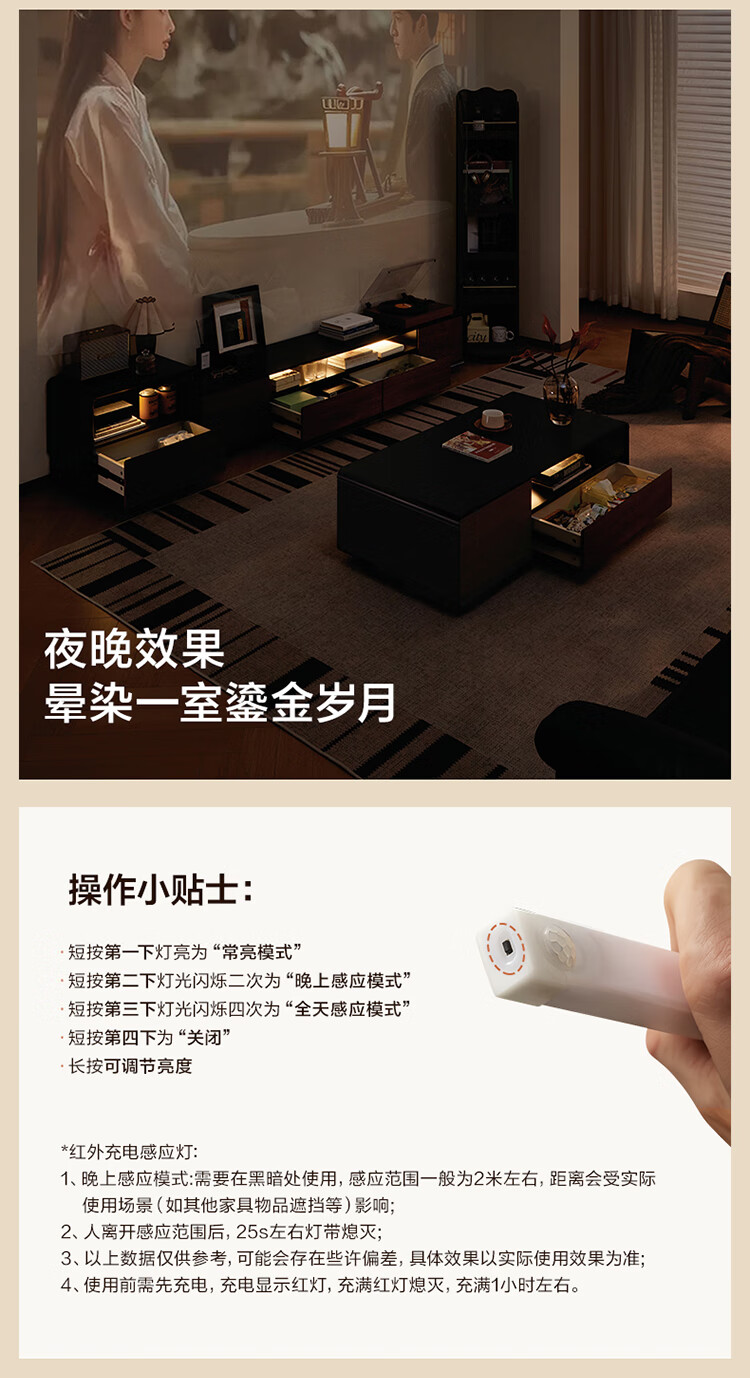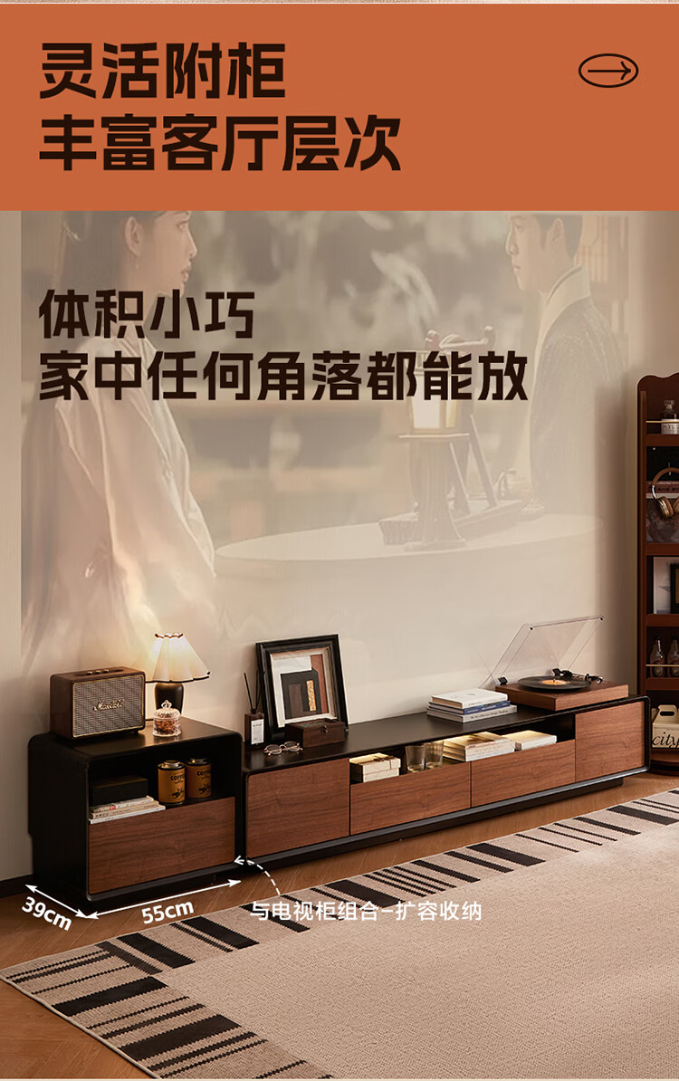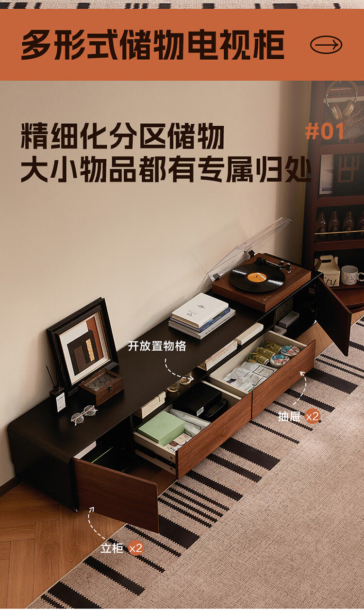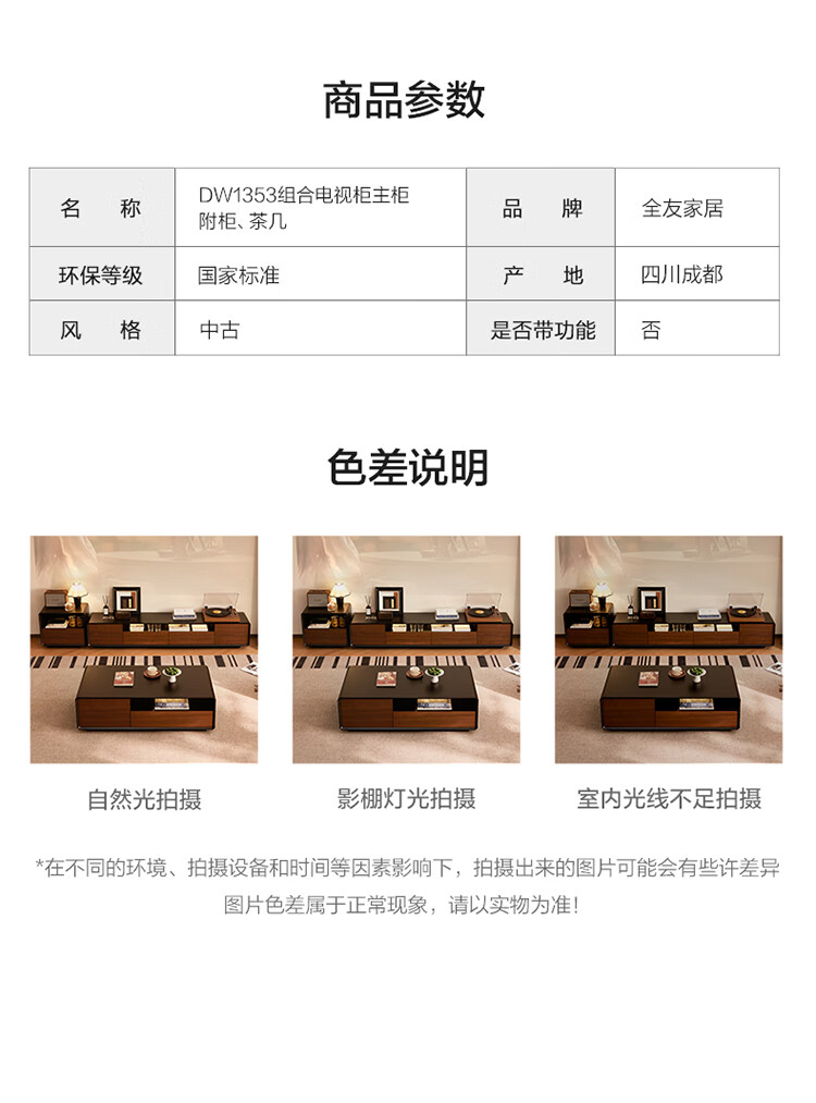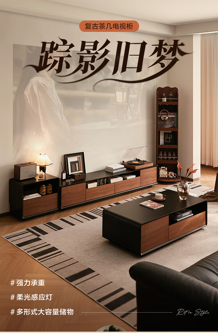 Quanyou Home Medieval style coffee table living room storage cabinet small apartment floor-standing drawer coffee table new furniture