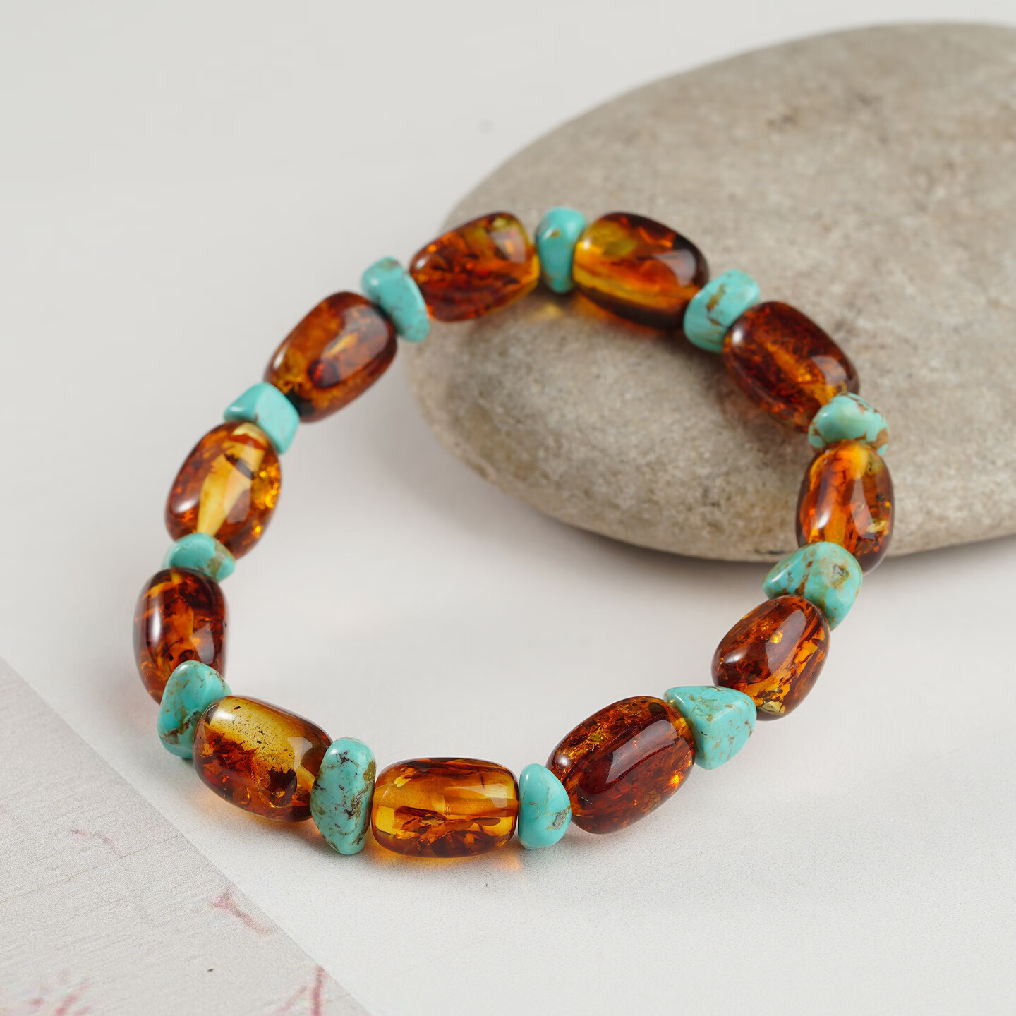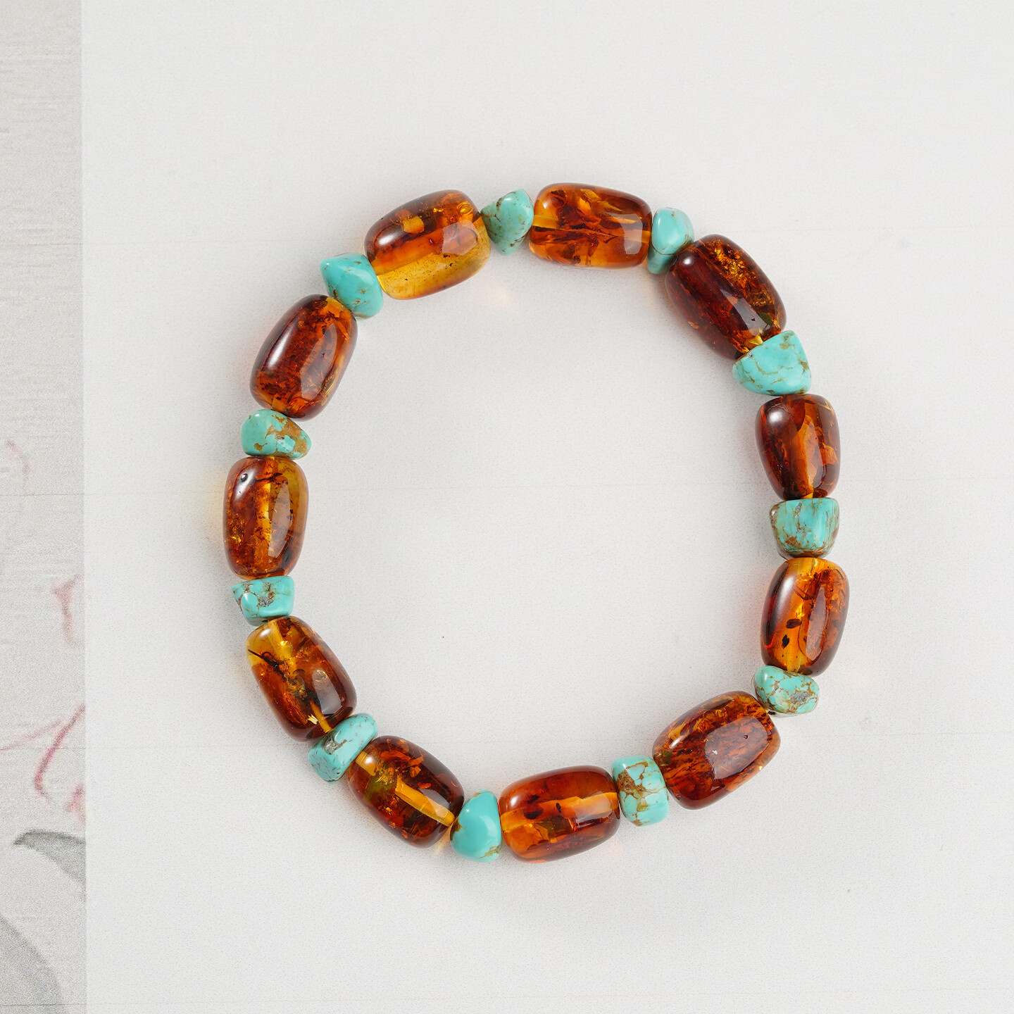 Potala Palace Orphan Flower Amber Green Pine Single Circle Bracelet Men's and Women's Amber Transfer Beads Bead Bracelet Birthday Gift for Girlfriend