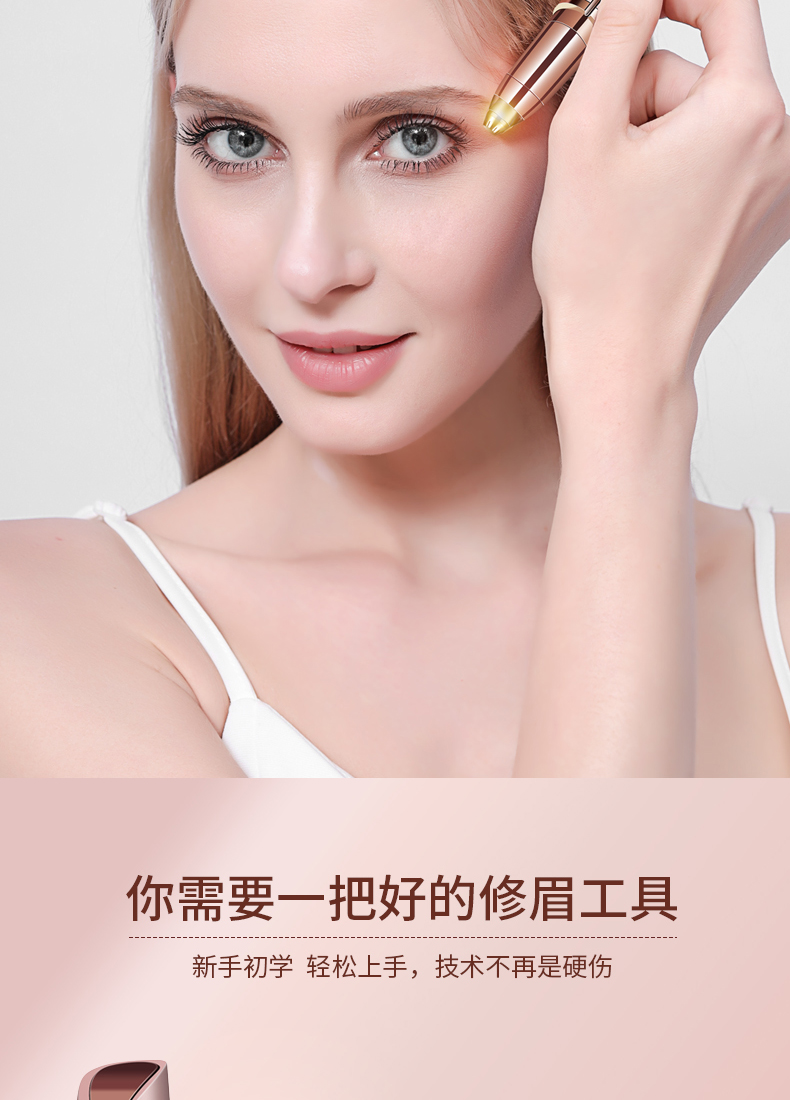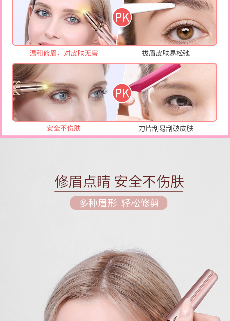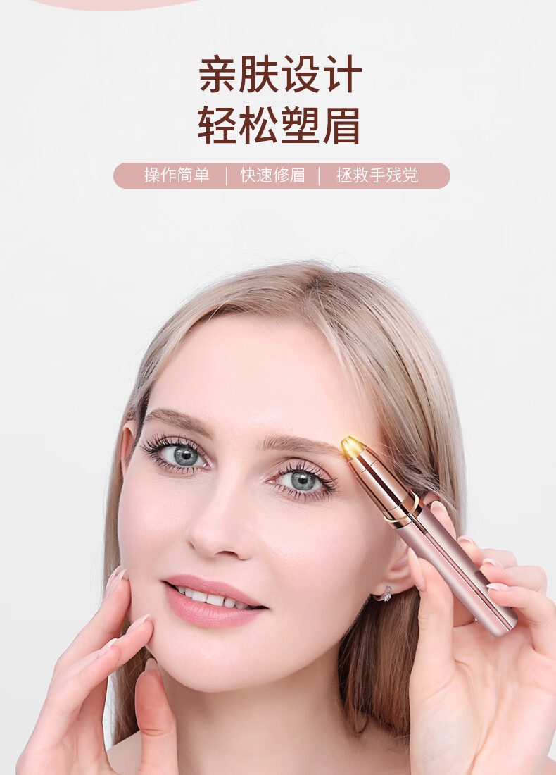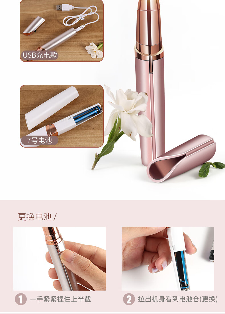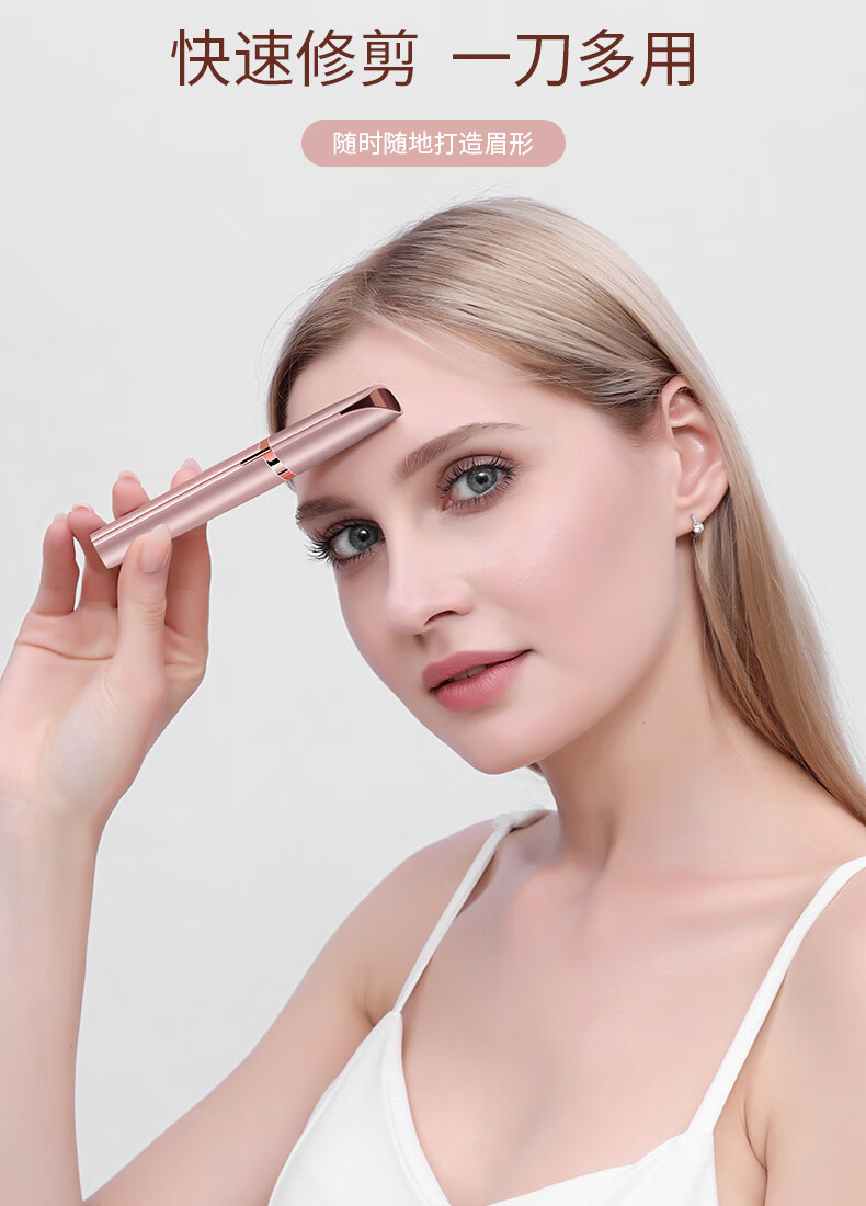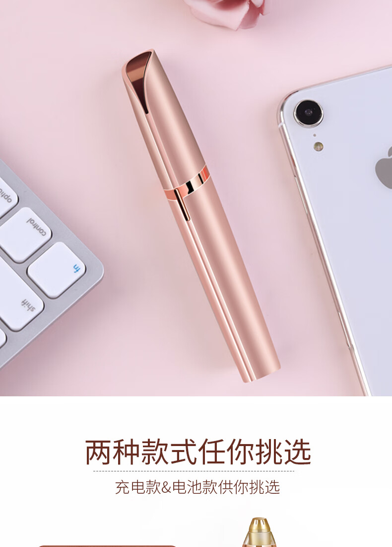JESIMY 2025 Goddess Model Electric Eyebrow Trimmer Ladies Eyebrow Knife Automatic Eyebrow Shaping Beauty Trimmer Rechargeable Beginner Home Portable Eyebrow Shaving SH Rose Gold-Battery Model (Battery Not Included)