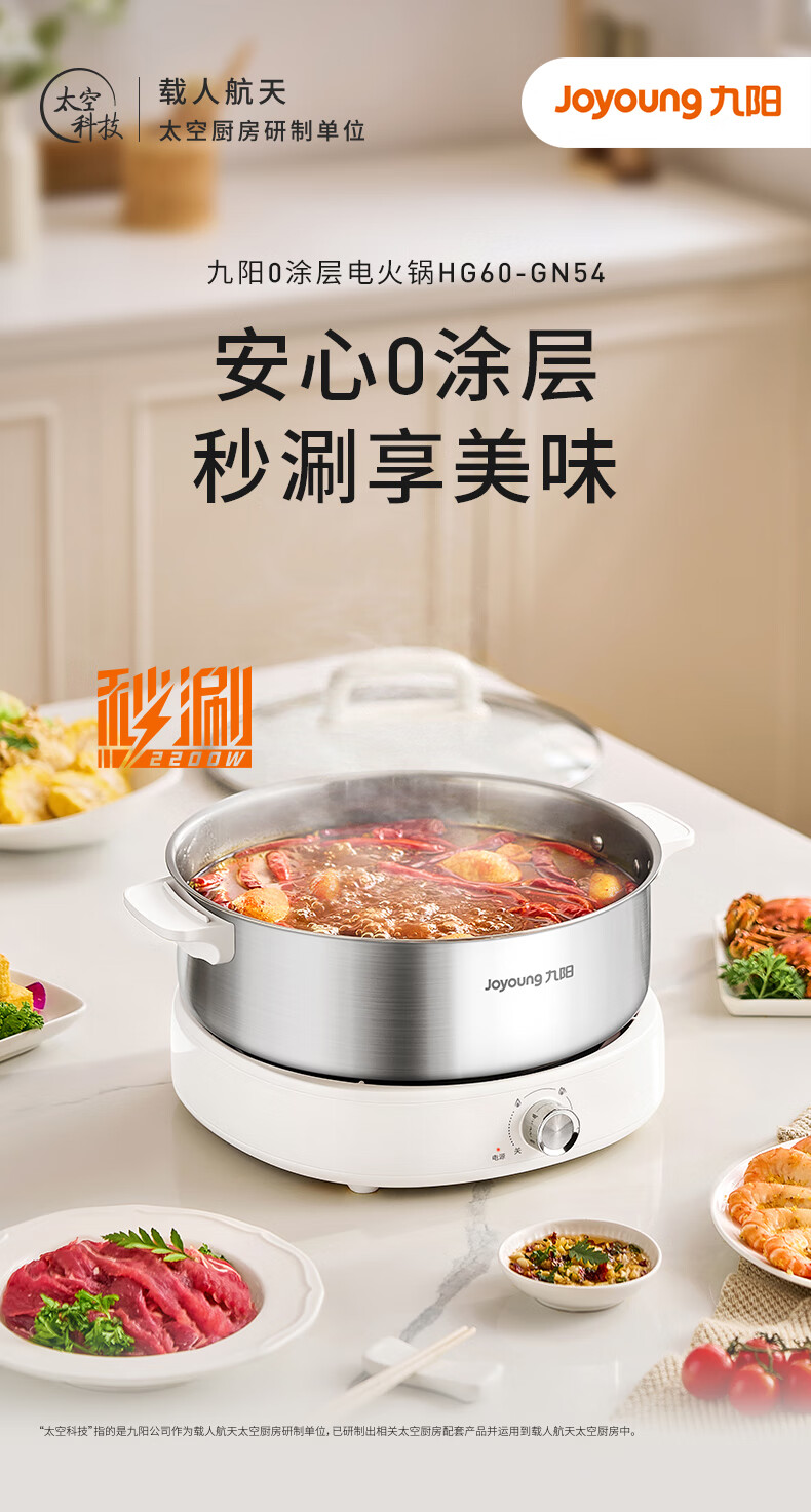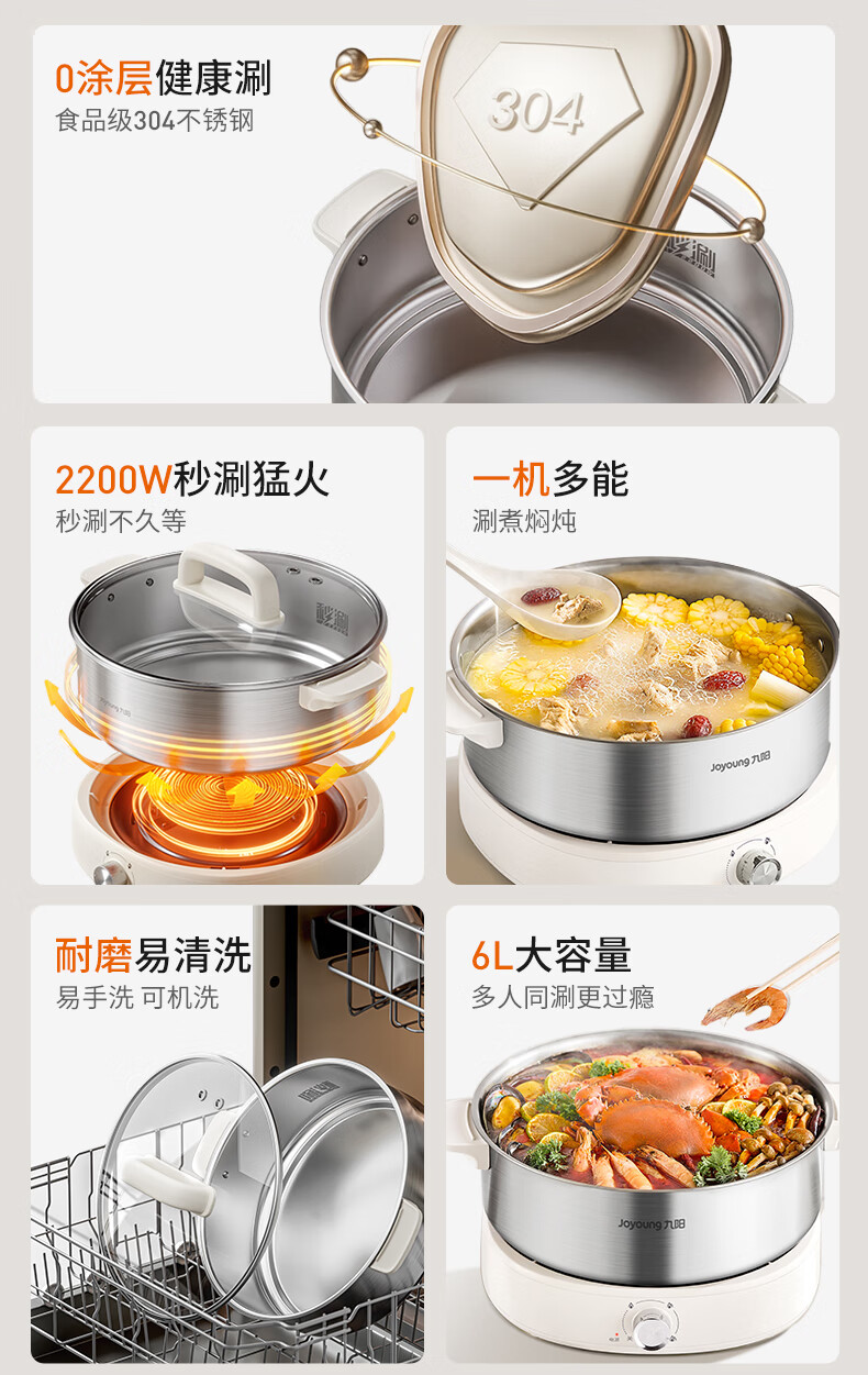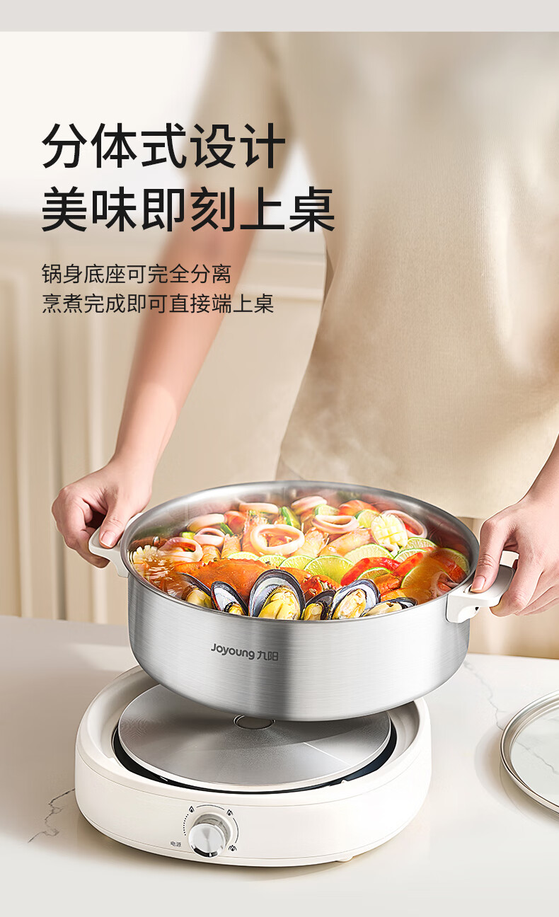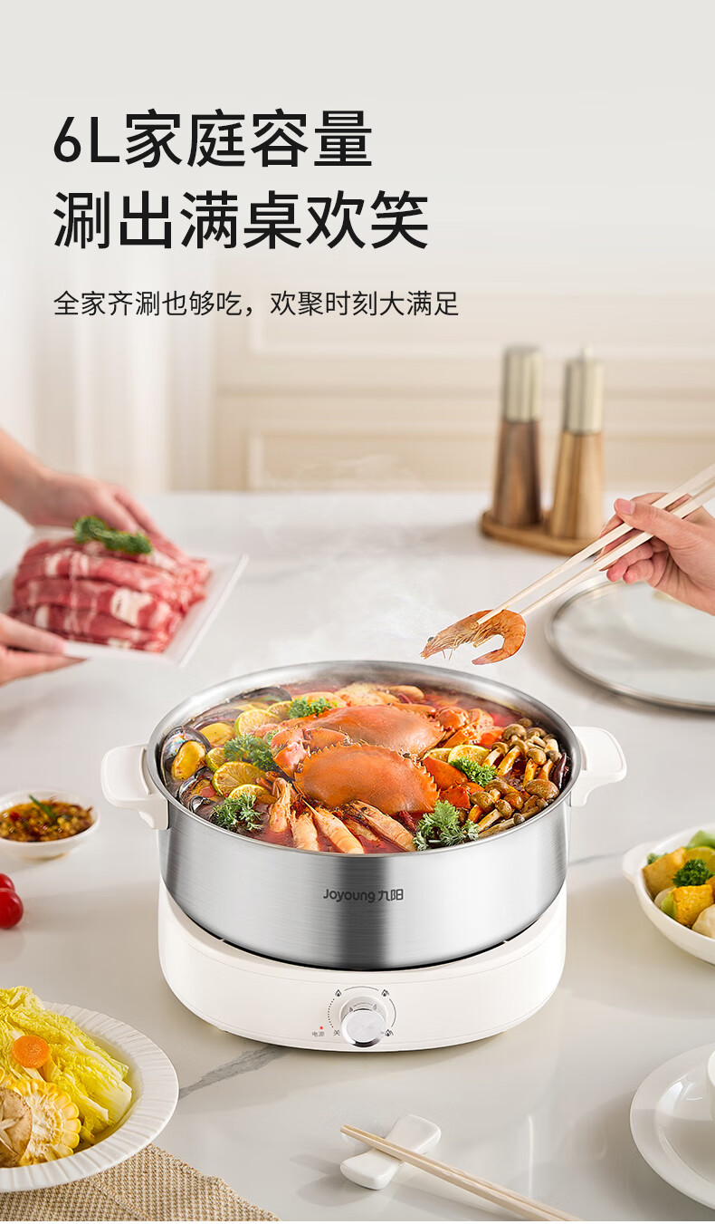 Joyoung 0-coating second-shake electric hot pot hot pot special pot electric pot household 4-8 people non-stick split removable and washable multi-functional electric steamer stainless steel electric cooking pot 6L hot pot pot GN64