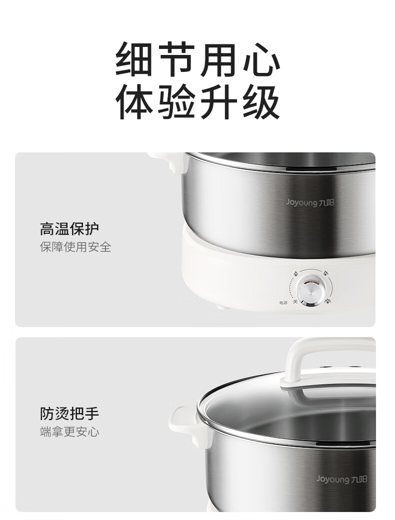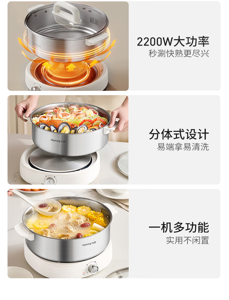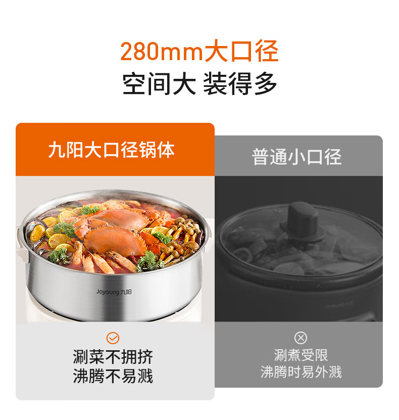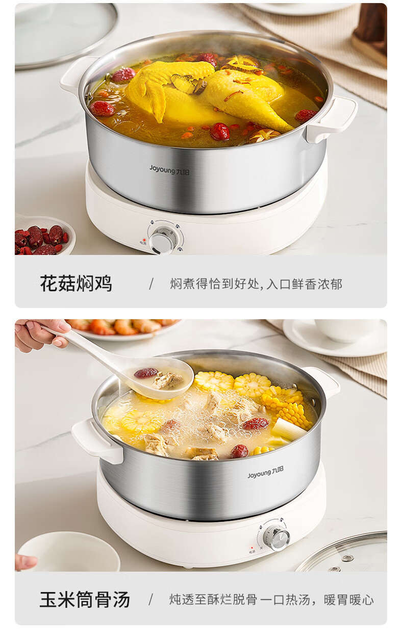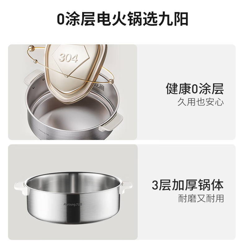 Joyoung 0-coating second-shake electric hot pot hot pot special pot electric pot household 4-8 people non-stick split removable and washable multi-functional electric steamer stainless steel electric cooking pot 6L hot pot pot GN64