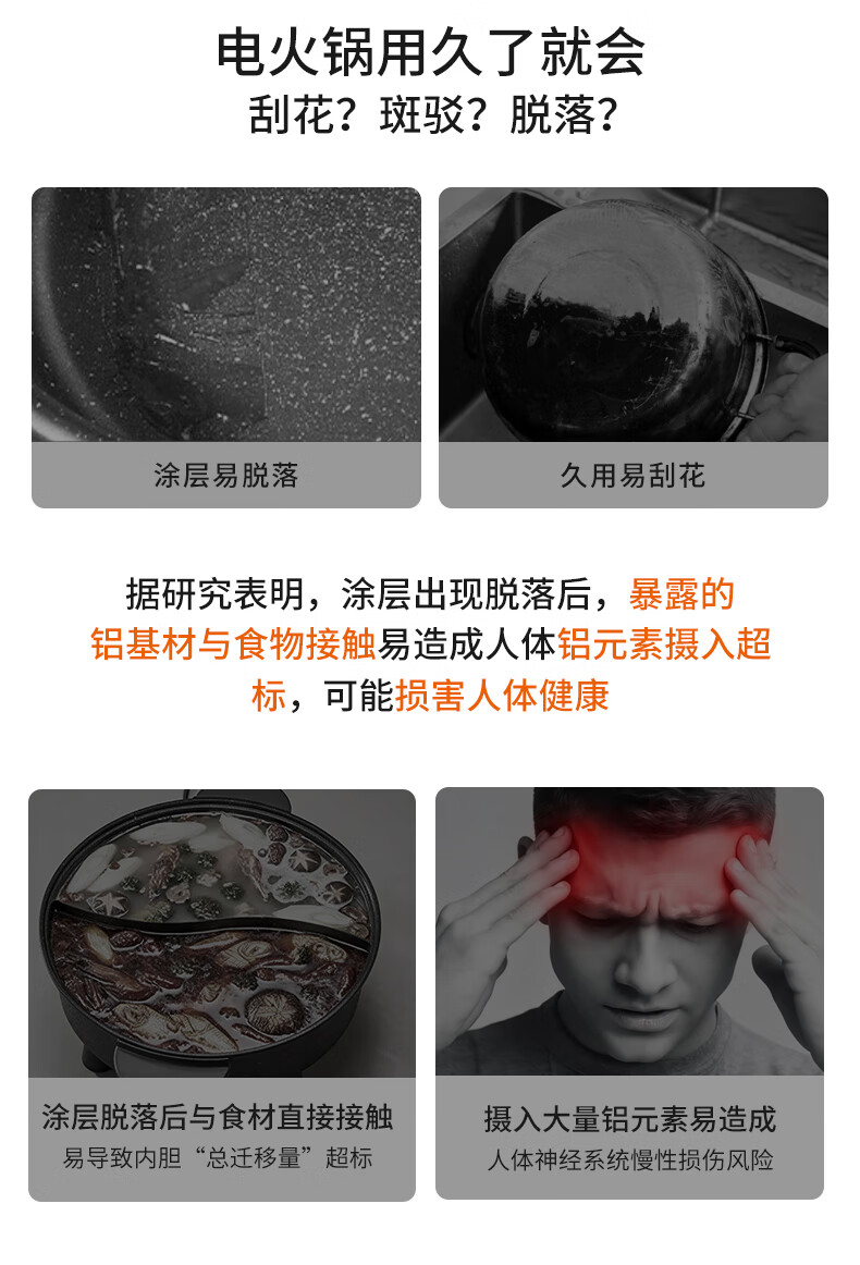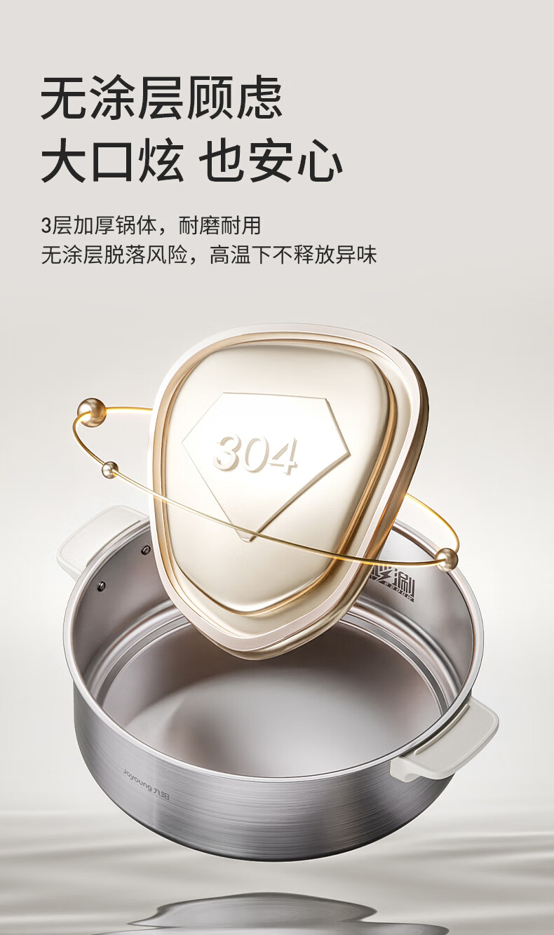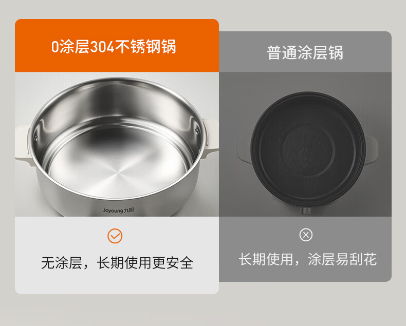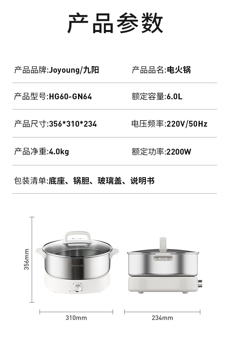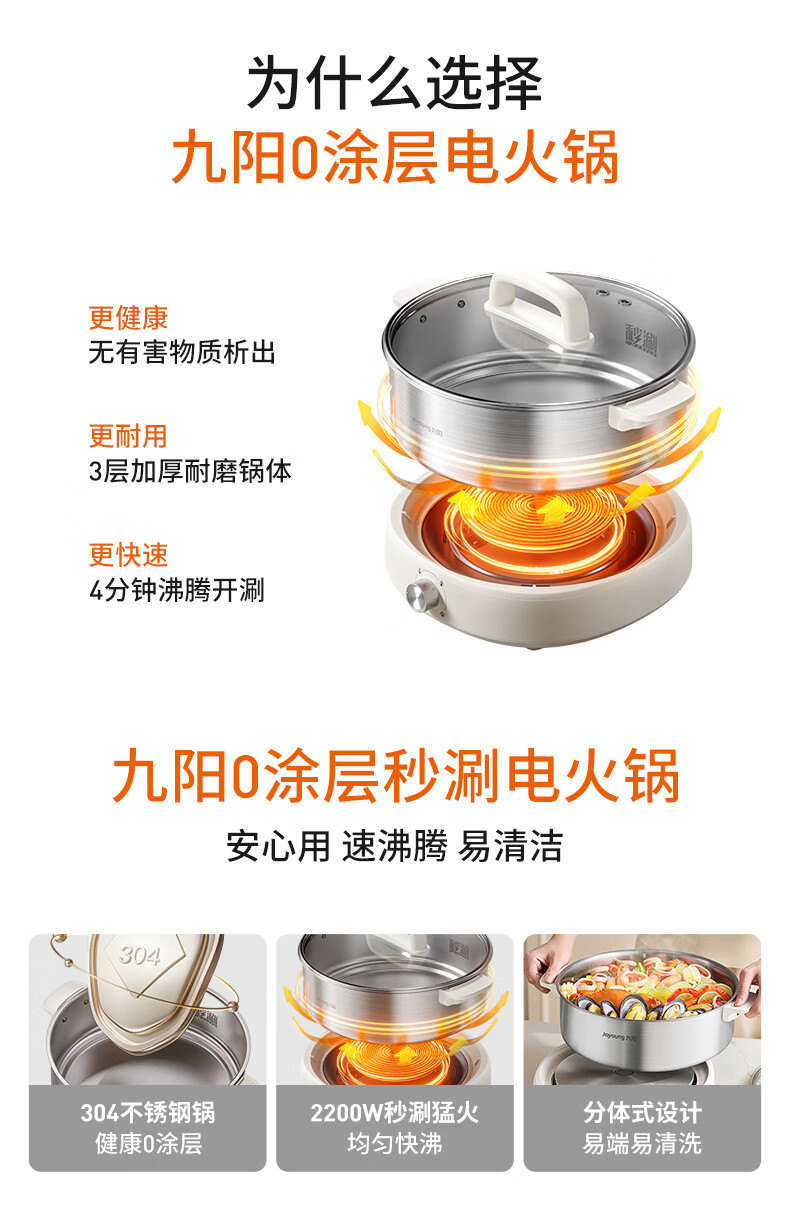 Joyoung 0-coating second-shake electric hot pot hot pot special pot electric pot household 4-8 people non-stick split removable and washable multi-functional electric steamer stainless steel electric cooking pot 6L hot pot pot GN64
