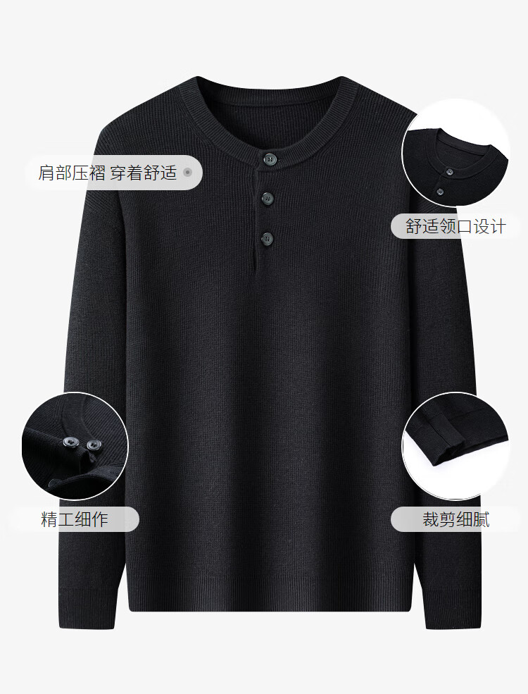 FAPAI cotton + cashmere machine washable sweater Henry collar men's pullover sweater men's sweater