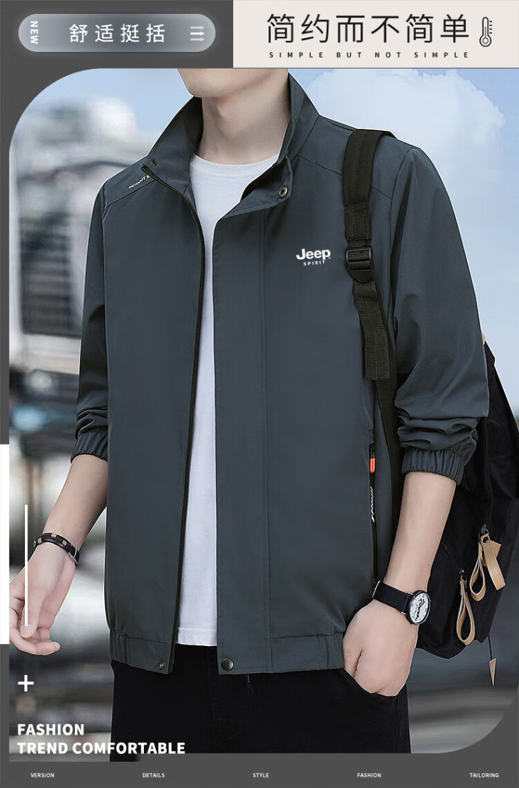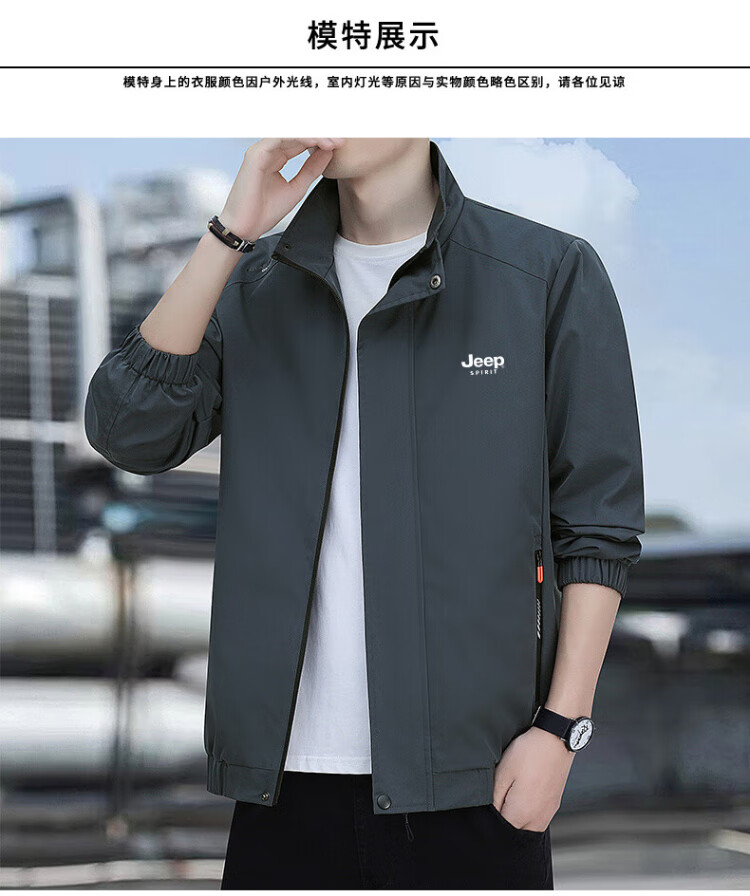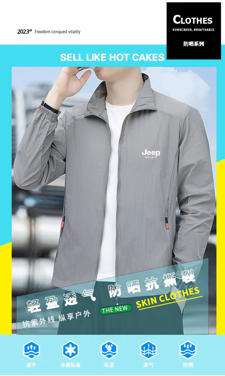 JEEP SPIRIT Jeep Sun Protection Jacket Men's Summer Outdoor Mountaineering Casual Jacket Light Gray Breathable Fishing Wear Light Gray L
