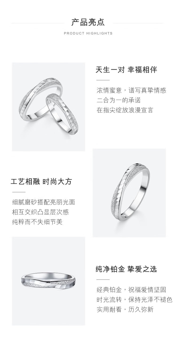 Lukfook Jewelry Platinum Ring Love Eternal Platinum Couple Ring Men's Ring Price HEP40007 No. 20 - About 5.70 grams