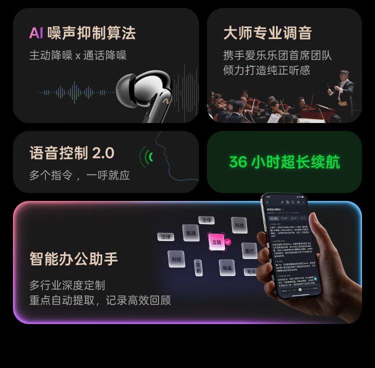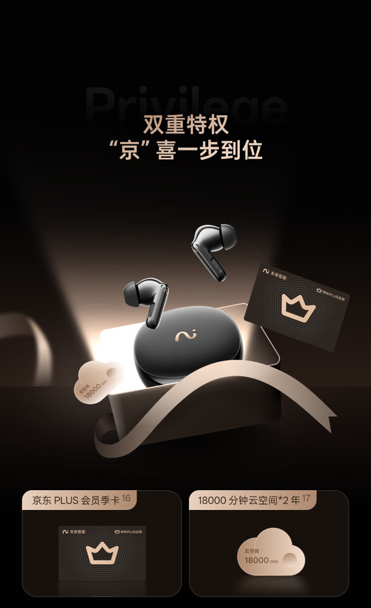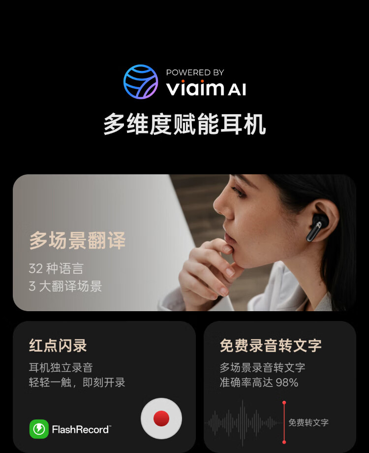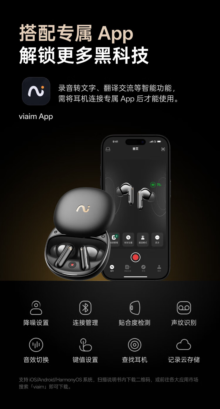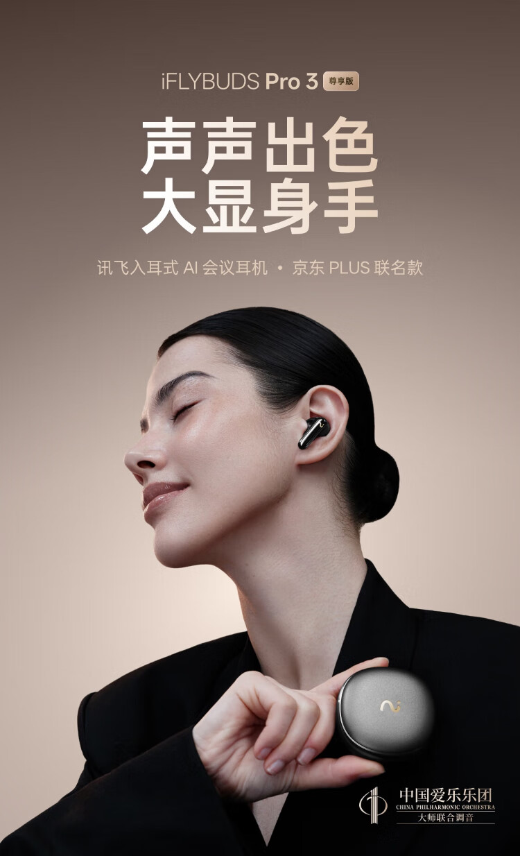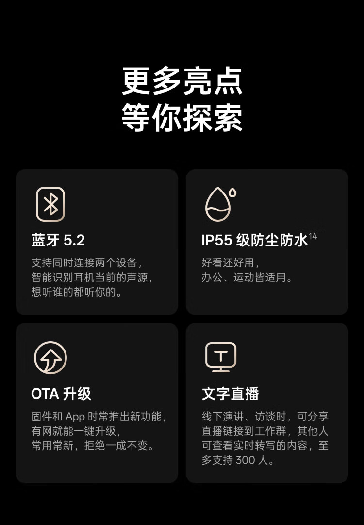 IFLYTEK AI Conference Noise Canceling Wireless Bluetooth Headset Pro 3 Black Gold Exclusive Edition Smart Recording Translation In-Ear Adapted to Apple, Huawei, and Xiaomi