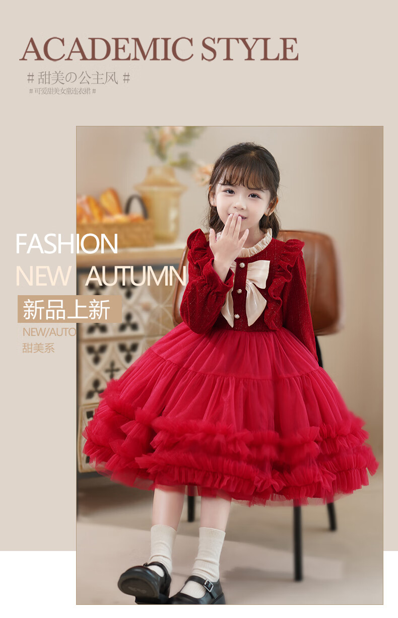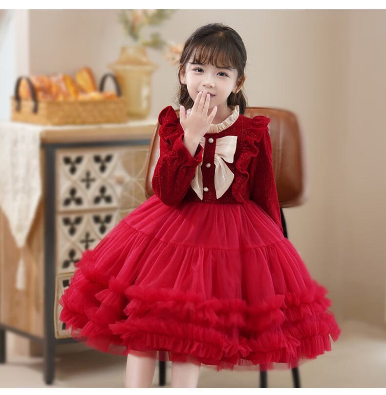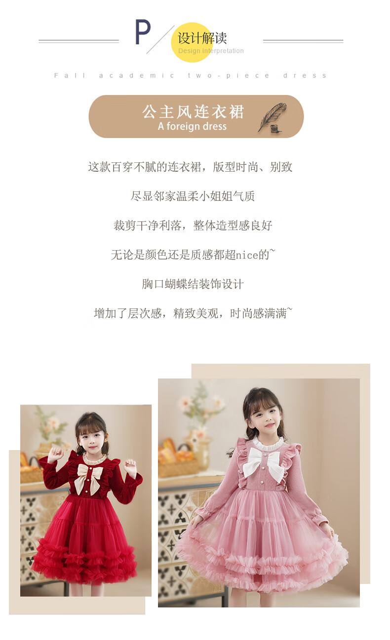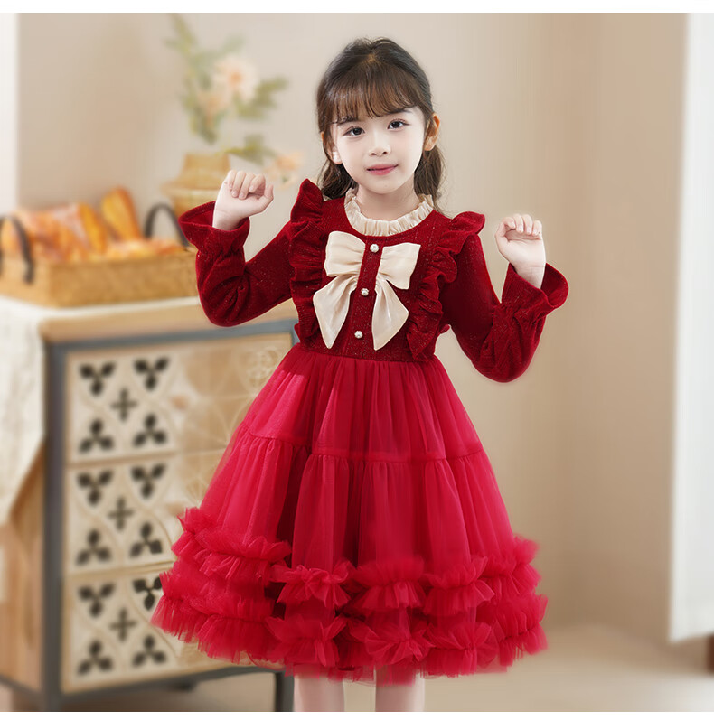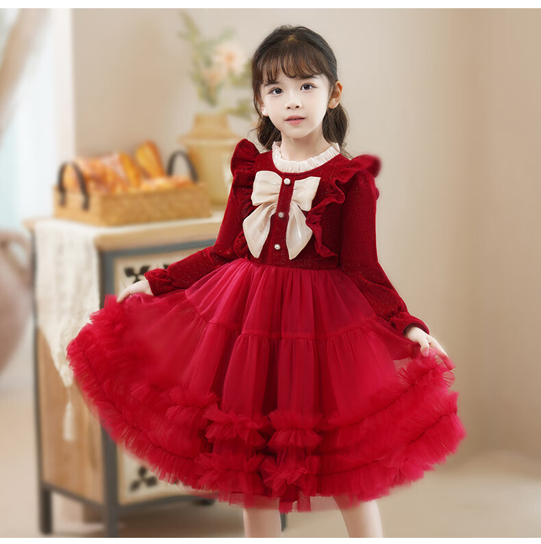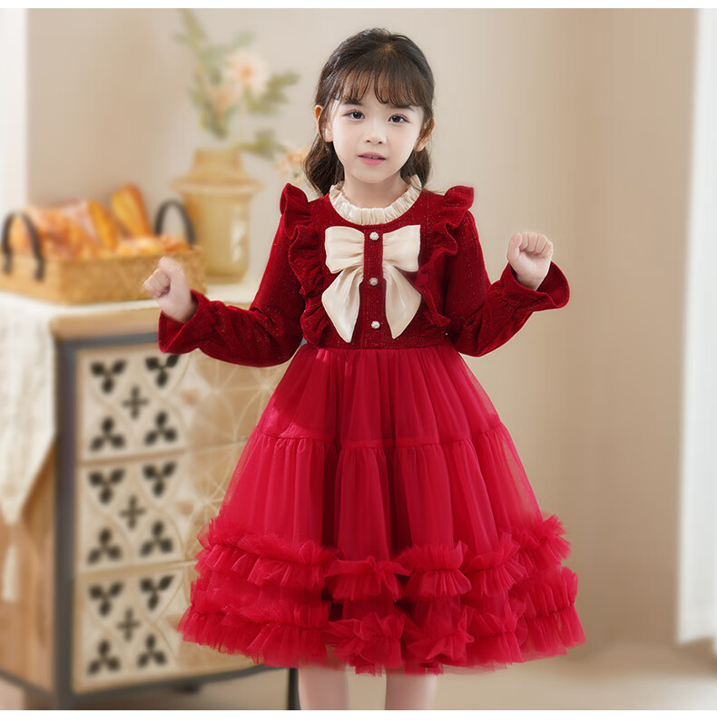 Piggy Banner (PEPCO) girls dress spring and autumn fashionable little girl autumn and winter dress children's dress princess dress autumn red 130