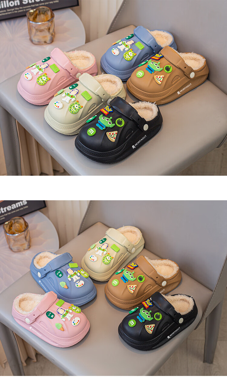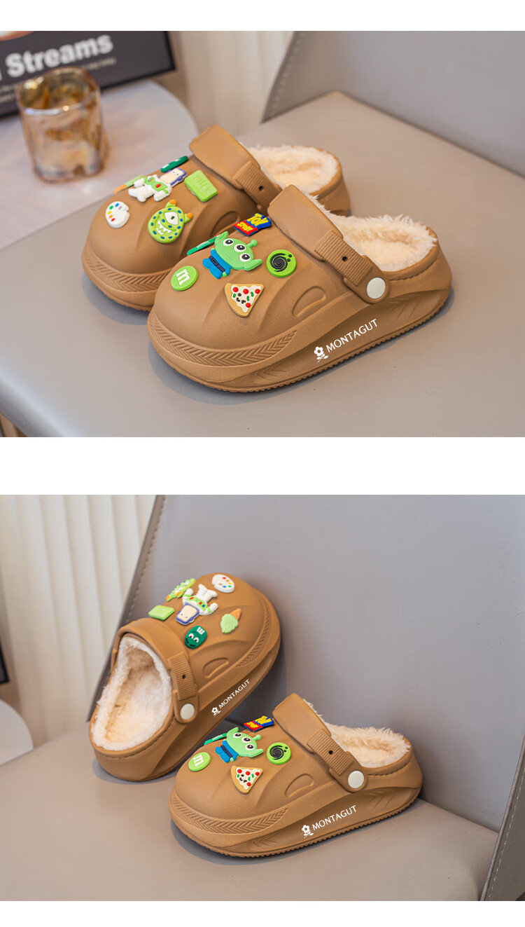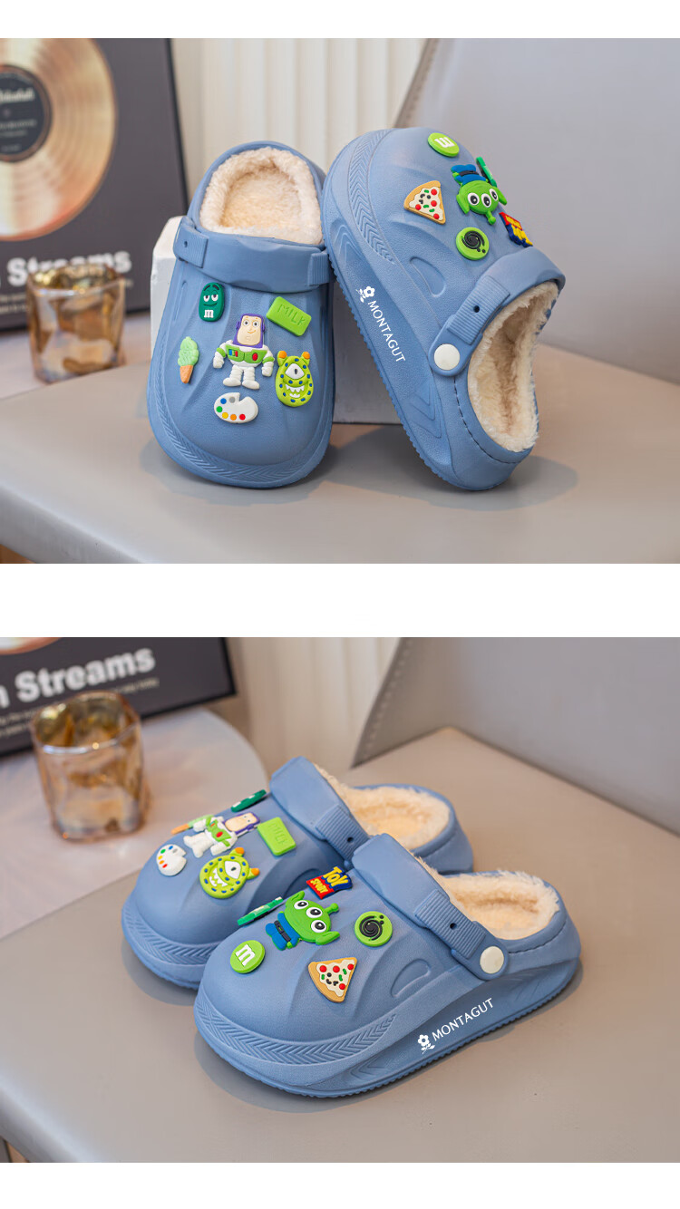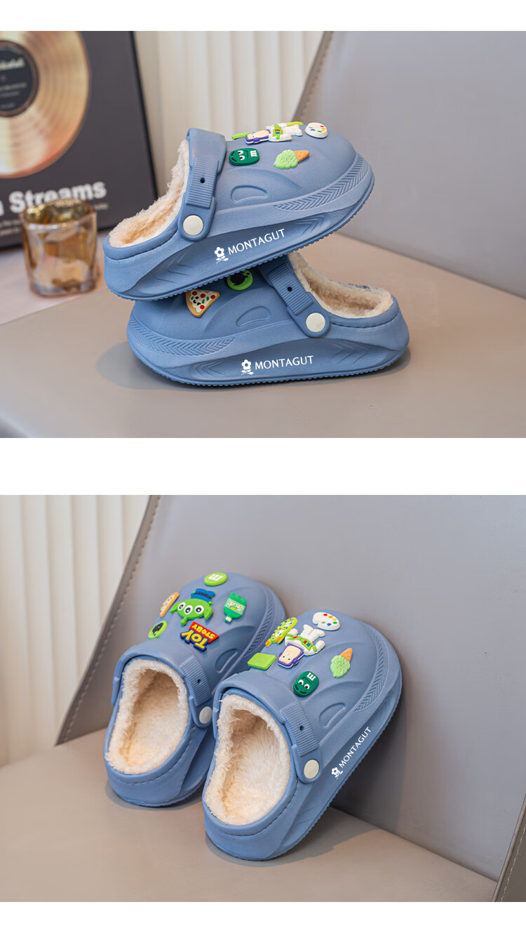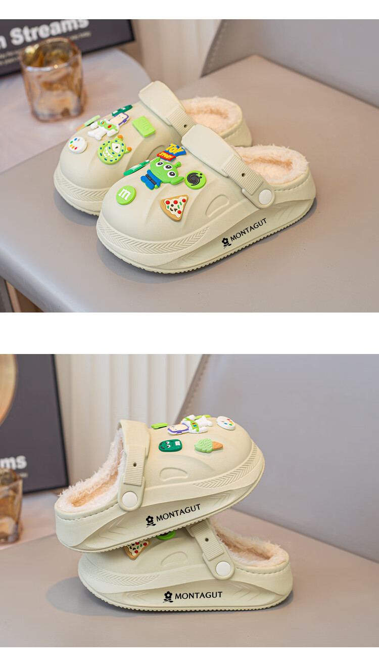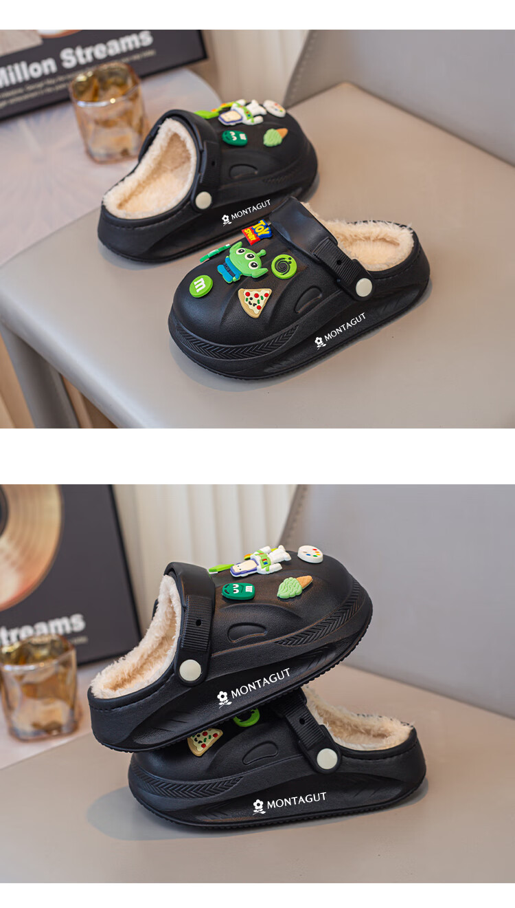 Montagut Children's Cotton Slippers Boys' Cotton Shoes Winter Plush Warm Indoor Furry Slippers for Large Children 6-12 Years Old Home Shoes