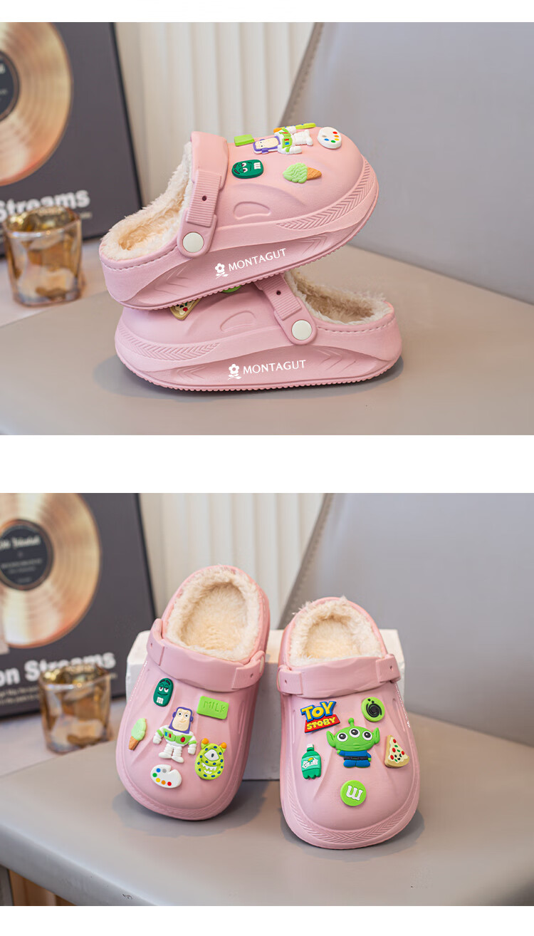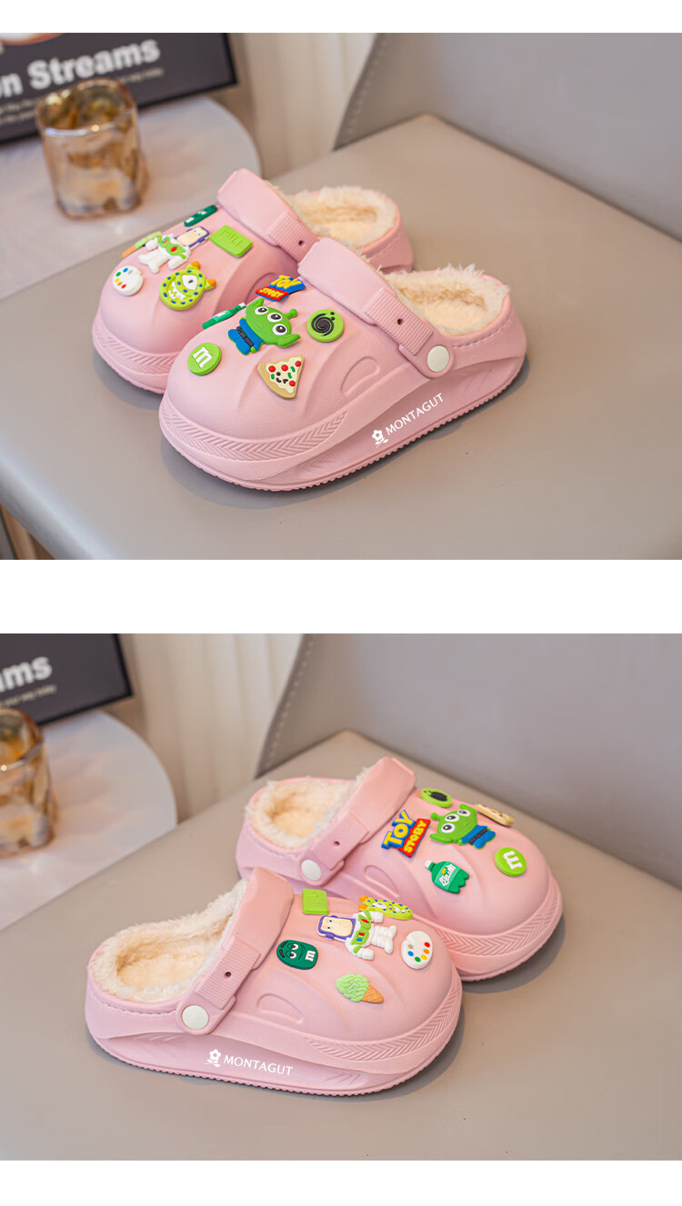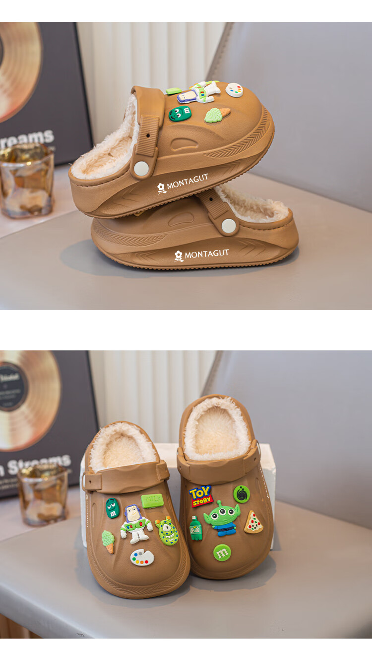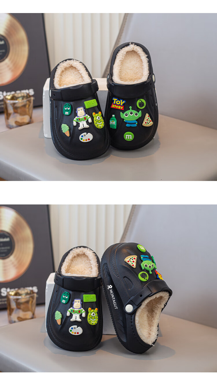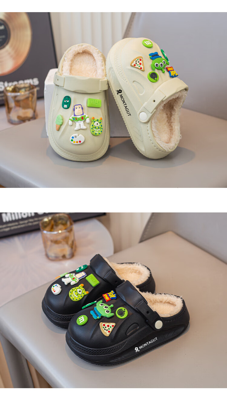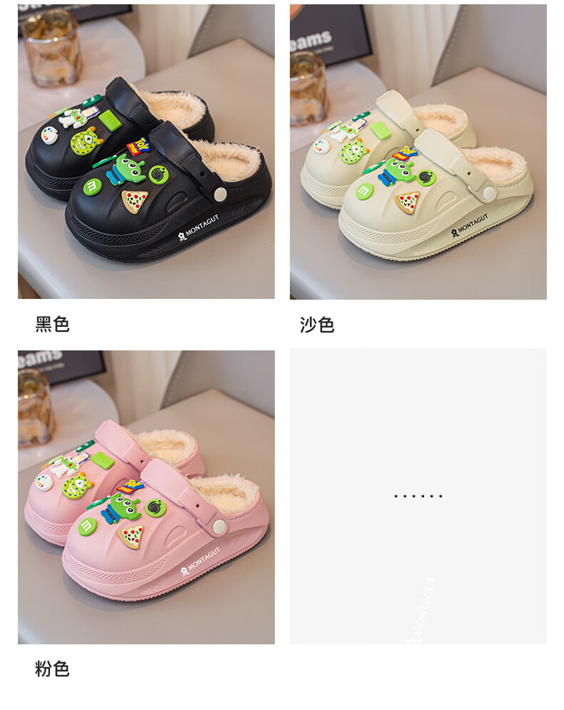Montagut Children's Cotton Slippers Boys' Cotton Shoes Winter Plush Warm Indoor Furry Slippers for Large Children 6-12 Years Old Home Shoes