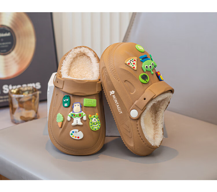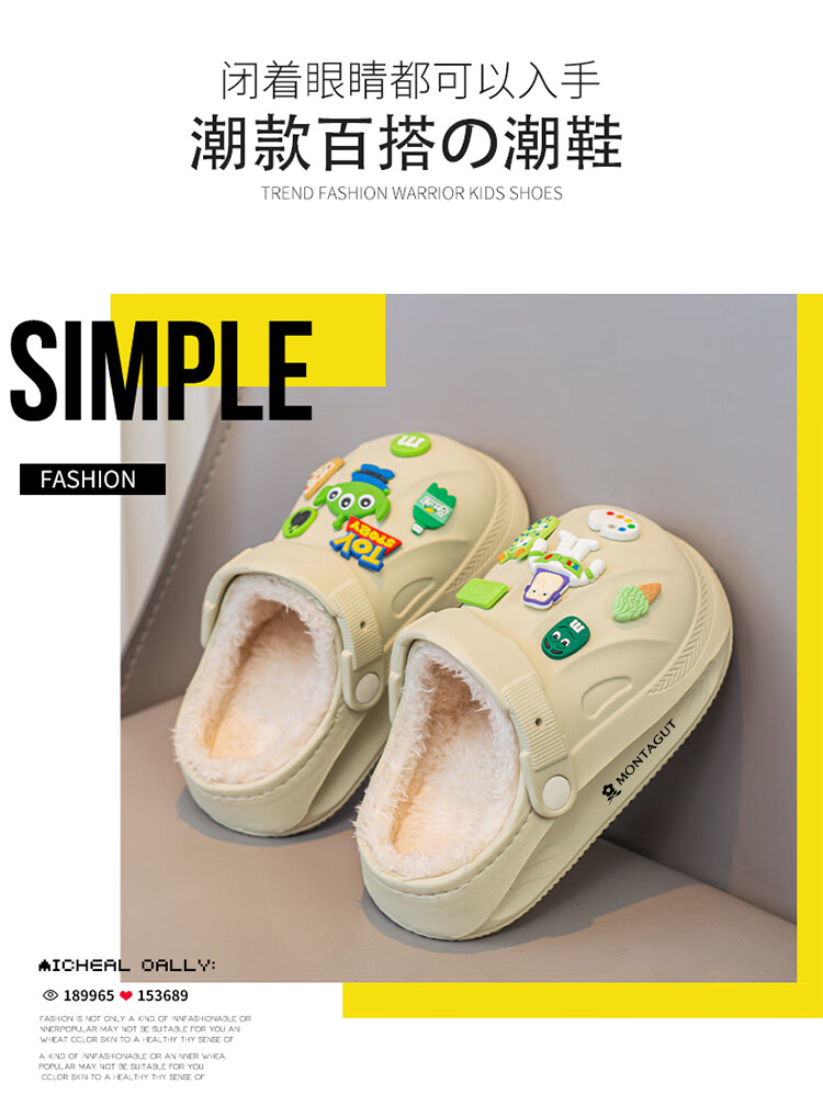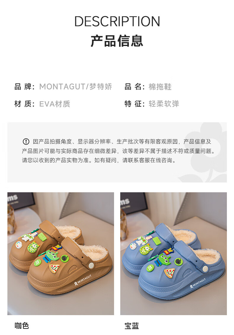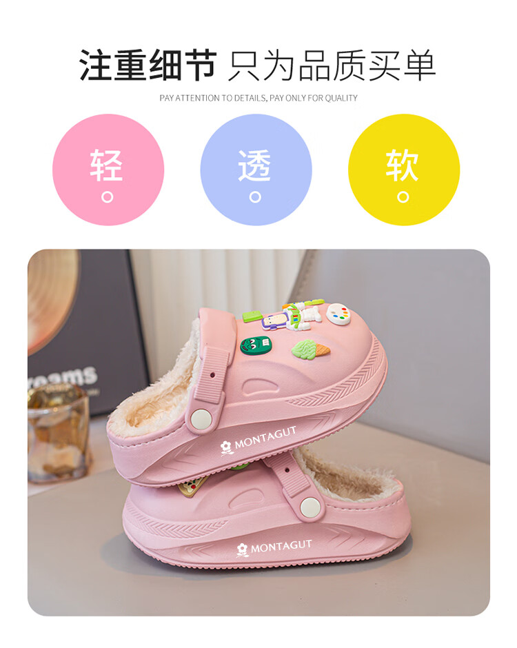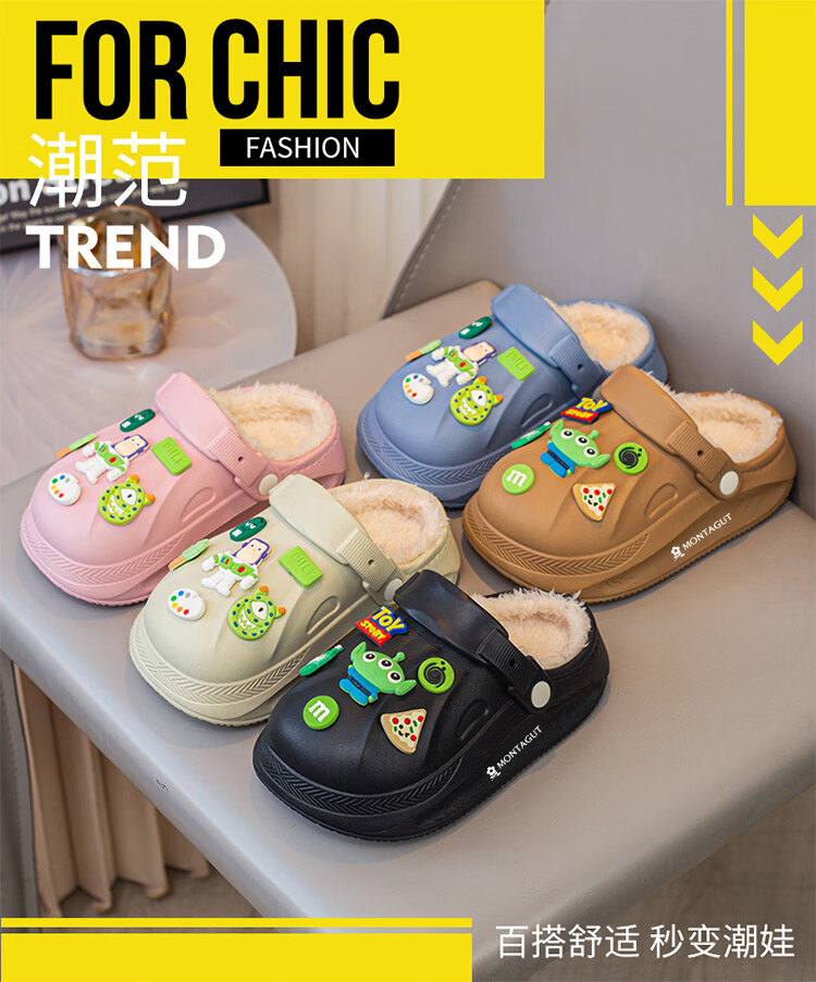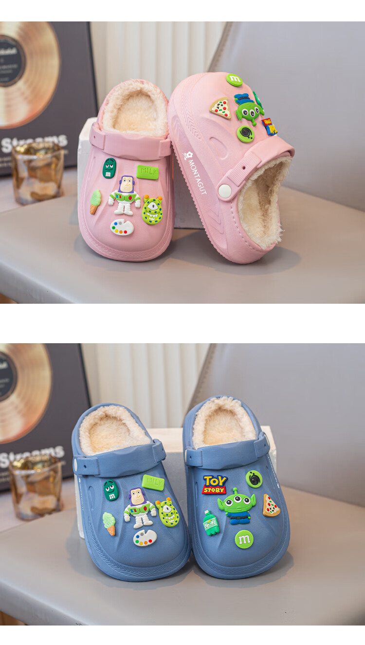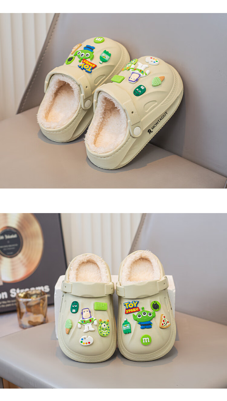 Montagut Children's Cotton Slippers Boys' Cotton Shoes Winter Plush Warm Indoor Furry Slippers for Large Children 6-12 Years Old Home Shoes