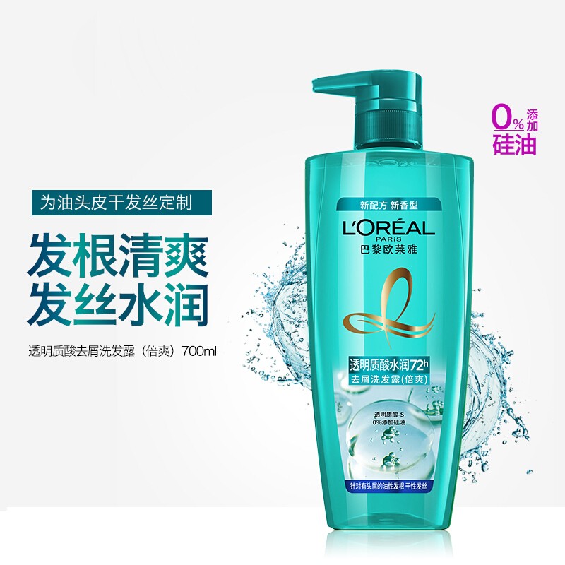 L'Oreal Shampoo Conditioner Hyaluronic Acid Hydrating Anti-Dandruff Shampoo Conditioner Refreshing Silicone-Free Smooth Shampoo Hydrating Conditioner 700ml Normal Specifications