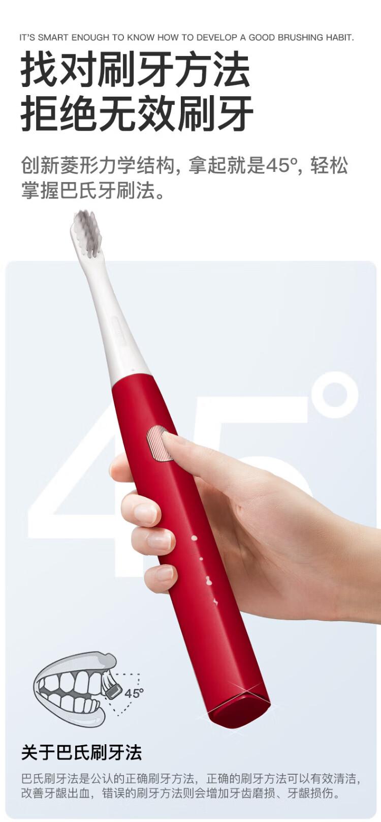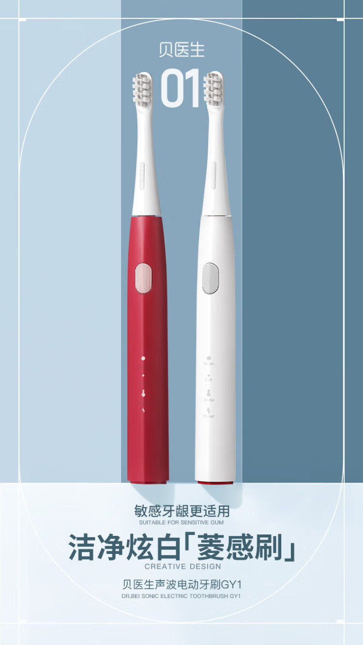 Dr. Bei Dr. Bei sonic electric toothbrush for adults/students, sonic tooth cleaning, efficient cleaning, long battery life GY1 red (brush head*8)