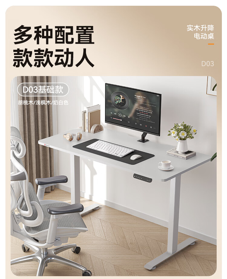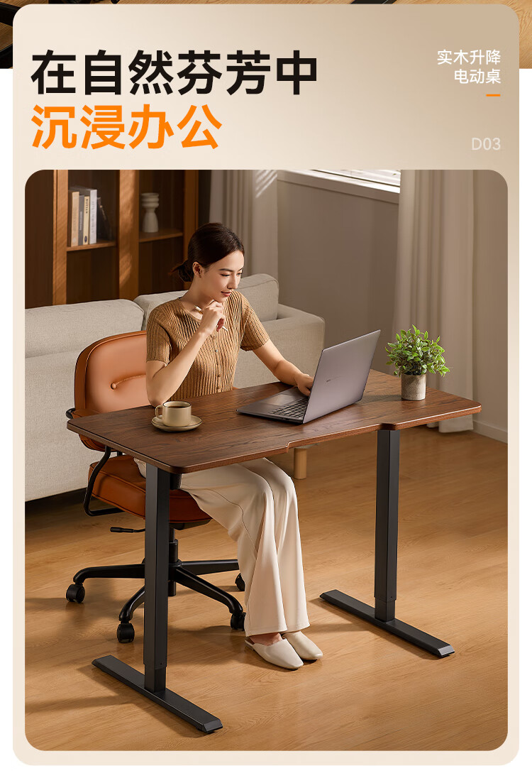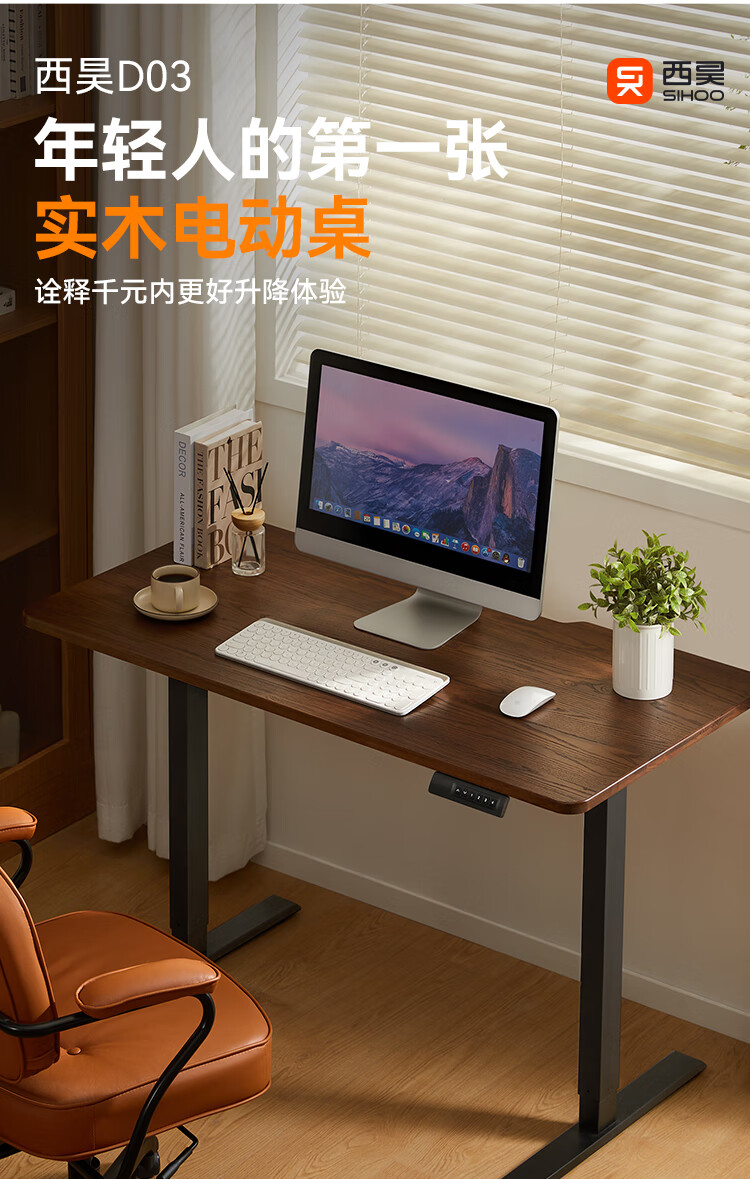 Xihao D03S electric lift table computer table e-sports table desk office study table solid wood board 1.4m wood color