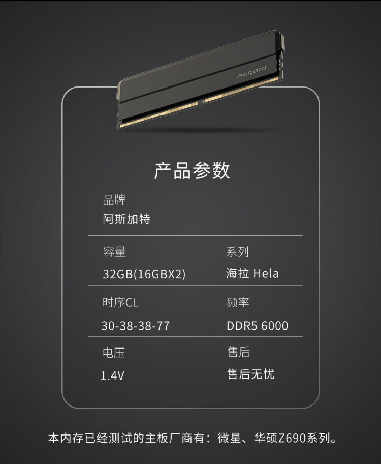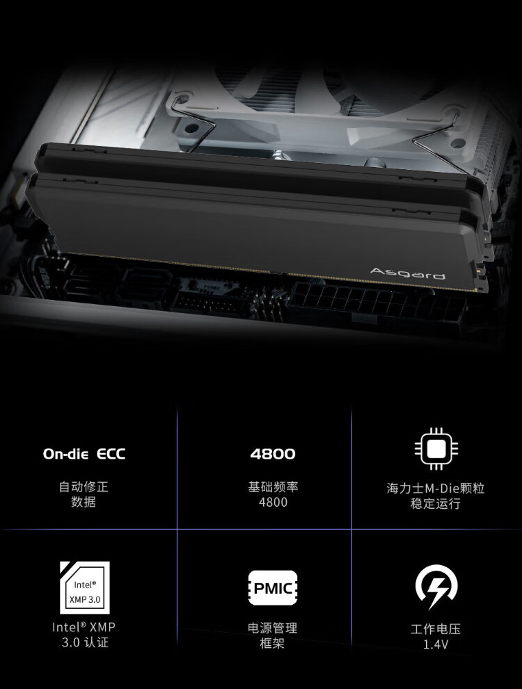 Asgard (Asgard) 32GB (16GBx2) DDR5 6000 desktop memory Hella Vest strip Hynix M-die particles CL30 Extreme Night Black