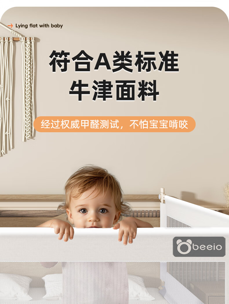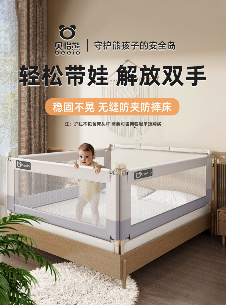 Beeio bed fence baby crib baby anti-fall bed fence safety guardrail bedside baffle bed guardrail three-sided installation Glacier Gray 2.0 meters single-sided installation