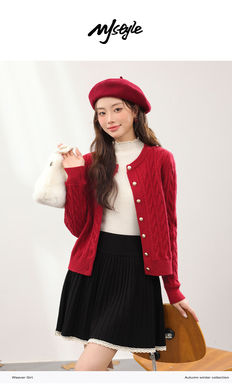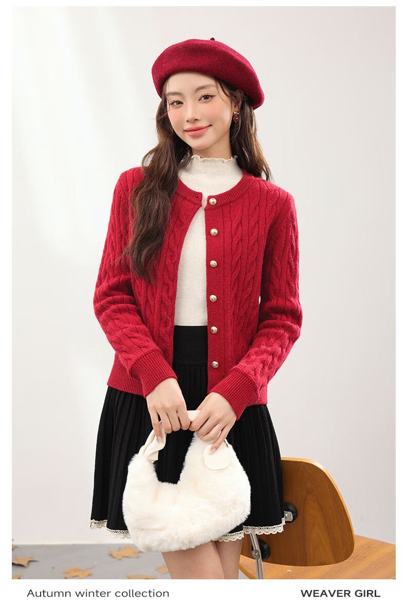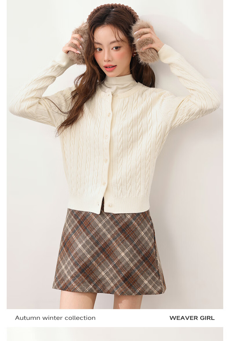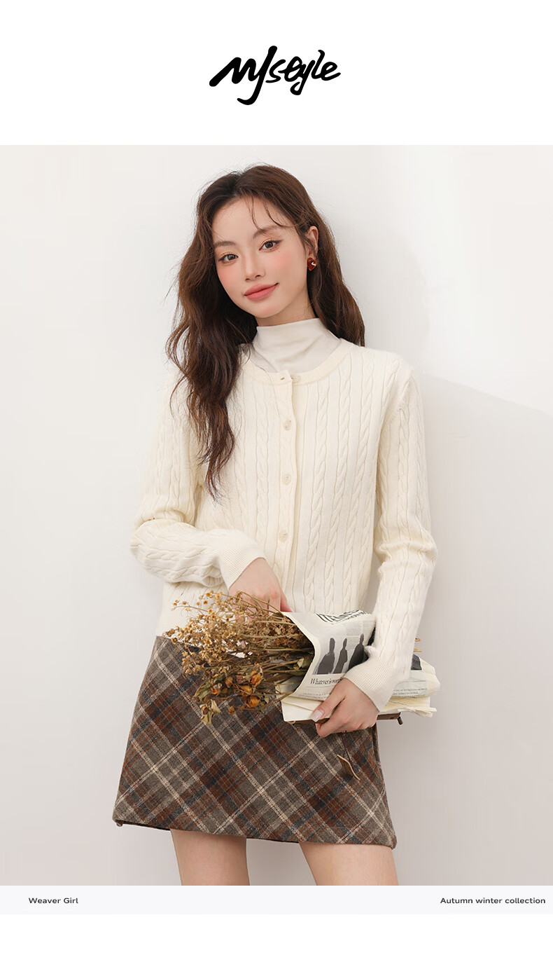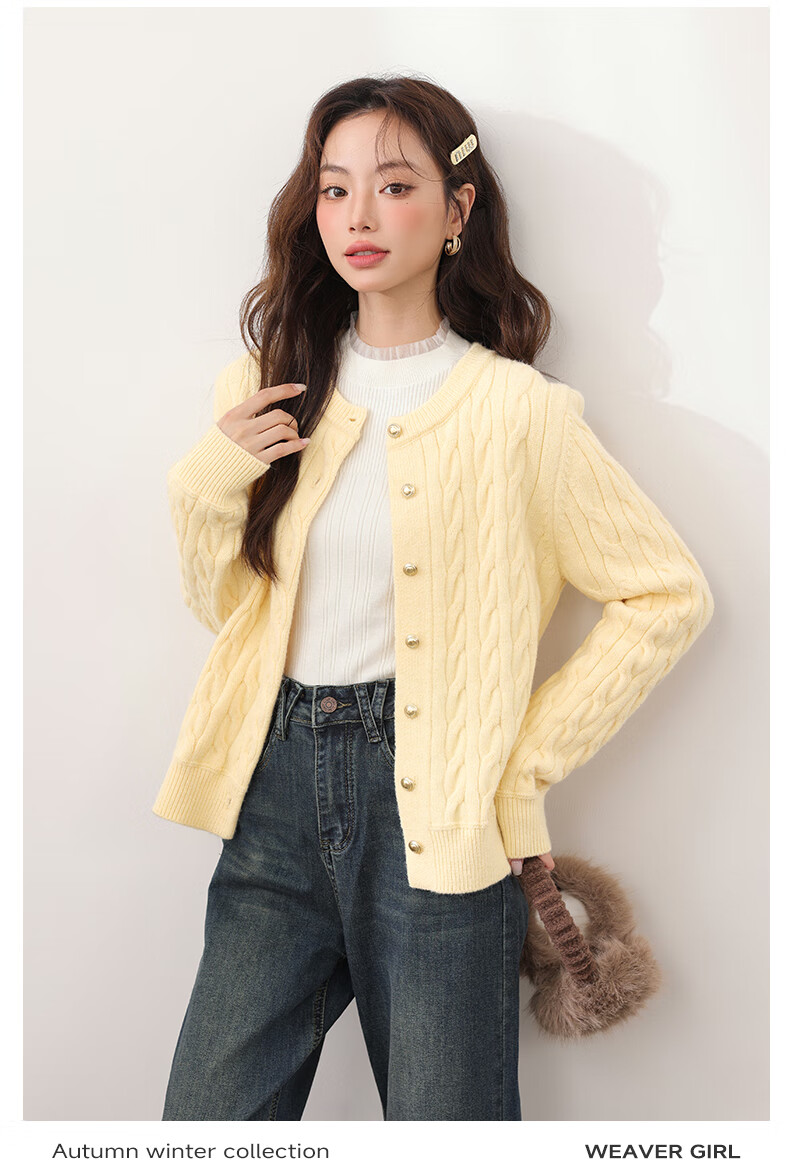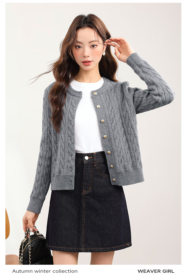 MJ STYLE cable knit sweater cardigan women's 2025 autumn new Korean style small fragrance versatile slim short sweater jacket