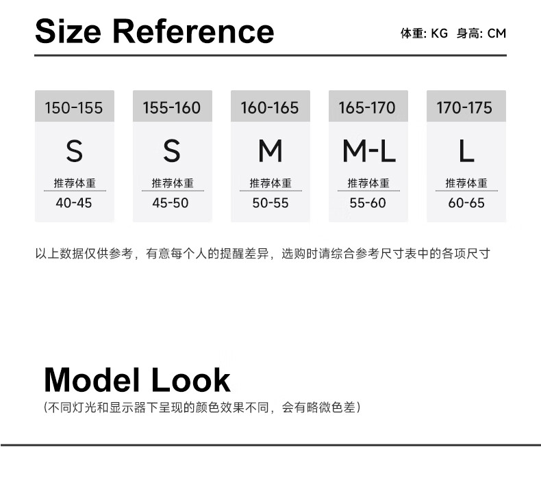 China (cm) 160-165/84-86 165-170 / 88-90 167-172 / 92-96 168-173 / 98-102 170-176 / 106-110