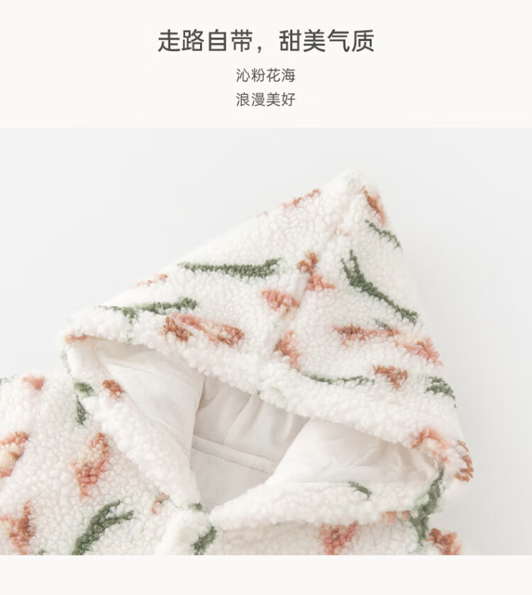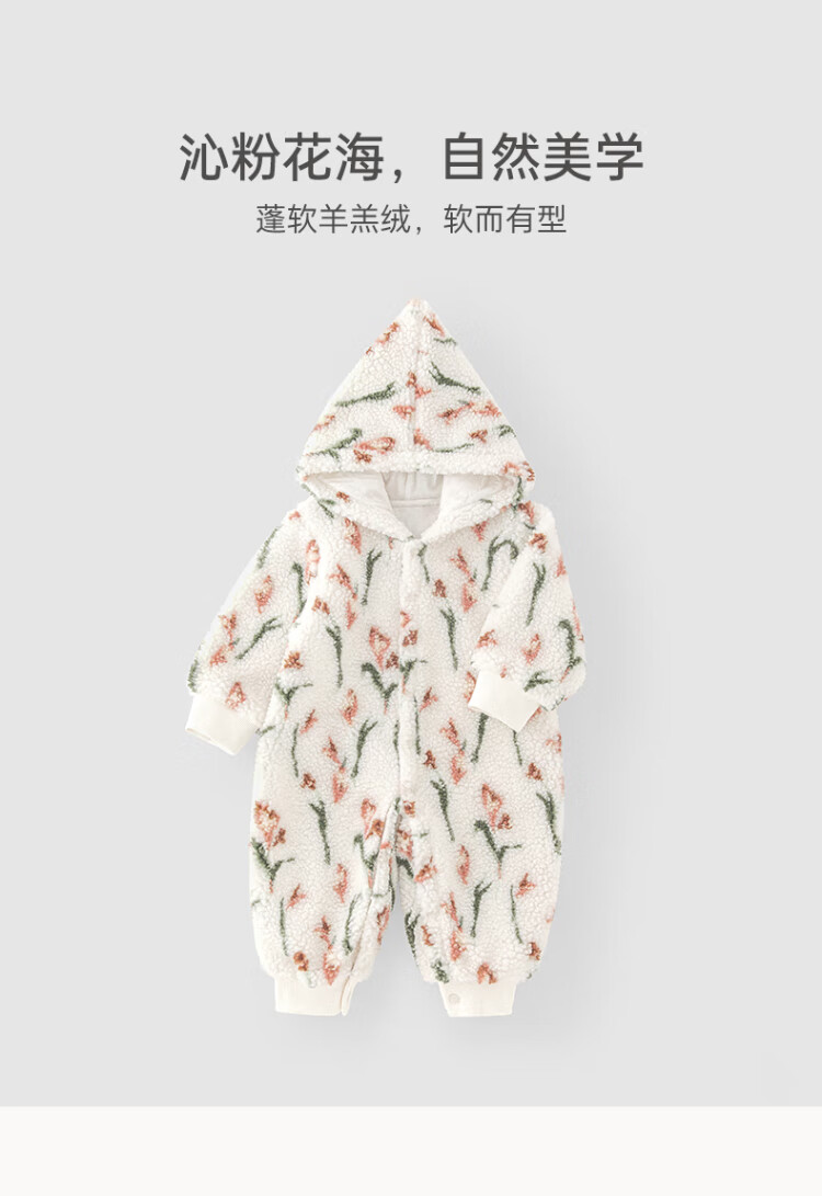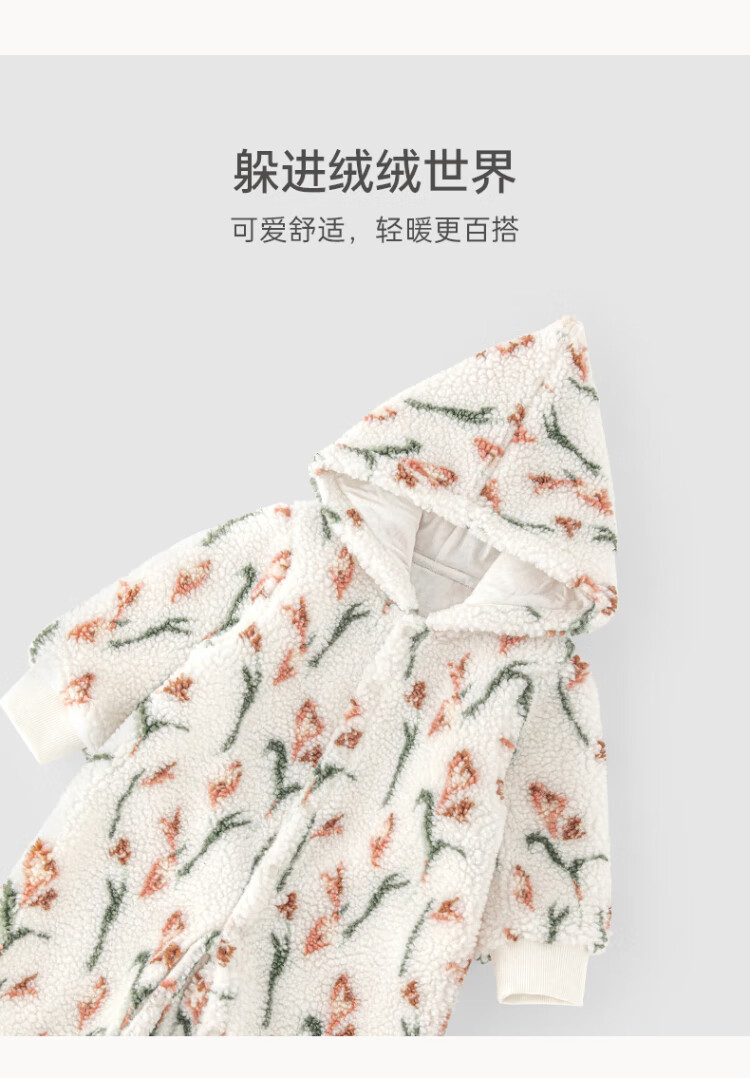 Guiqi Bear male and female baby lamb velvet warm jumpsuit for infants and young children to go out hooded clothing climbing clothes autumn and winter