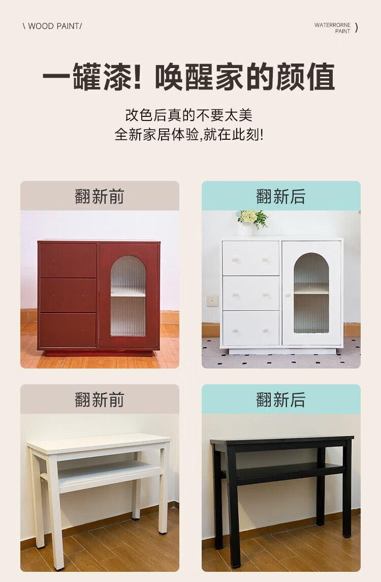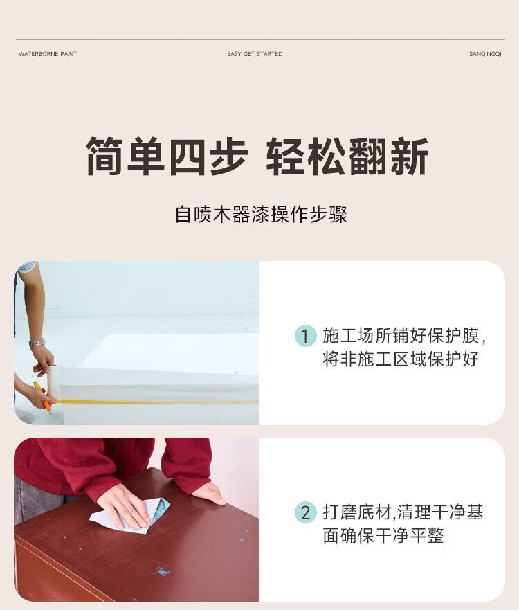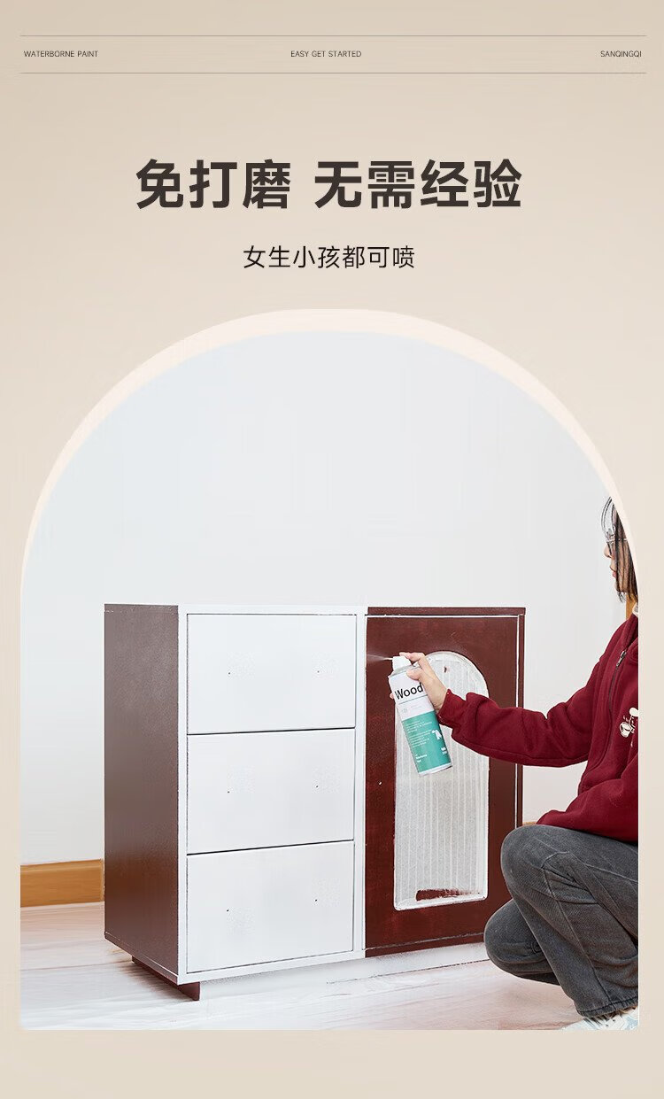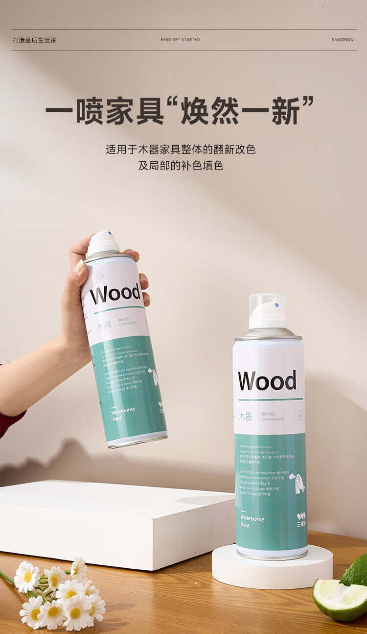 Sanqing water-based wood self-painting furniture renovation paint doors and windows wardrobe wood color-changing paint pure white 650ML