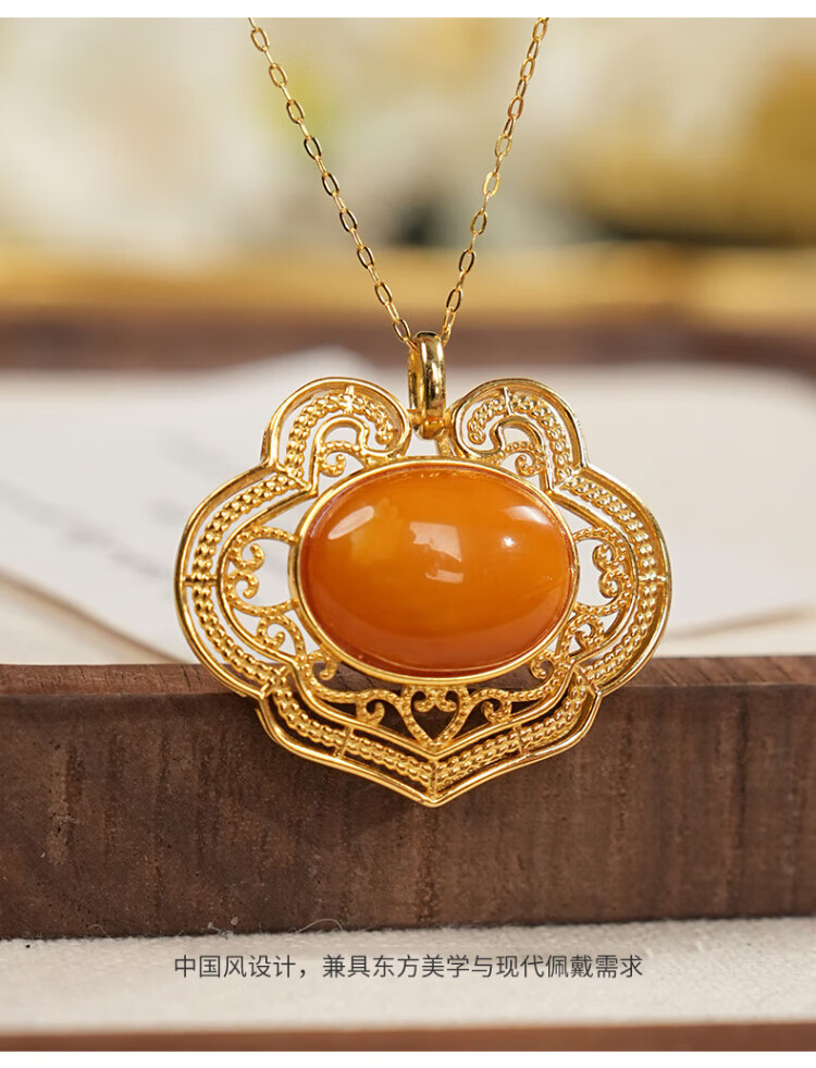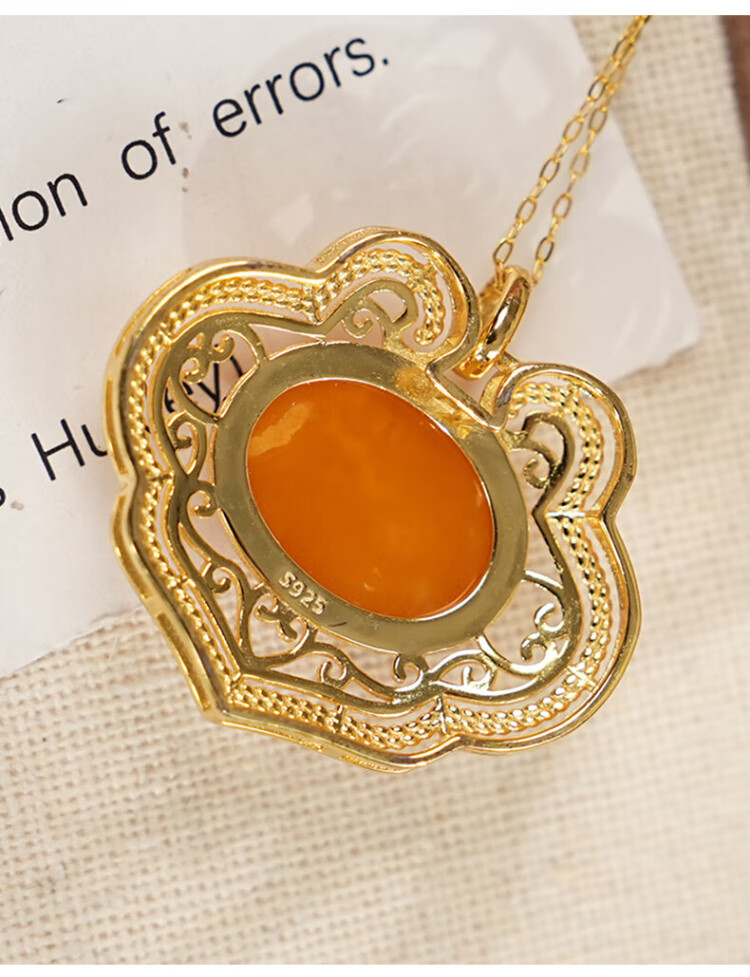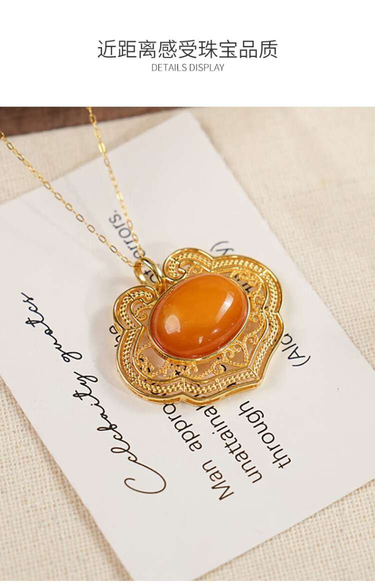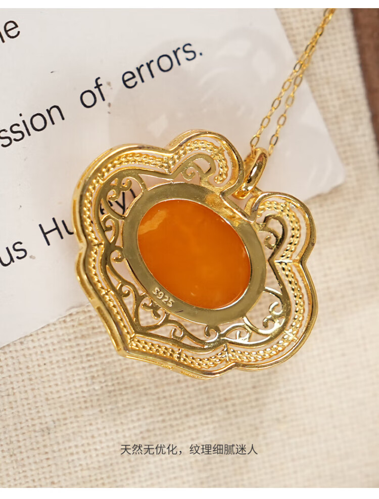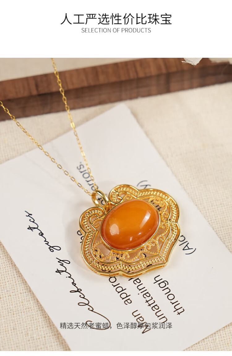 Dara beeswax pendant for women, raw stone full of honey, chicken oil yellow 925 old wax pendant, Russian material, practical Chinese Valentine's Day gift