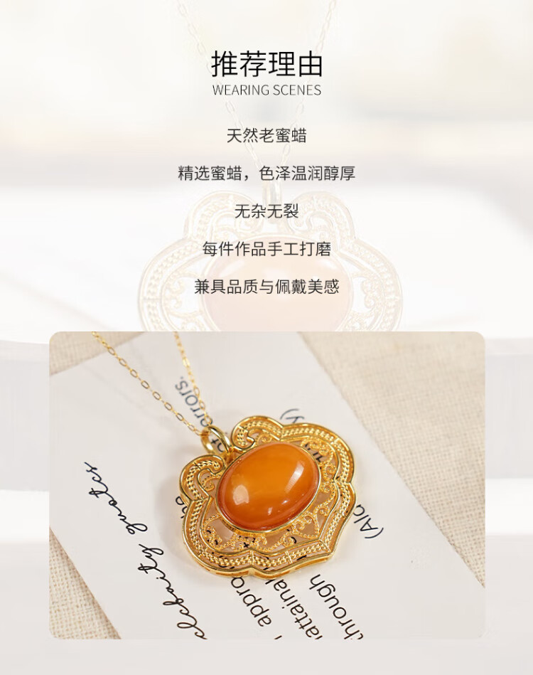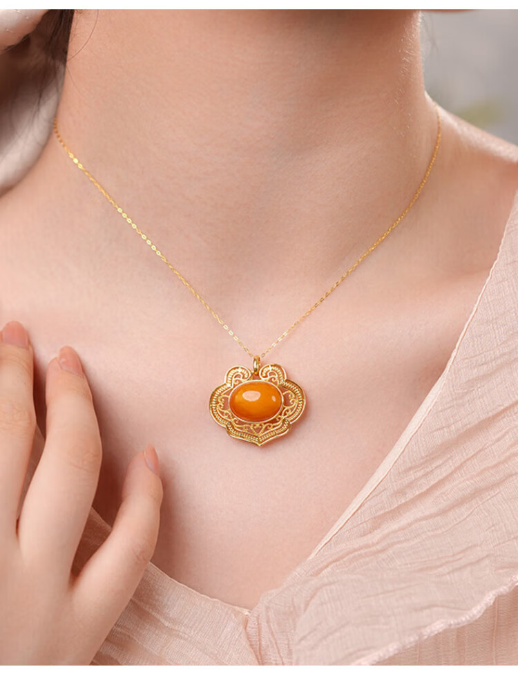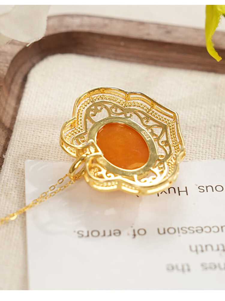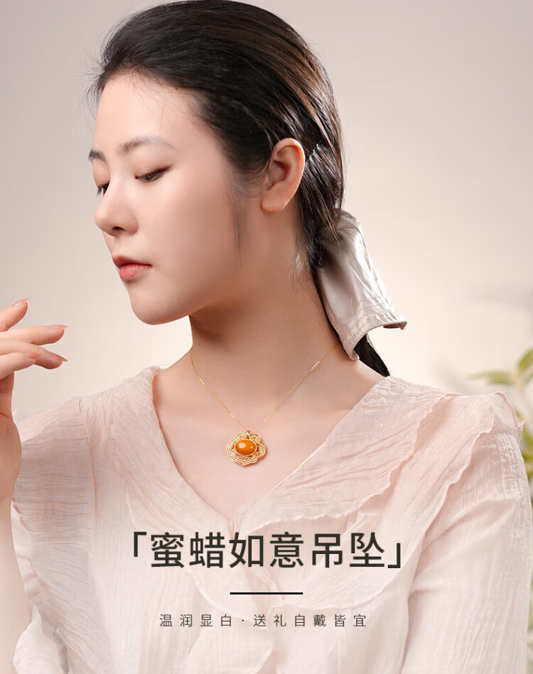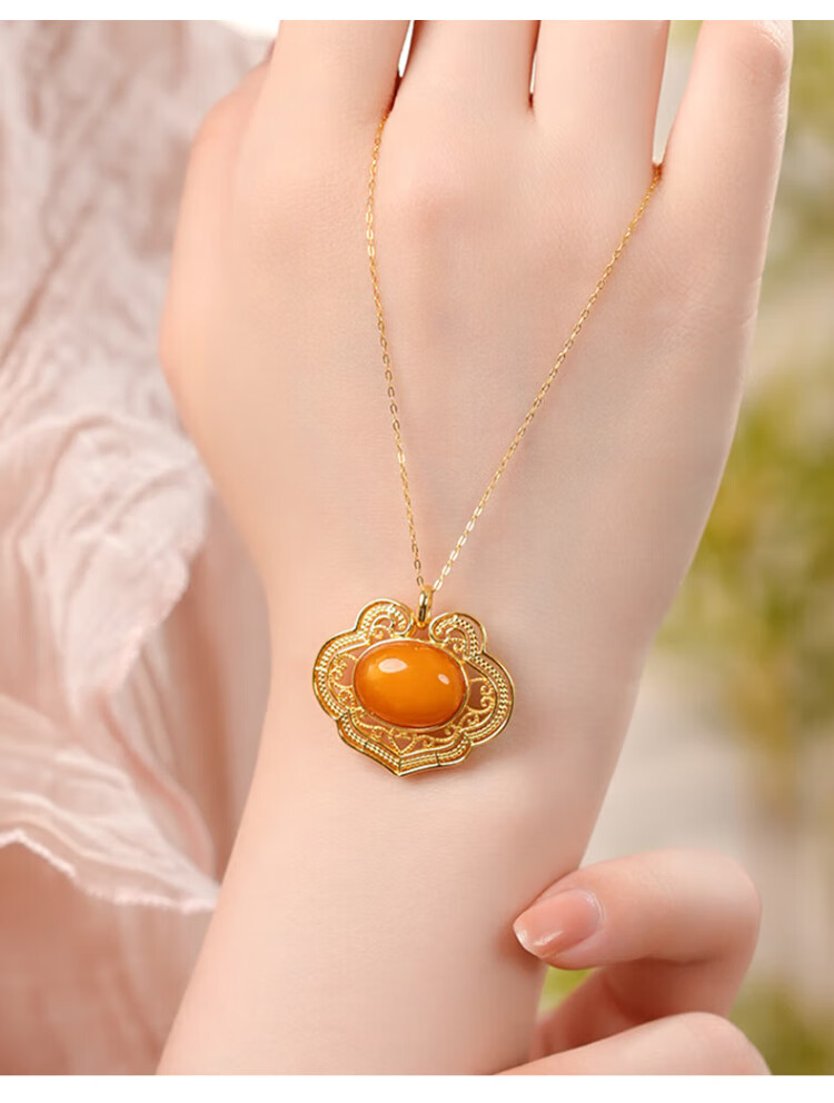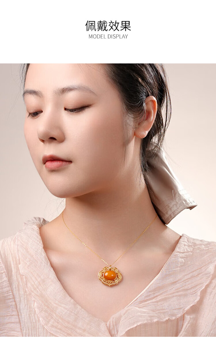 Dara beeswax pendant for women, raw stone full of honey, chicken oil yellow 925 old wax pendant, Russian material, practical Chinese Valentine's Day gift