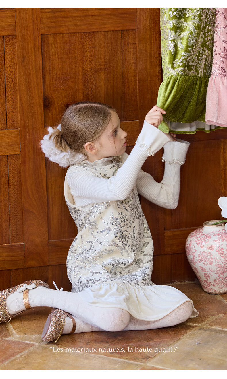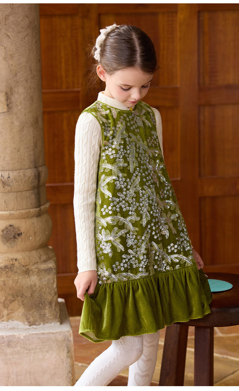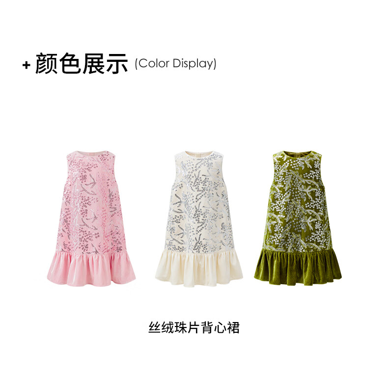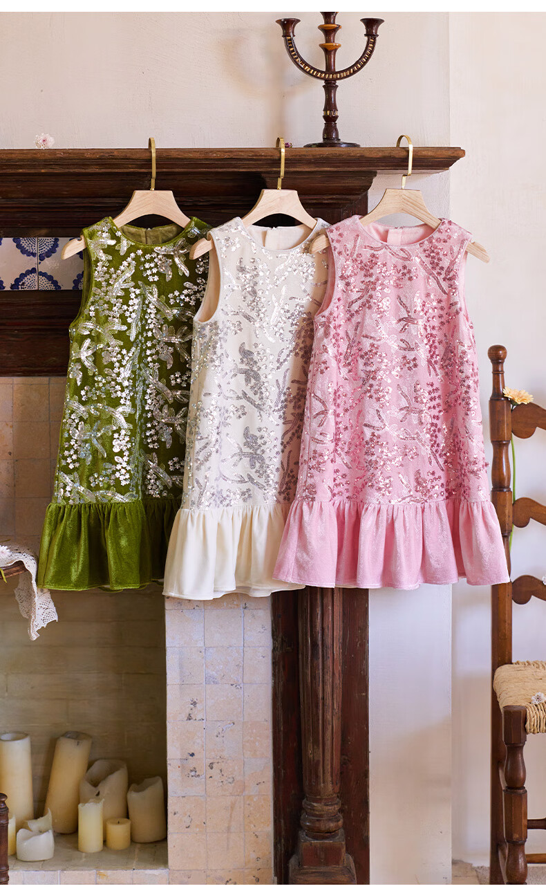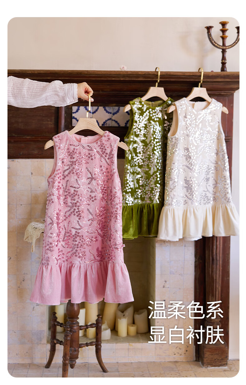Little Naive girls heavy velvet sequin embroidered tank top winter children's velvet dress pink 150