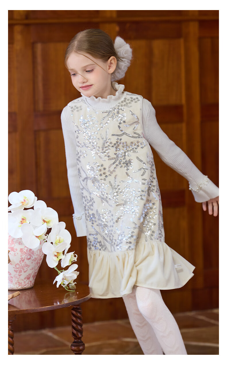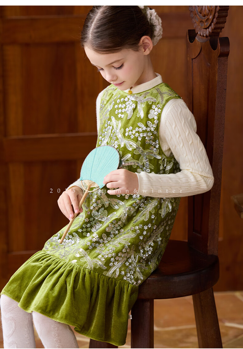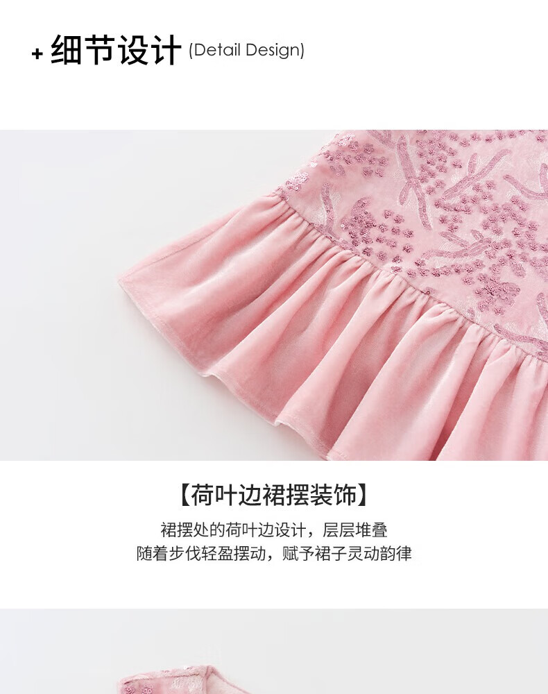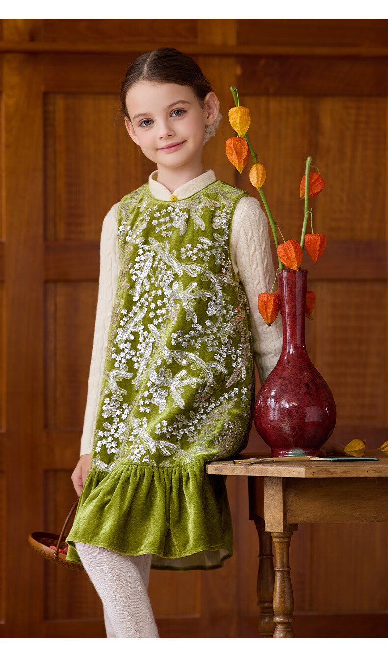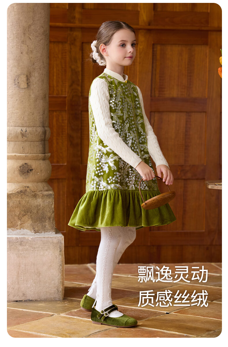 Little Naive girls heavy velvet sequin embroidered tank top winter children's velvet dress pink 150