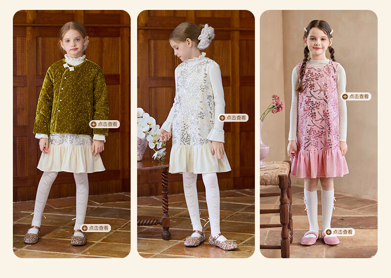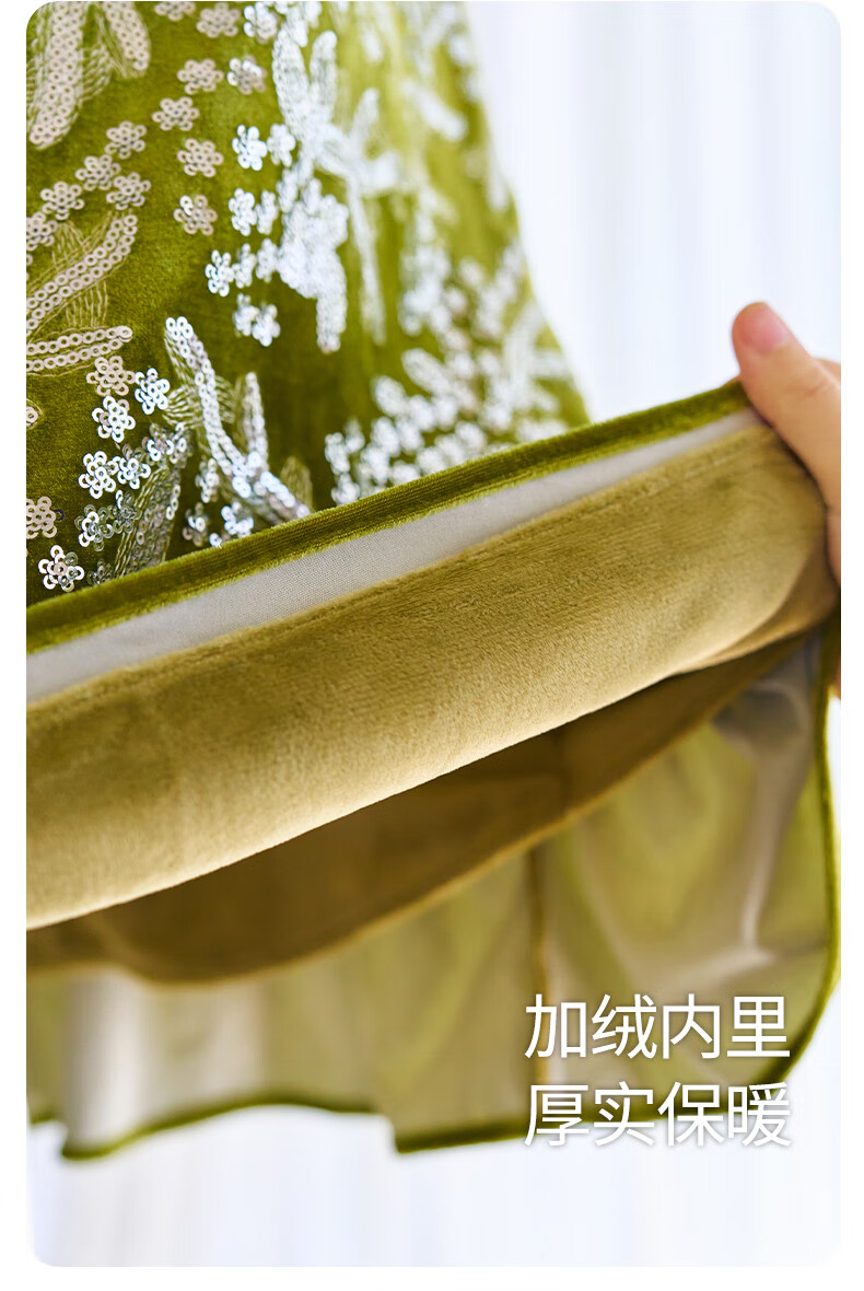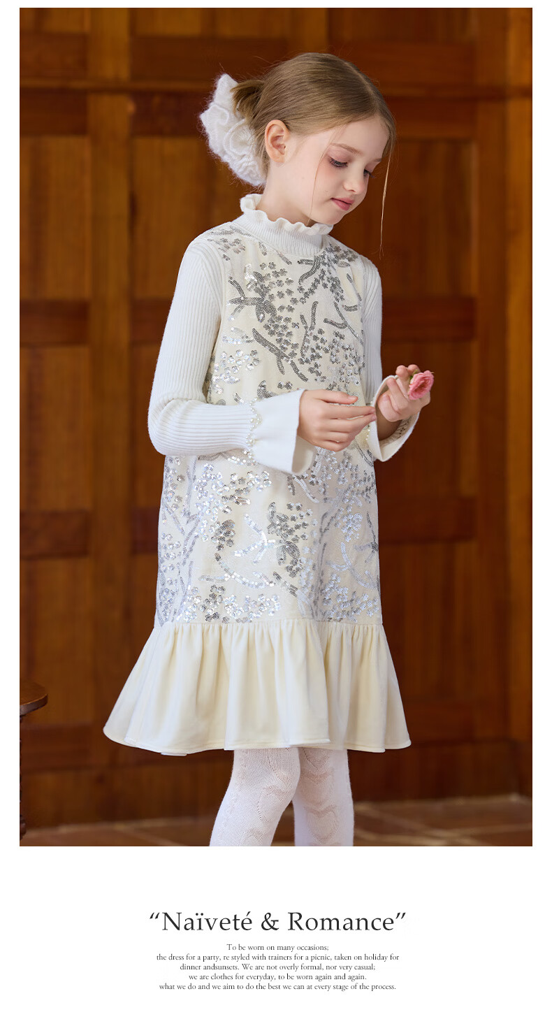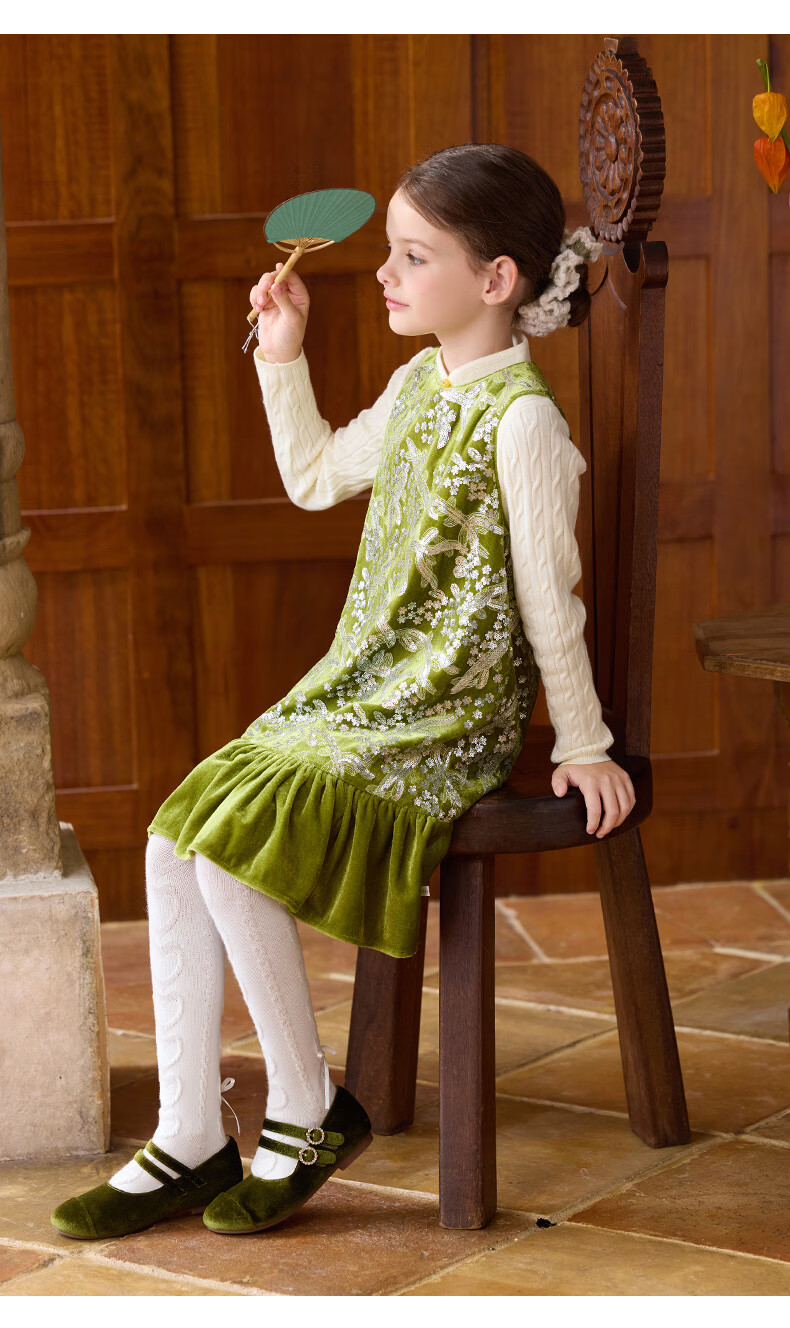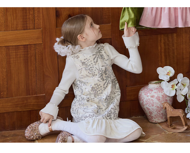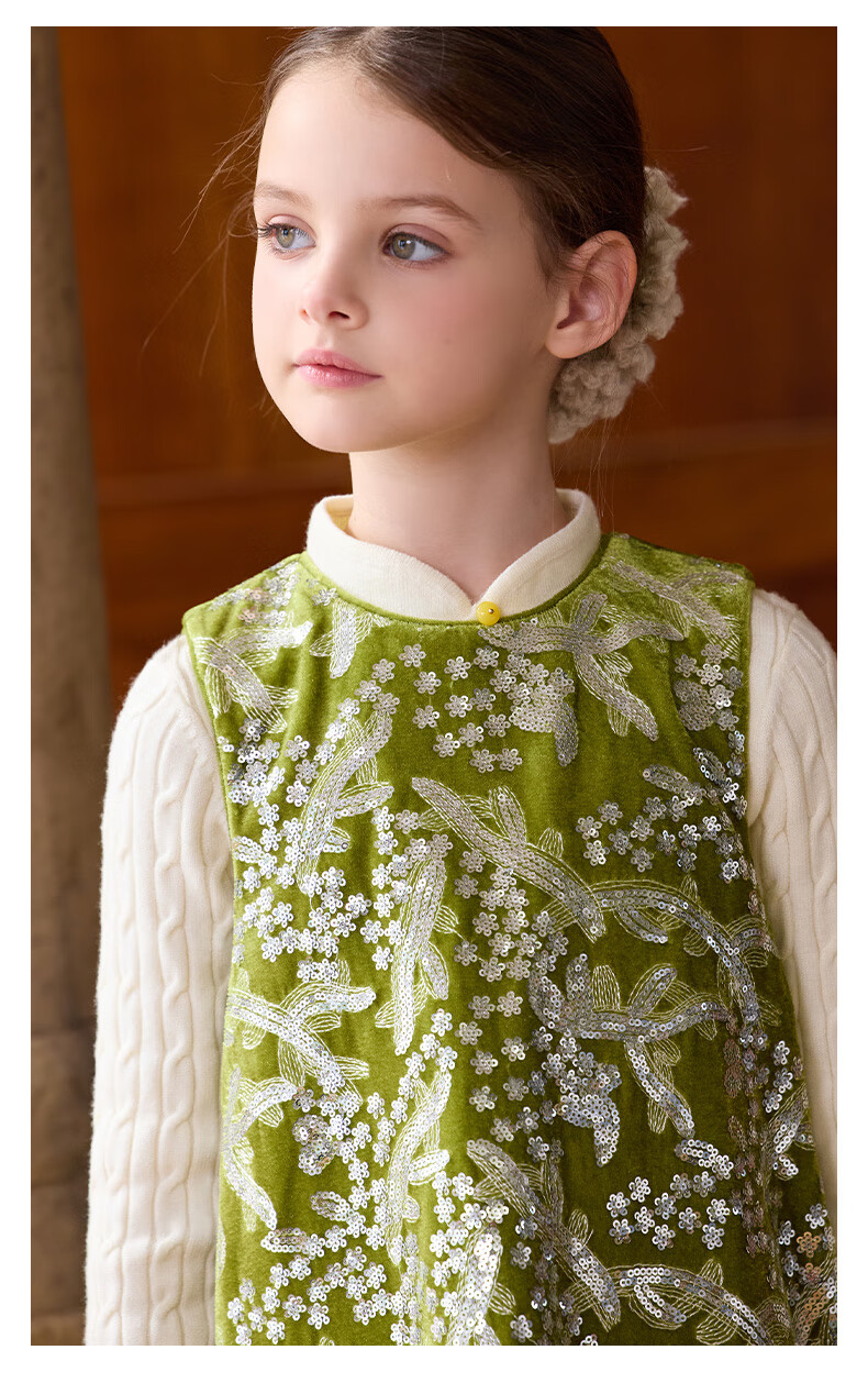 Little Naive girls heavy velvet sequin embroidered tank top winter children's velvet dress pink 150