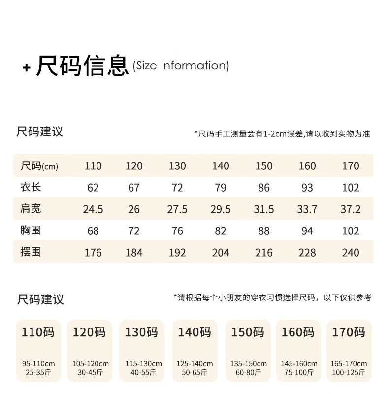 China (cm) 160-165/84-86 165-170 / 88-90 167-172 / 92-96 168-173 / 98-102 170-176 / 106-110