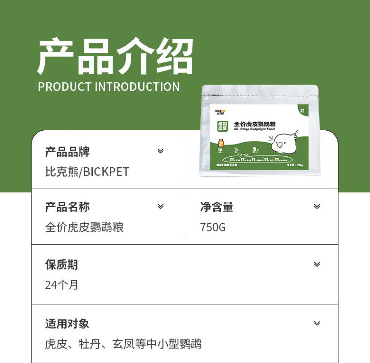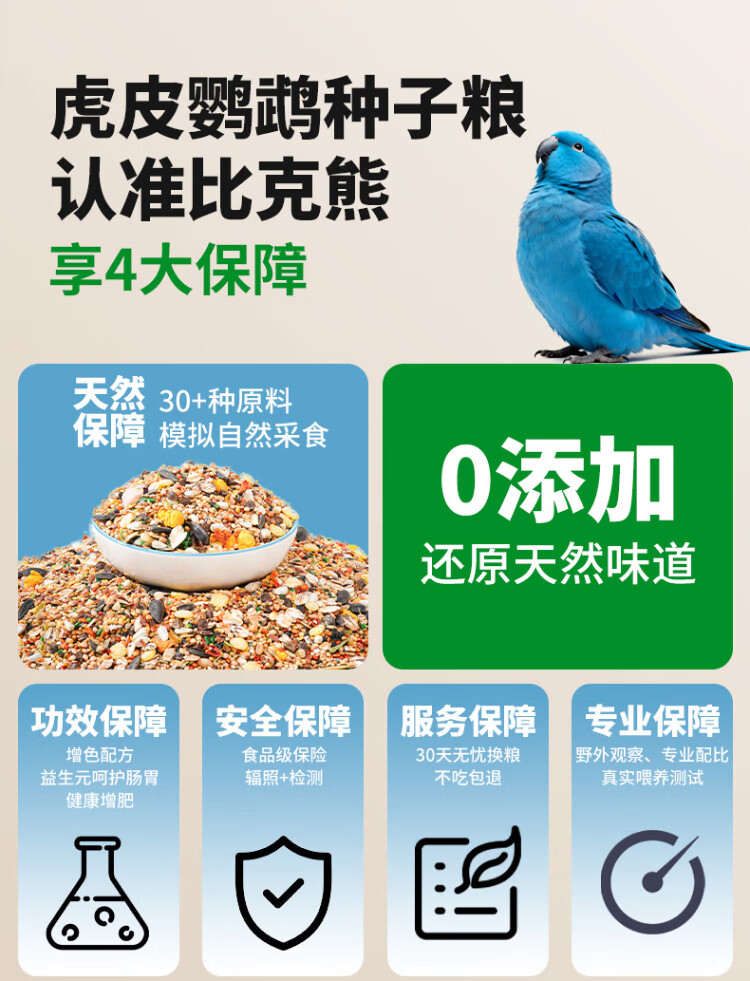 Bick Bear budgie seed grain tiger skin special probiotic feed shelled five-color millet grain 750g