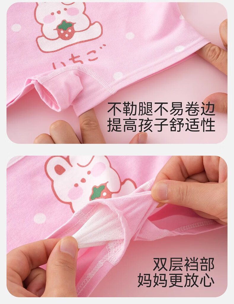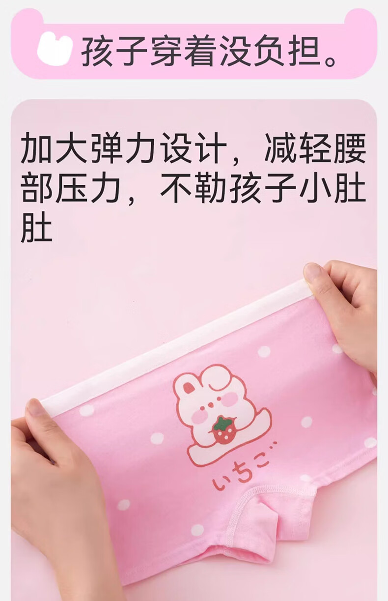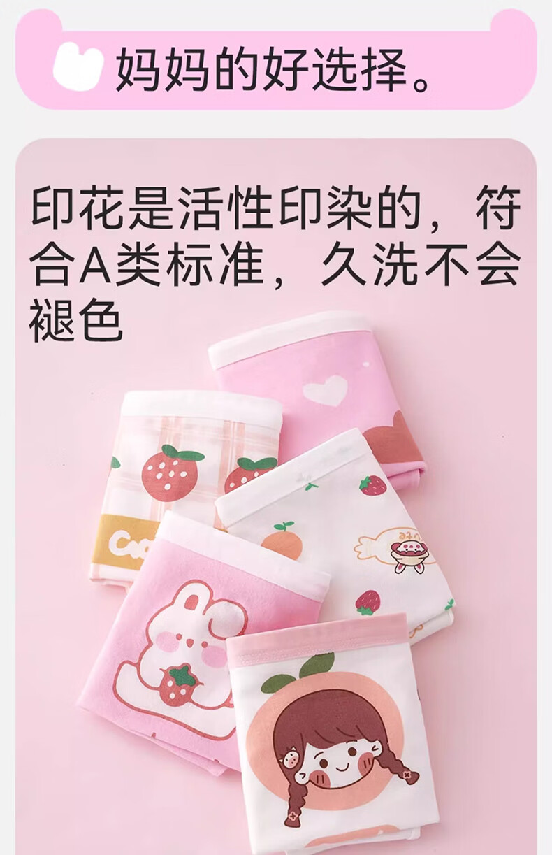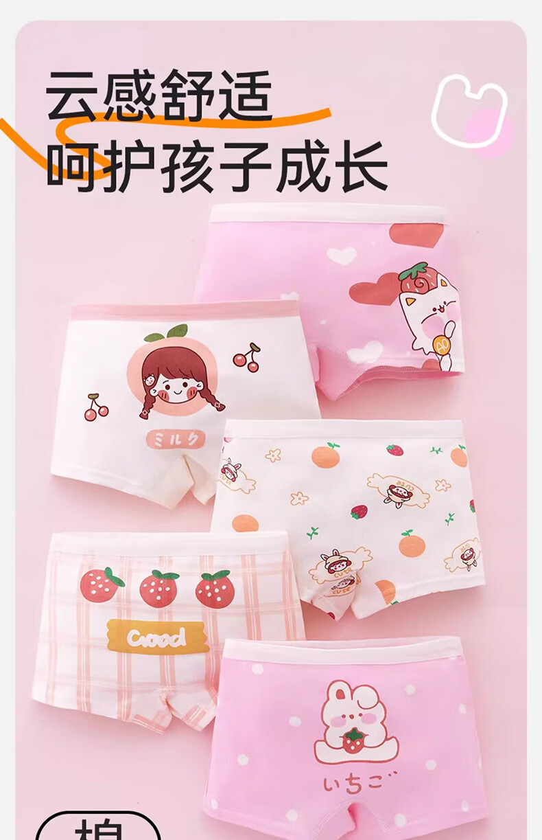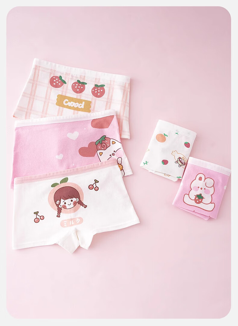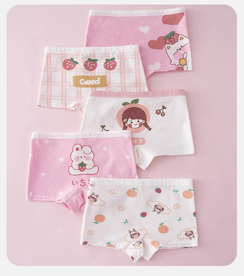 Mianqi Bear children's underwear for girls, cotton, baby girl, little girl, square-angle cotton, non-butt-clamping, 5-pack-A051-L