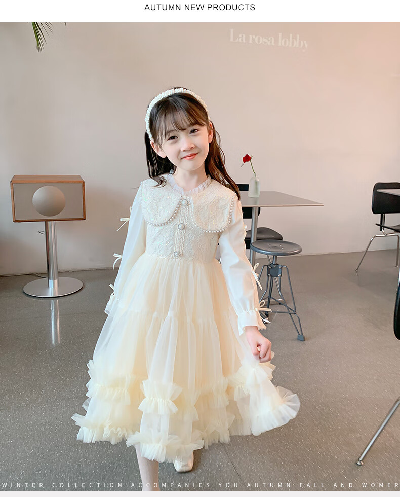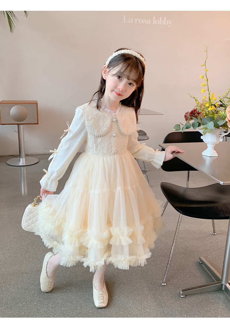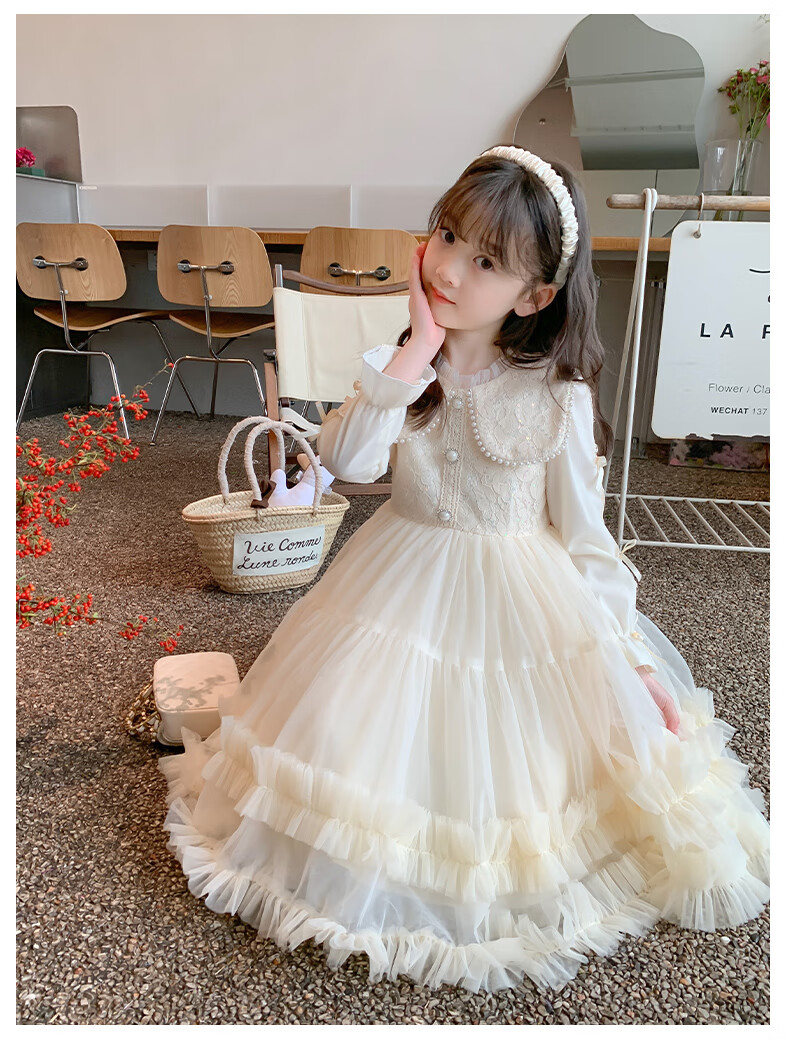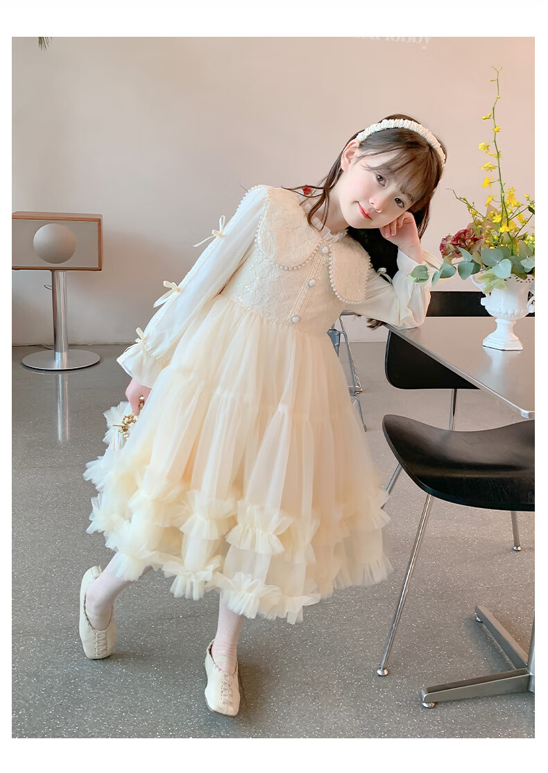 Piggy Banner (PEPCO) Children's Princess Dress Autumn and Winter Girls Fashionable Birthday Winter Dress Girls Dress Autumn and Winter Champagne 130