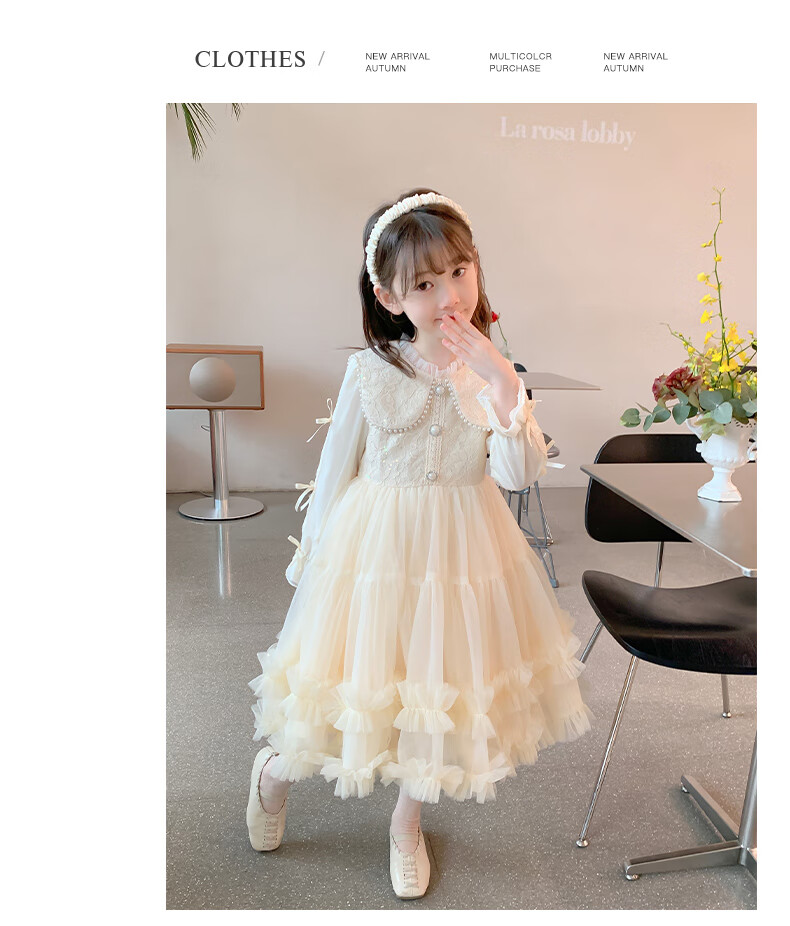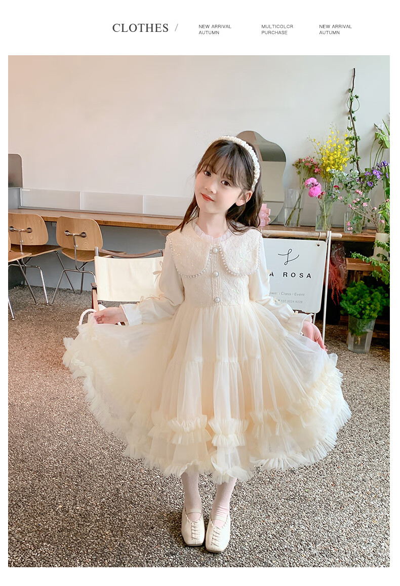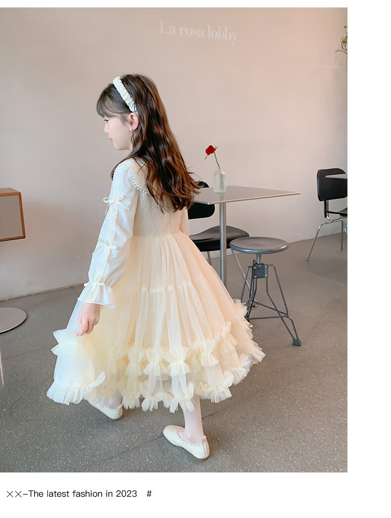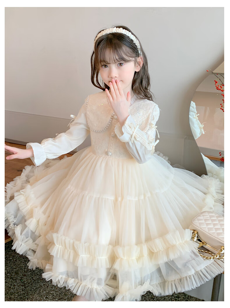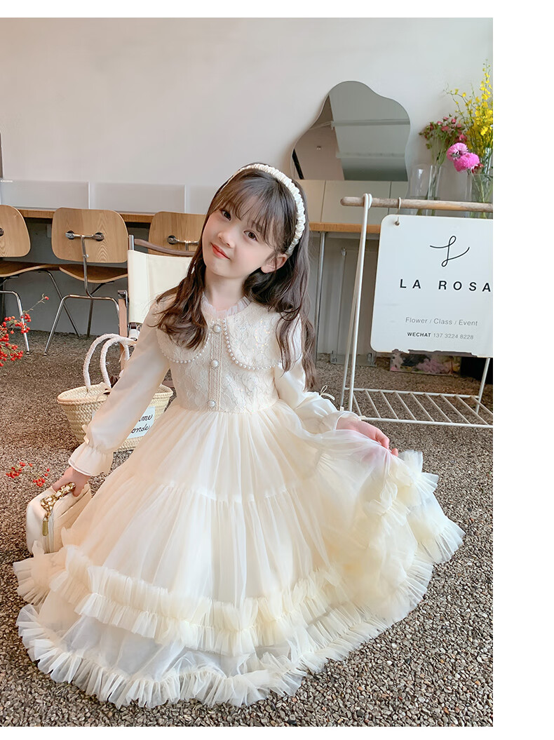 Piggy Banner (PEPCO) Children's Princess Dress Autumn and Winter Girls Fashionable Birthday Winter Dress Girls Dress Autumn and Winter Champagne 130