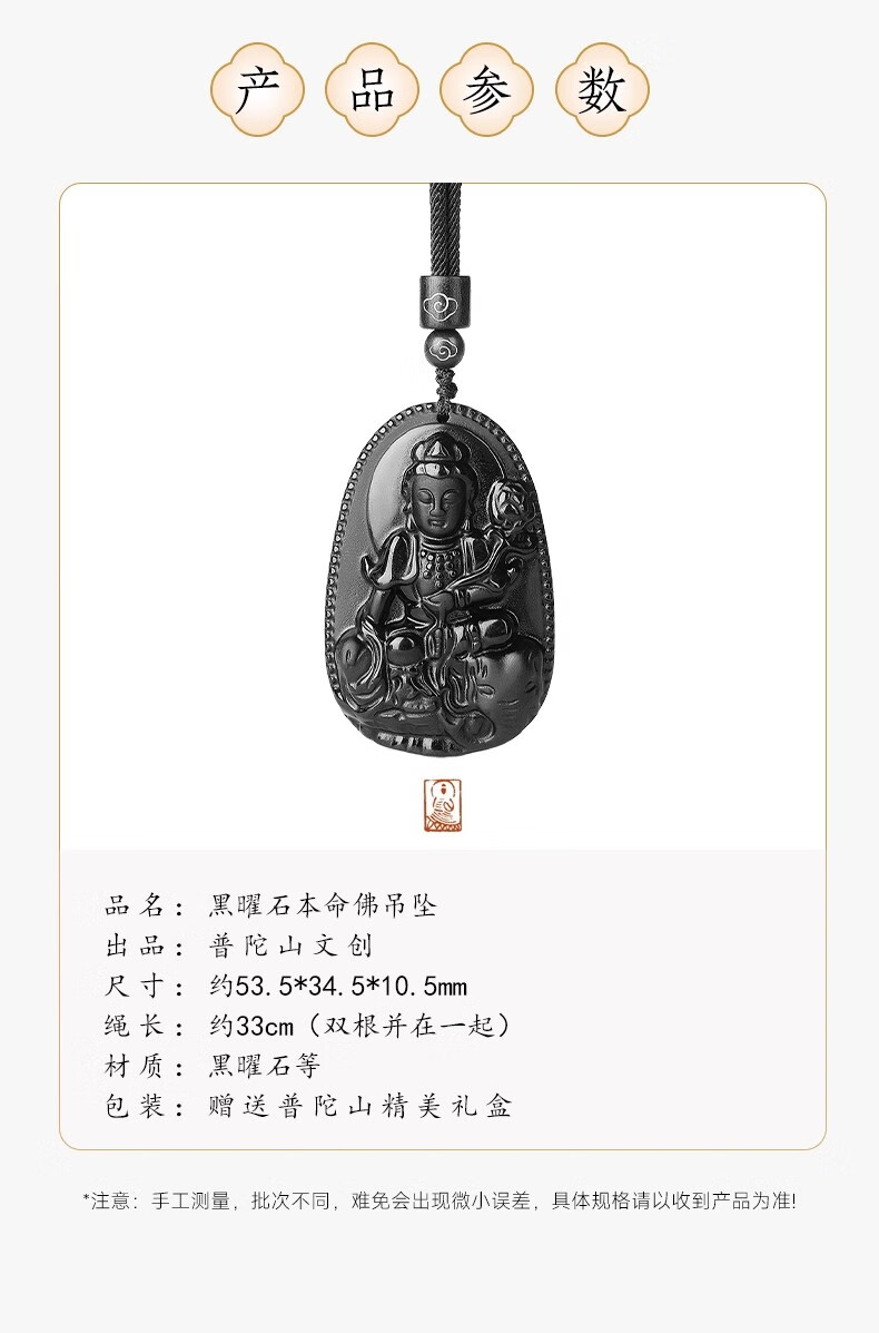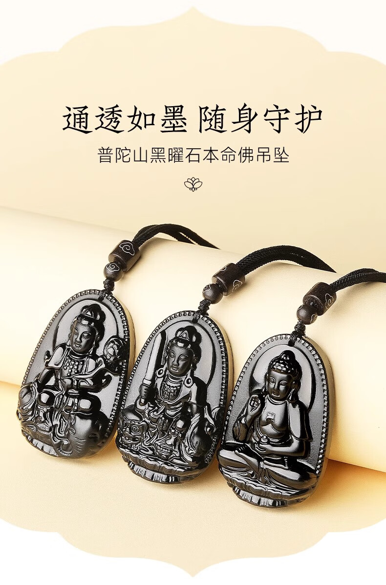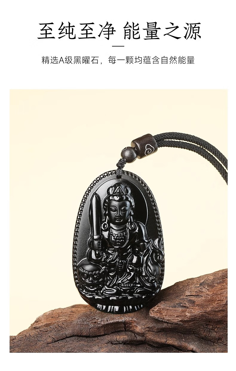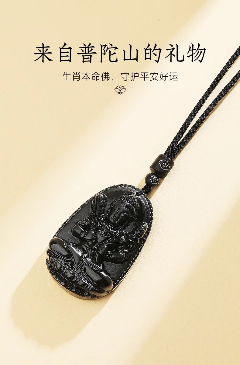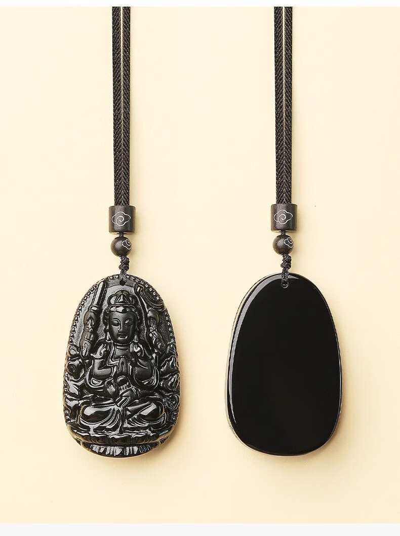 Putuo Mountain Obsidian Pendant Wu Shi Brand Pendant Native Buddha Amulet Men's Necklace Birthday Gift for Men