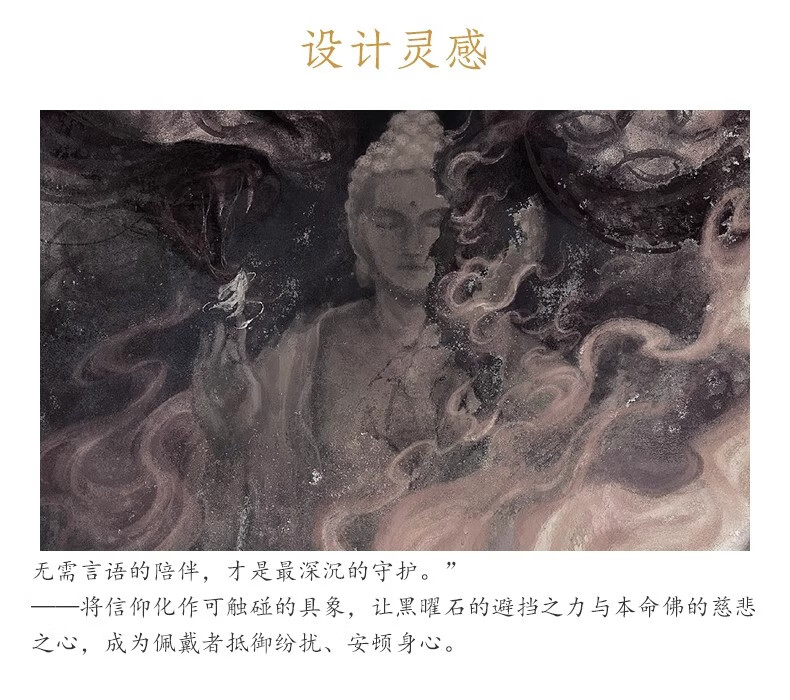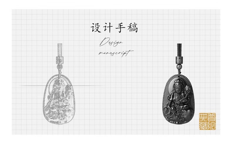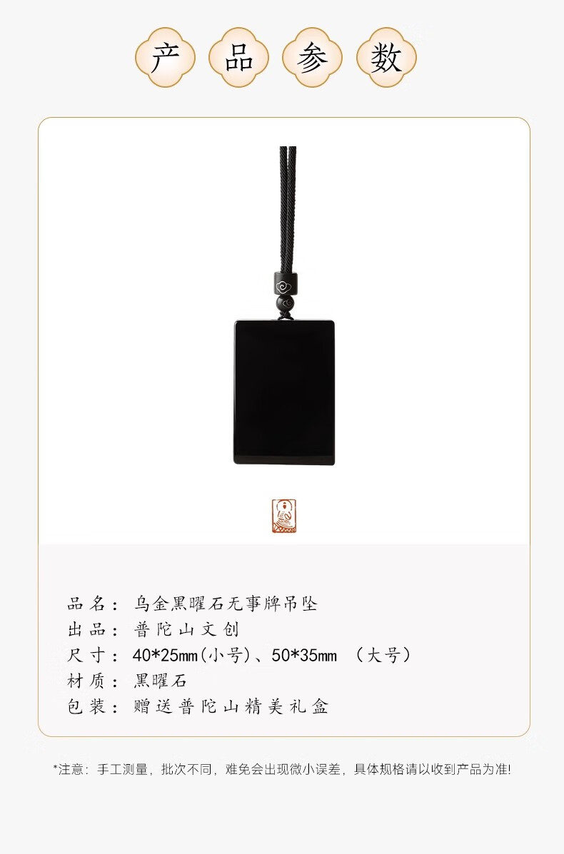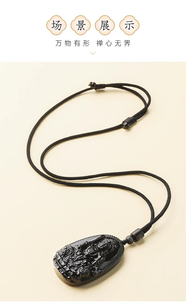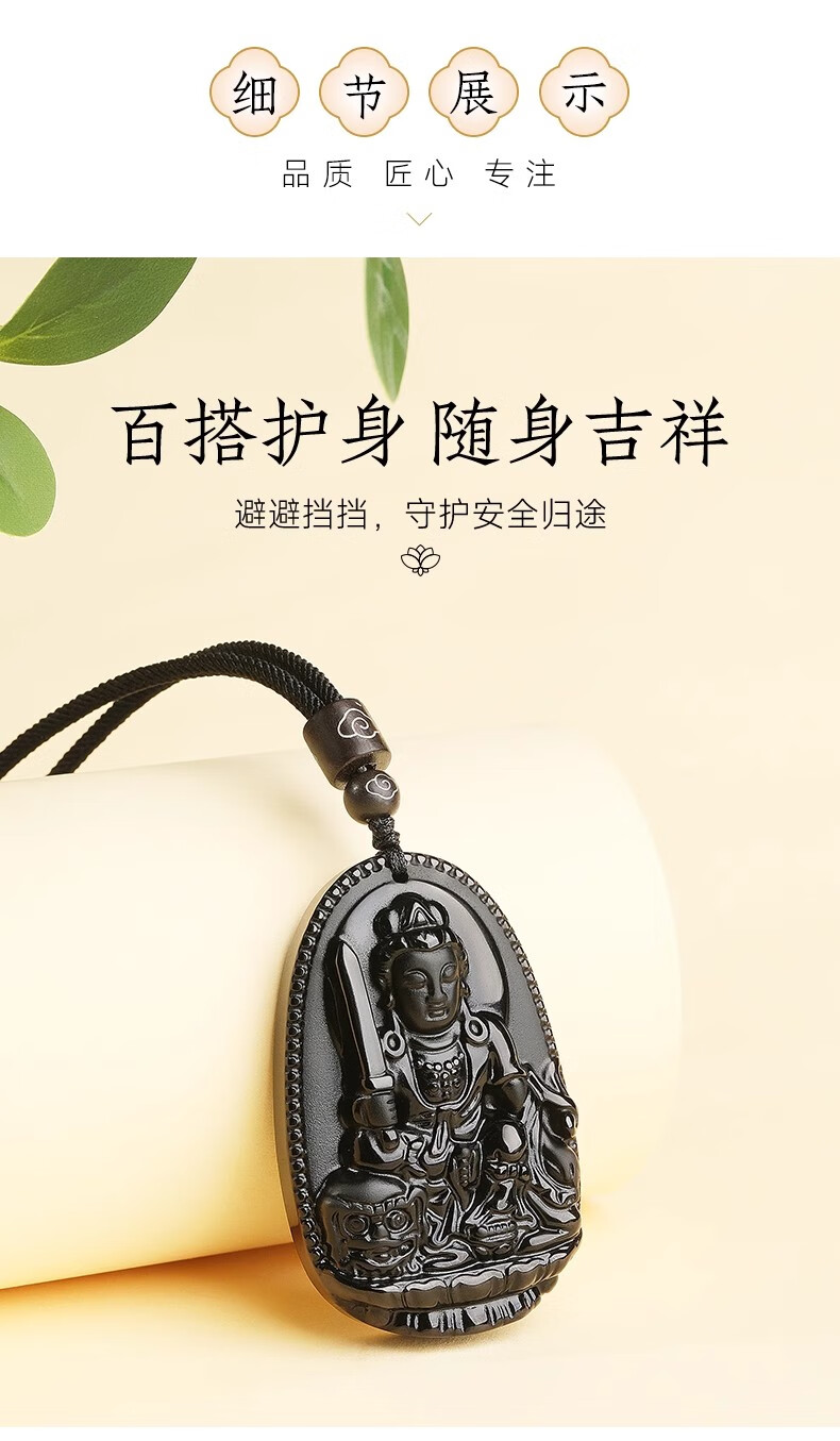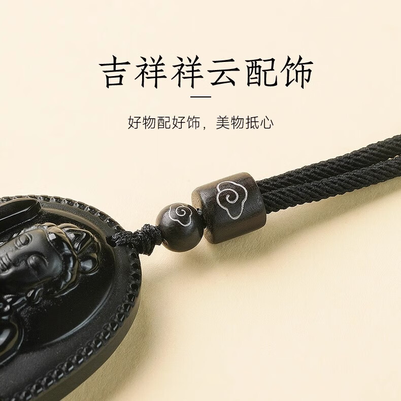 Putuo Mountain Obsidian Pendant Wu Shi Brand Pendant Native Buddha Amulet Men's Necklace Birthday Gift for Men